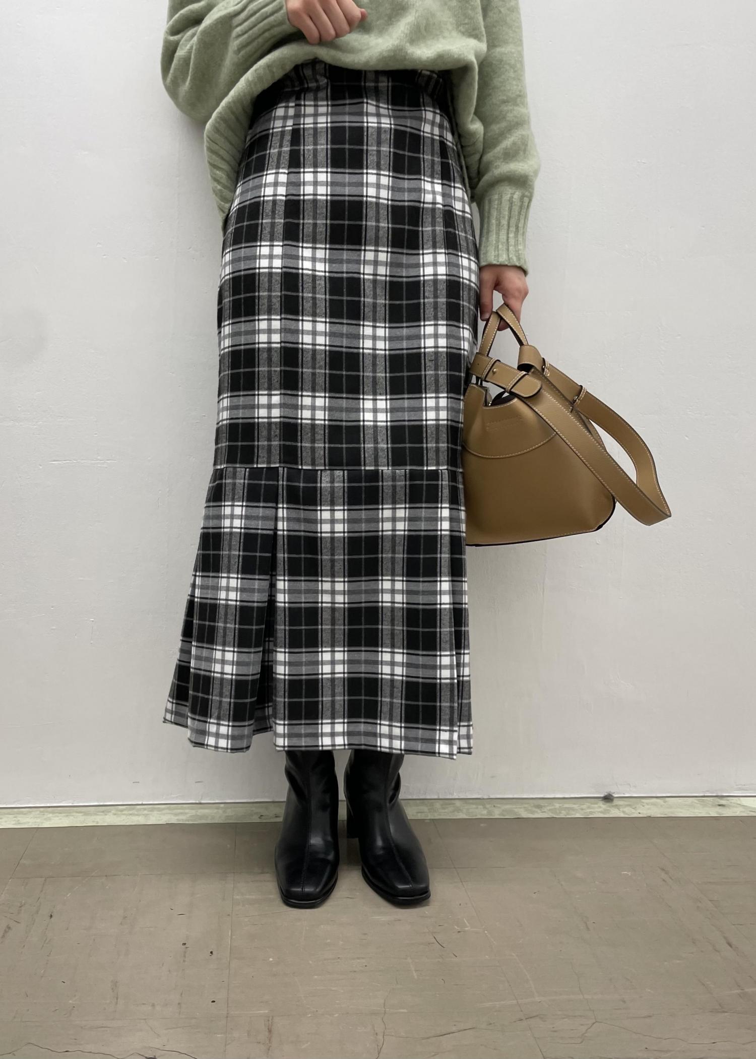 フェミニンなマーメイドシルエットスカートを合わせて