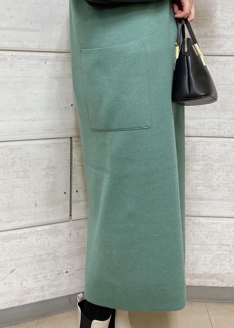 アクセントのあるグリーンがメインのコーディネートです。
