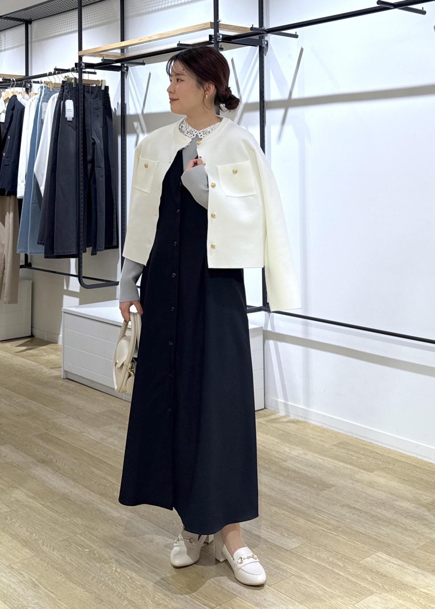 ちらっと見えるティアードのスカートで大人のさりげないフェミニンさを演出しました。