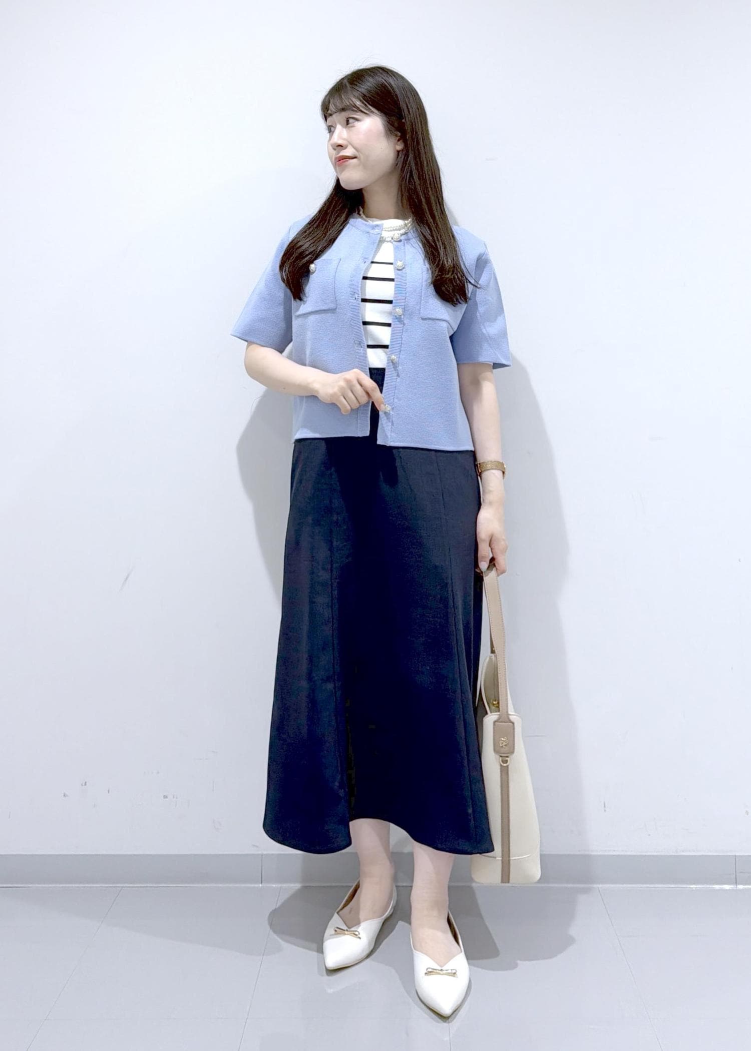 結婚式やセレモニーに ぴったりなドレスコーデです。 ライトベージュのコートを羽織って 春らしく軽やかな印象に◎