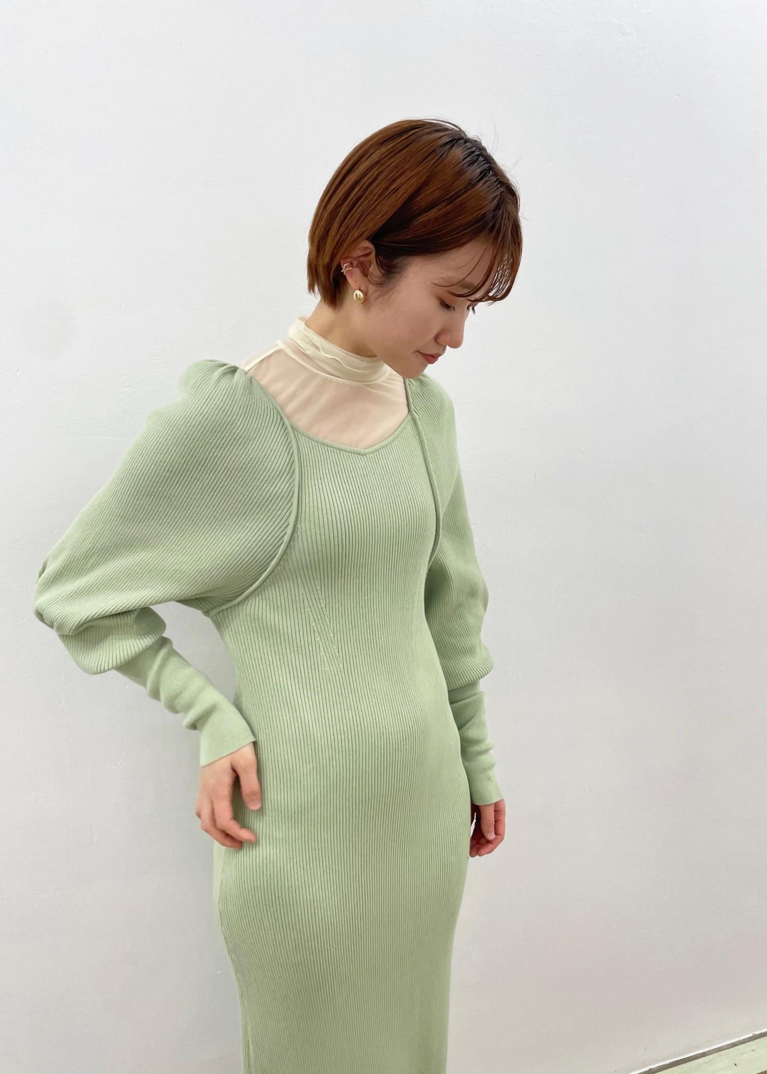 トレンドのスクエアネックニットワンピを使った