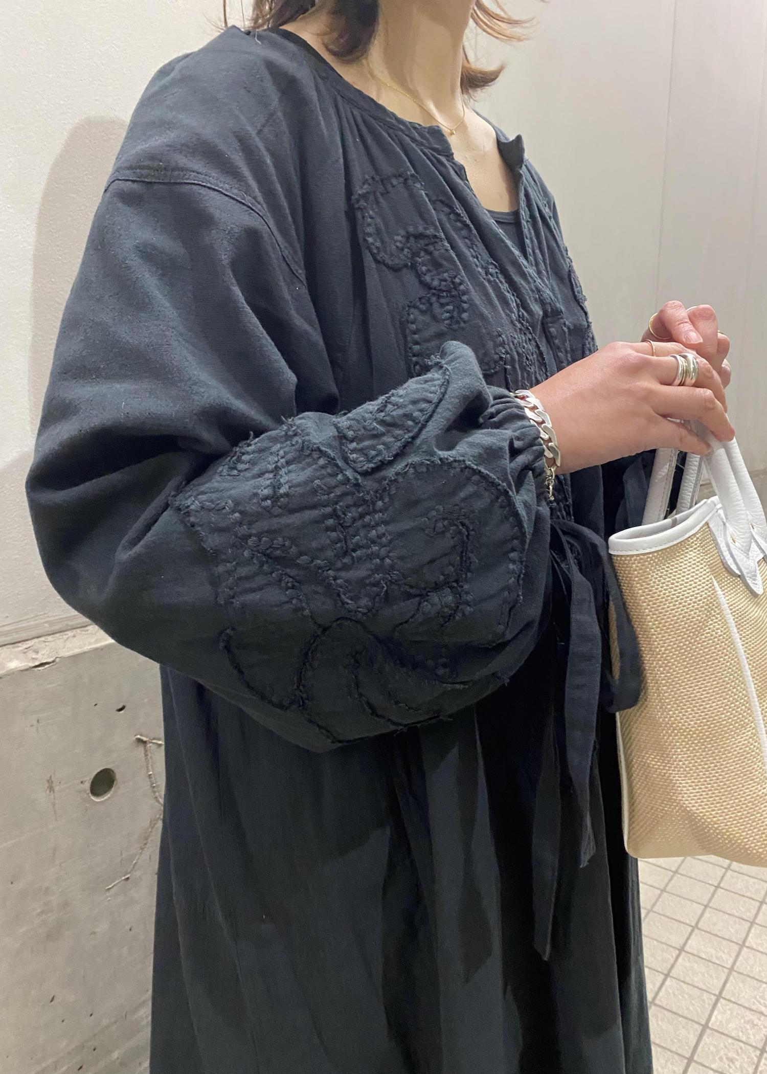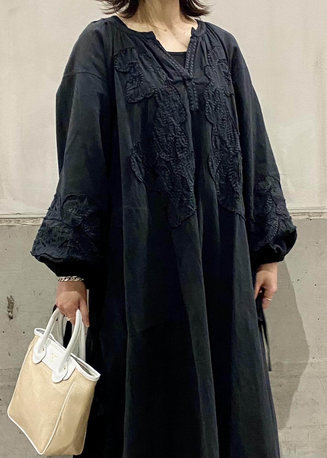 胸元と袖の刺繍や、袖口のリボンのデザインが素敵なSara mallika(サラ マリカ)のワンピースです。