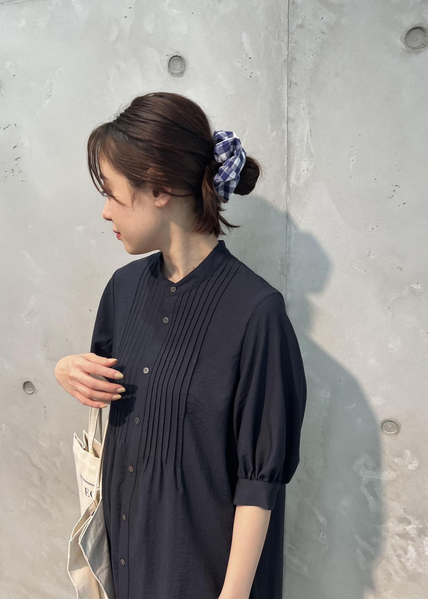 シンプルなワンピに、ボンヌママンコラボのシュシュでアクセントを加えました!