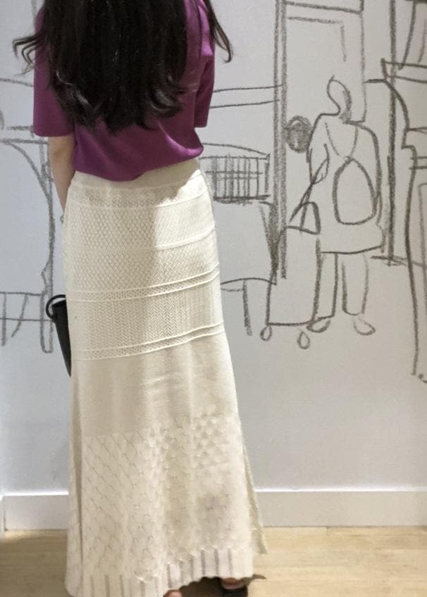 ビビットピンクにホワイトを合わせた華やか可愛いコーデ リブニットには嬉しい接触冷感とUV付きです♪ 透かし編みスカートは綺麗なシルエットを出してくれます!