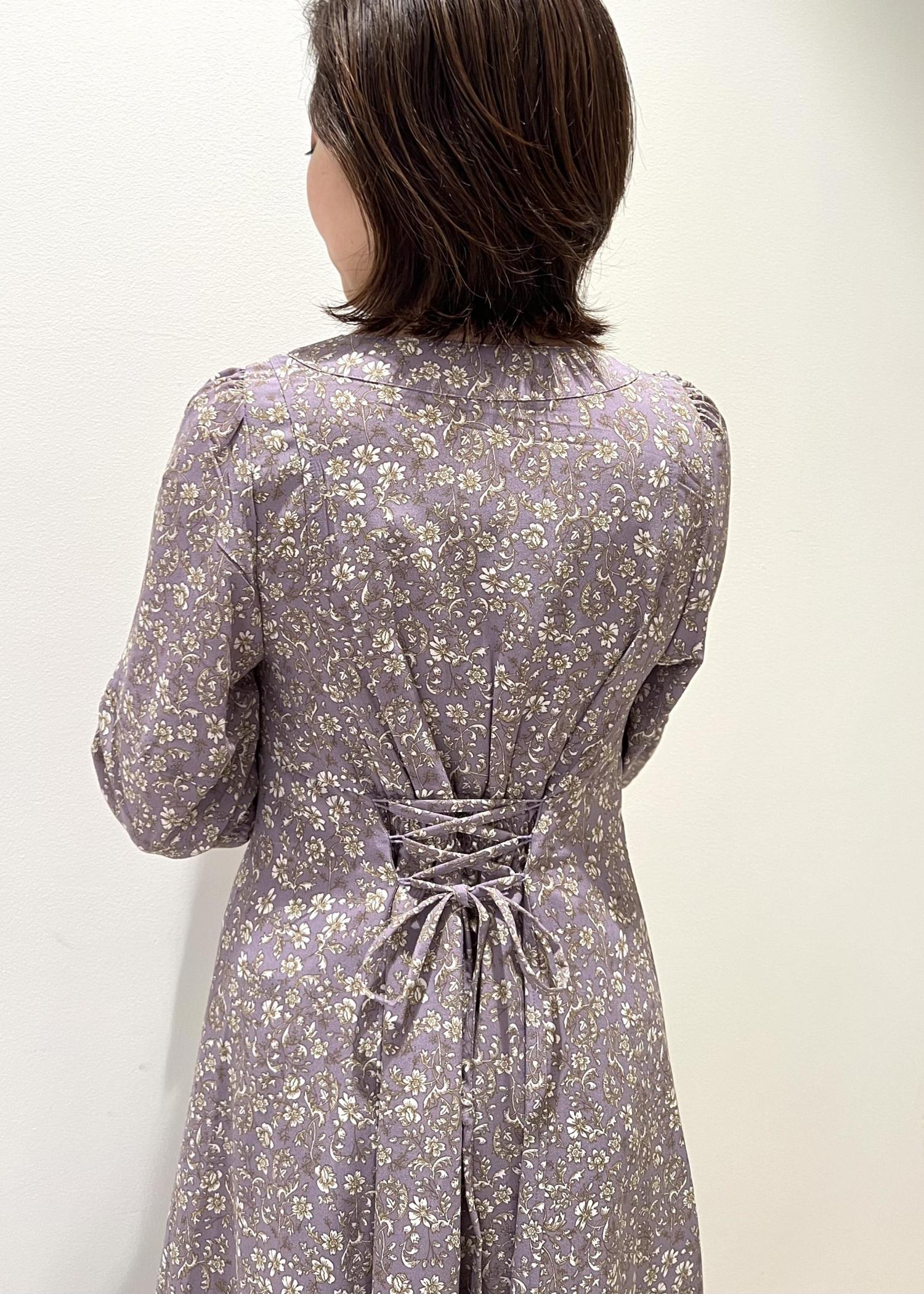 きちんと見えて楽ちんに過ごせるワンピースです。ふんわりしたカラーがナチュラルな雰囲気を出してくれます。ウエスト後ろ部分がレースアップになっているので、バックスタイルも可愛いです。5部袖なので腕を隠したい方にちょうどいいお袖丈です。