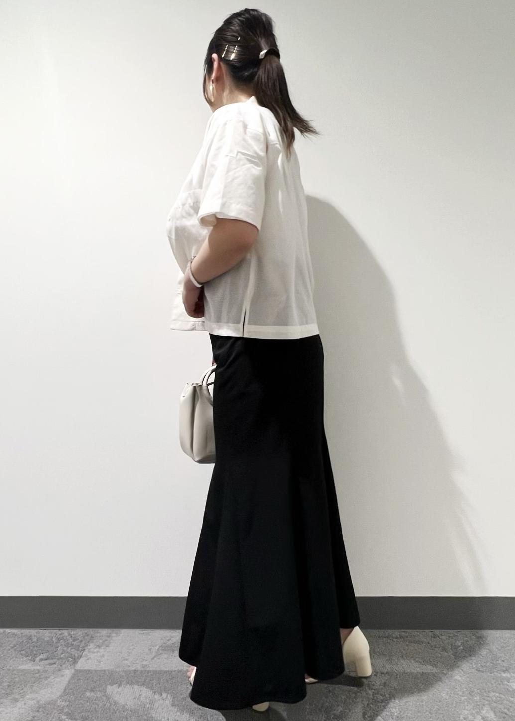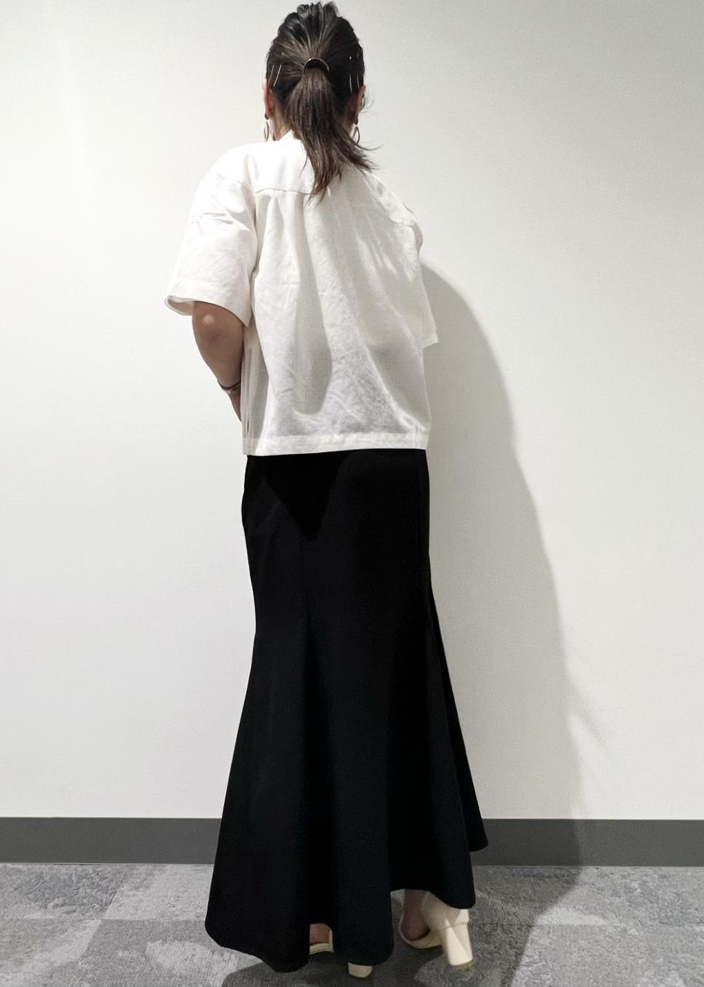 ウエストからももにかけてすっきりとし、裾はたっぷり広がるマーメイドシルエットのスカートです。