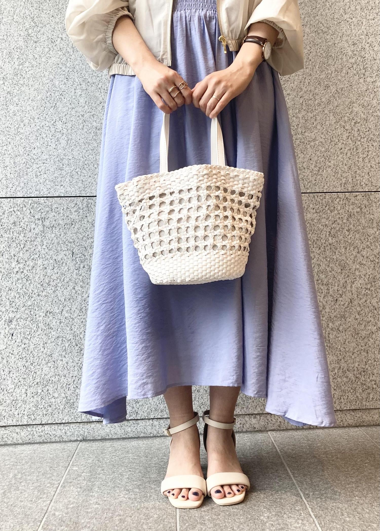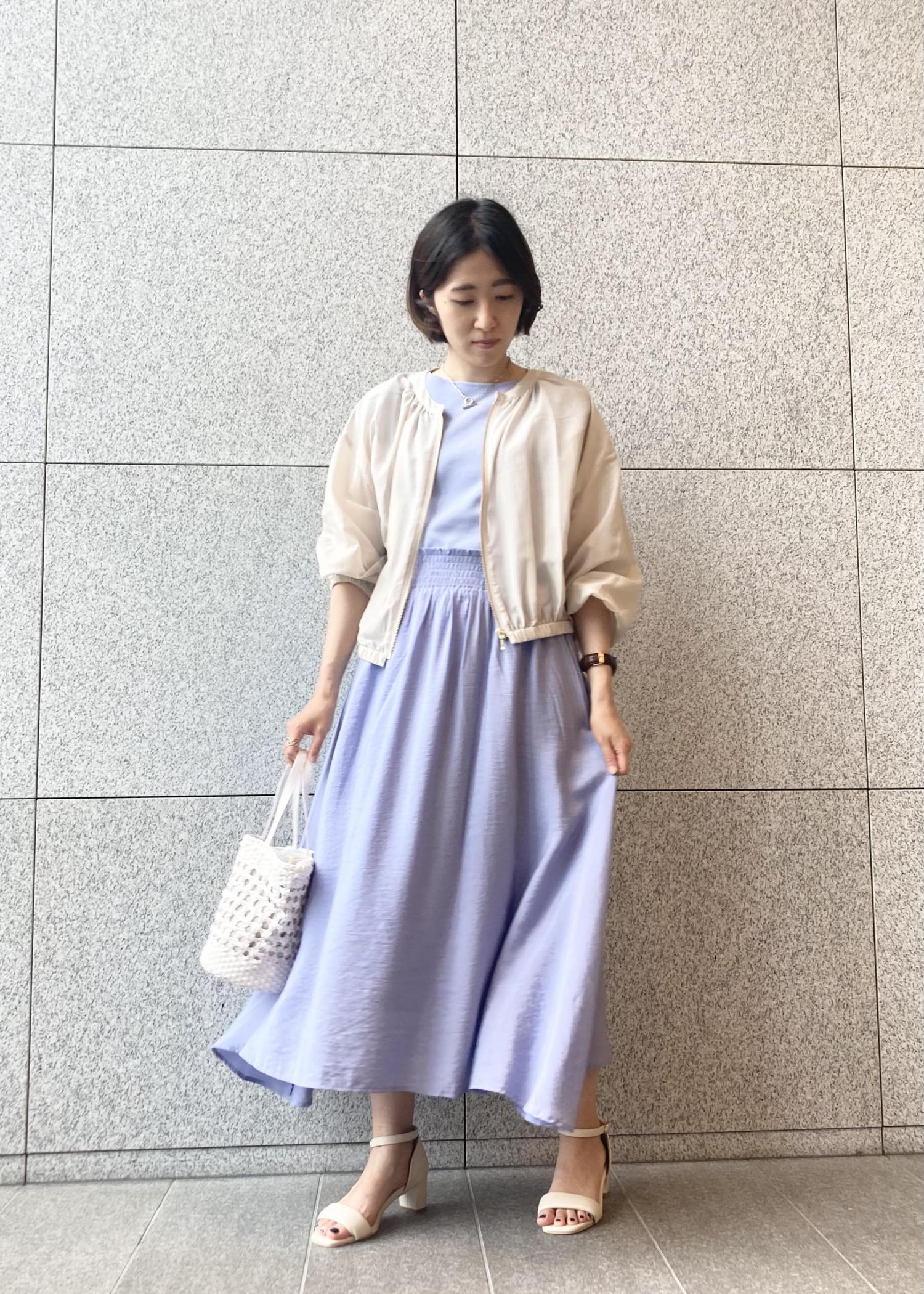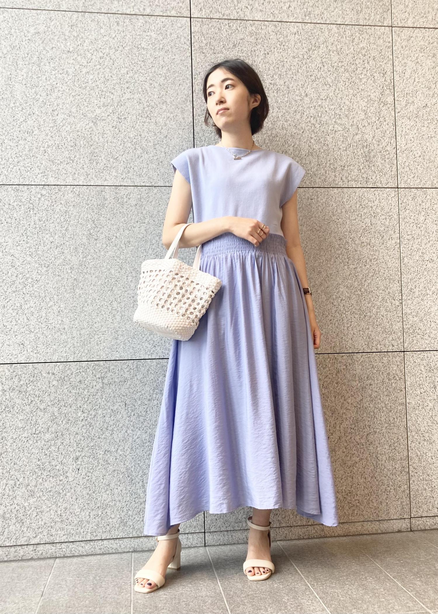 ひらりと揺れる素材感とカラーが涼しげなワンピースが主役になるコーディネートです。