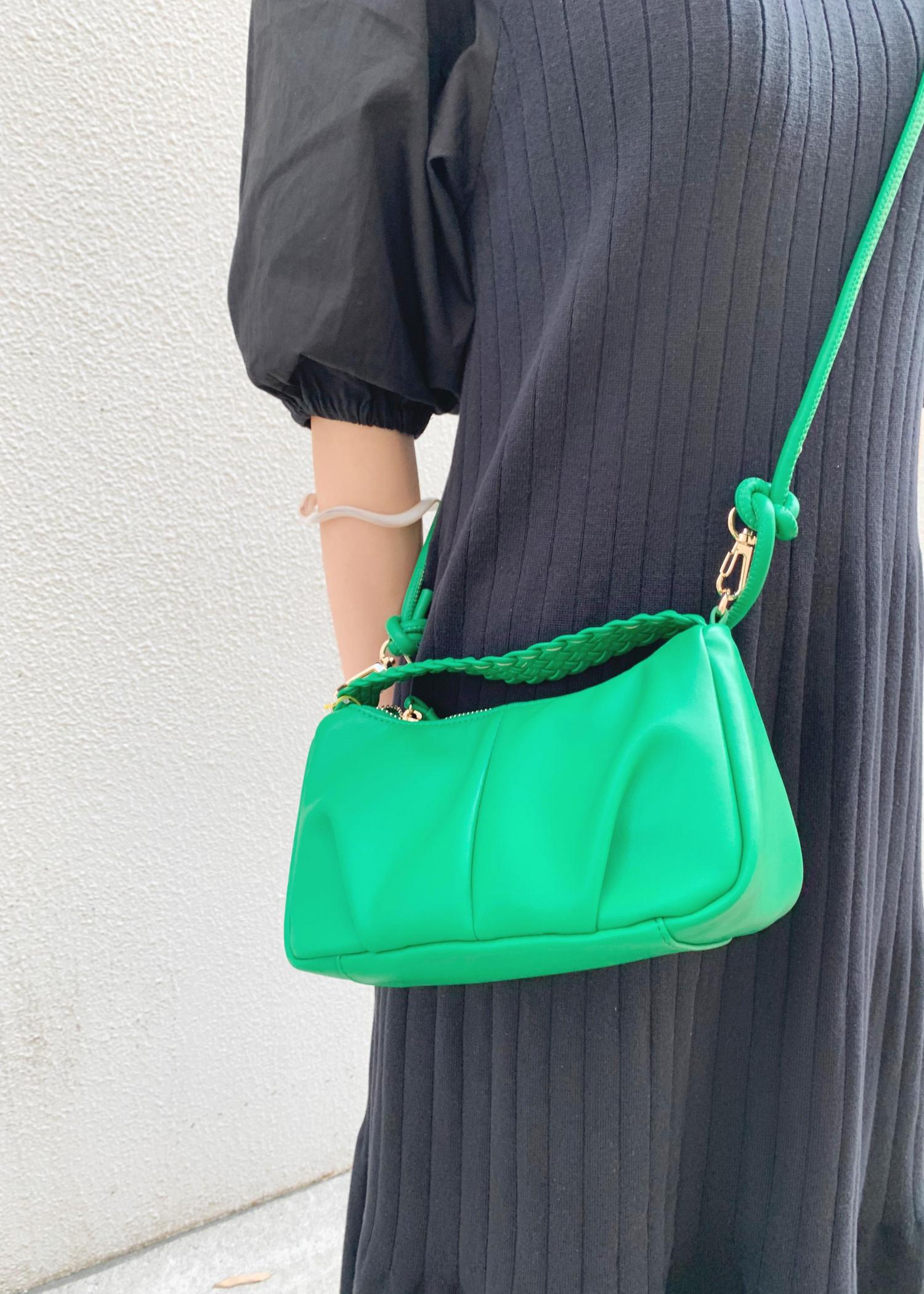 差し色でグリーンを選び、トレンド感のあるコーデに◎