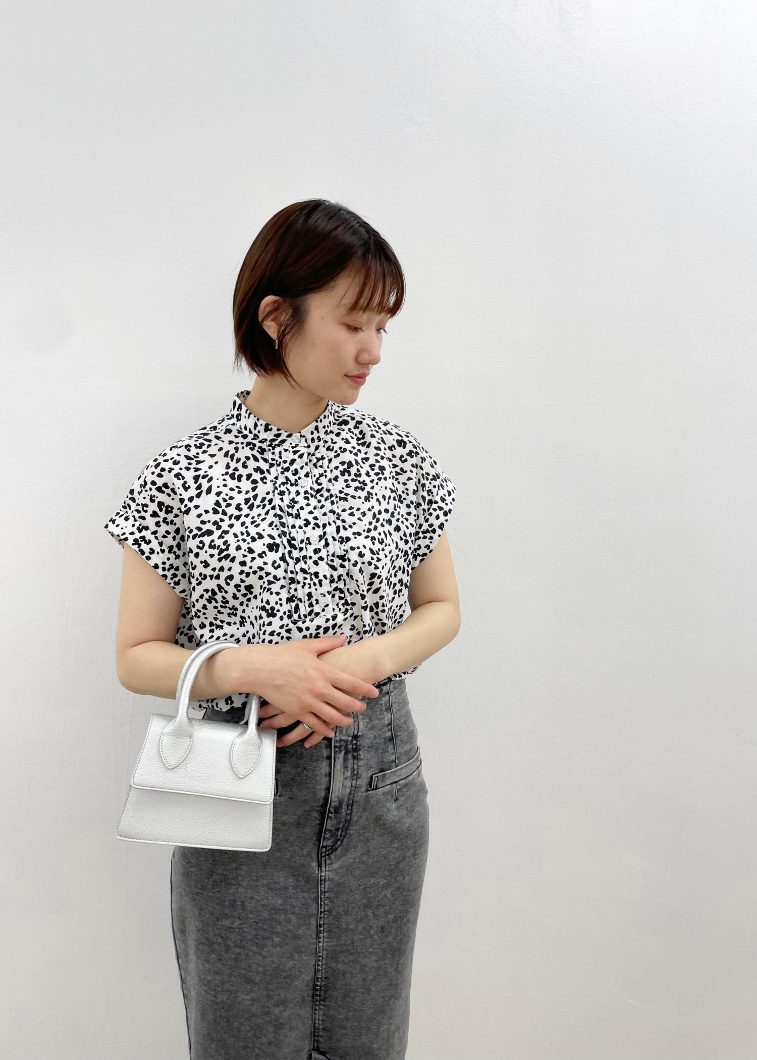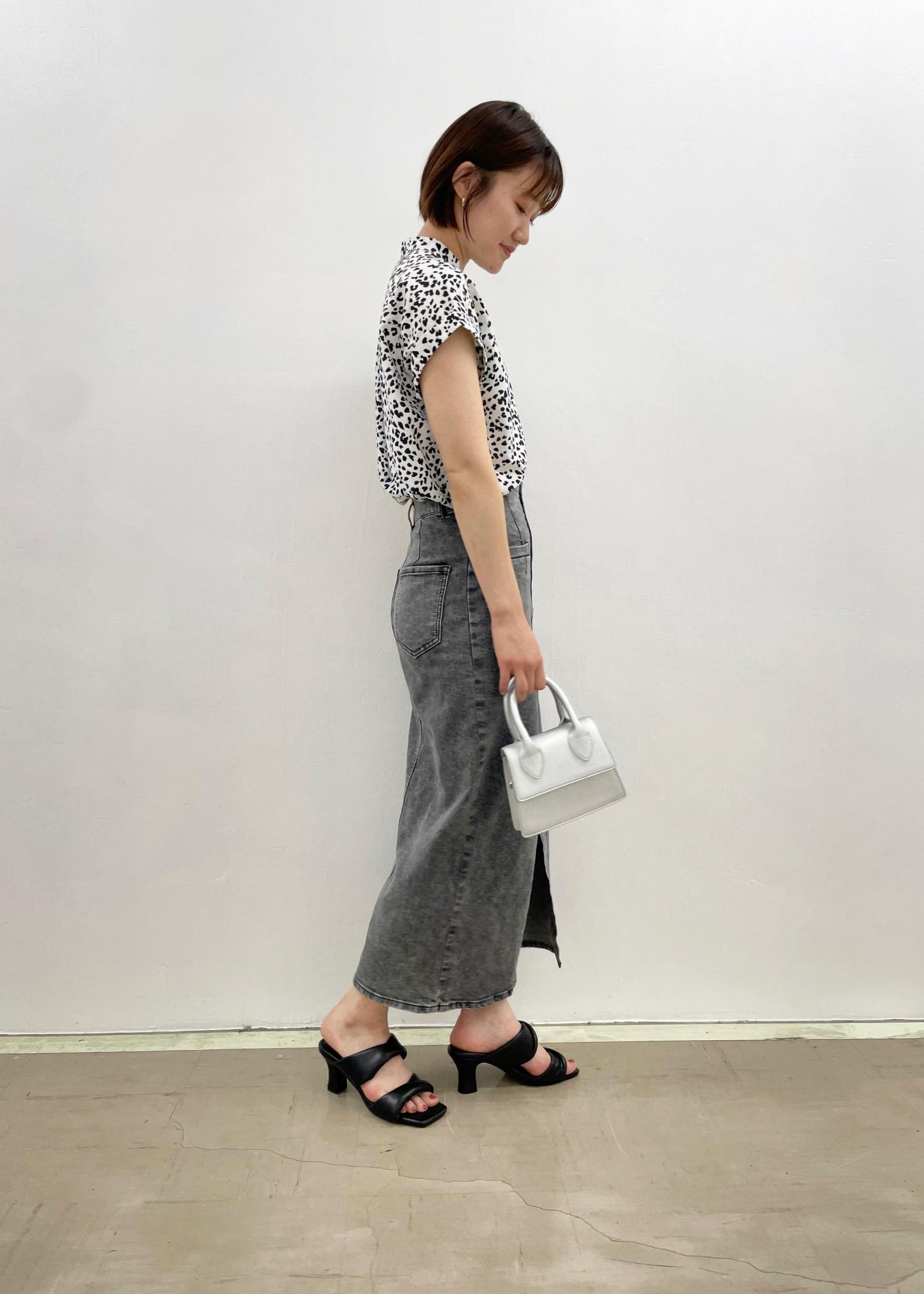 おでかけにもお仕事着にも使える 着回し力抜群ブラウスを使ったコーディネート♩ キレイめブラウスにはデニムスカートで 少しのカジュアルをプラス。 辛口な小物で締めてきちんと感を後押ししました。