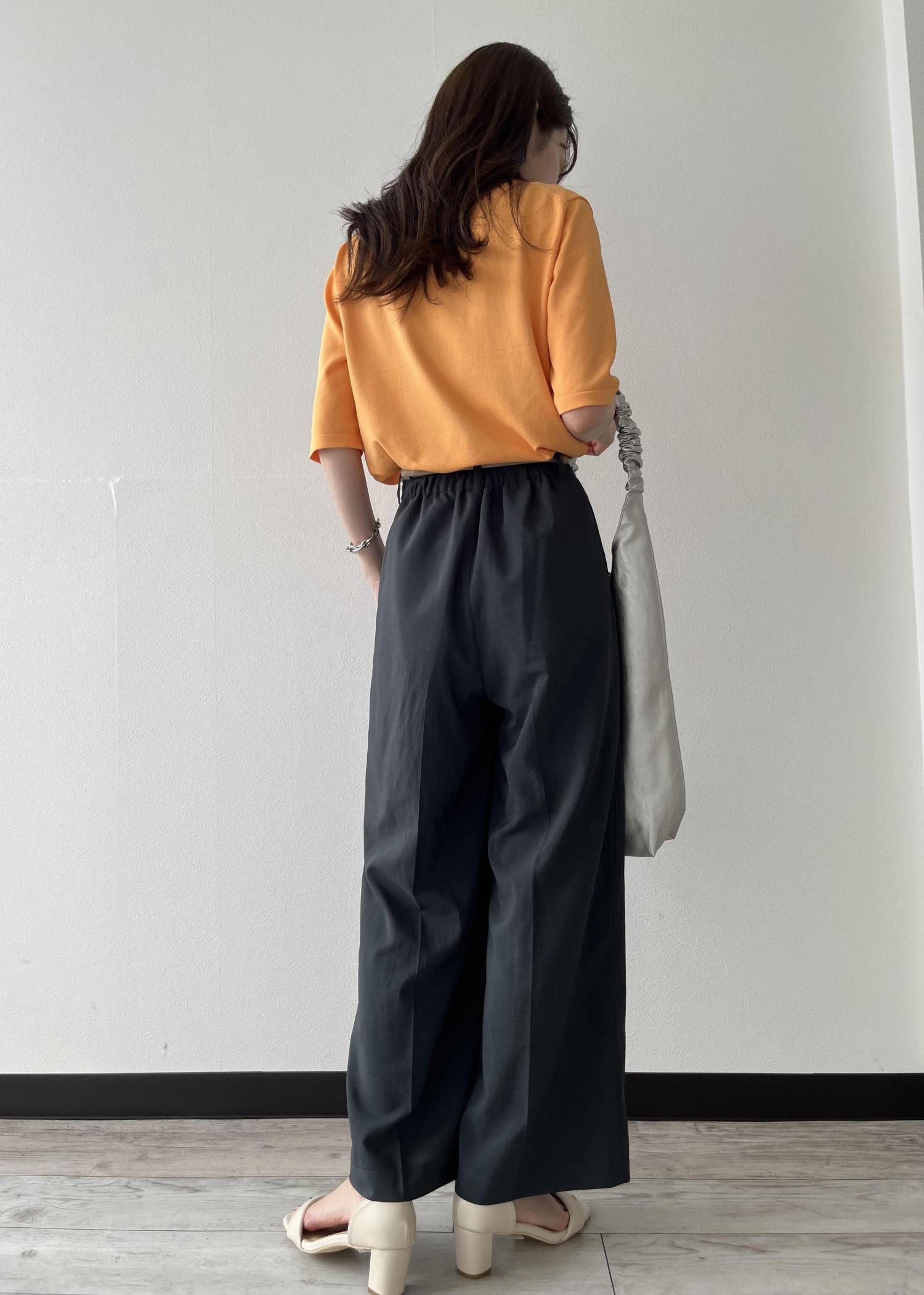 接触冷感のあるサマーニットです。オレンジの色味が一気にお洒落な印象になります。