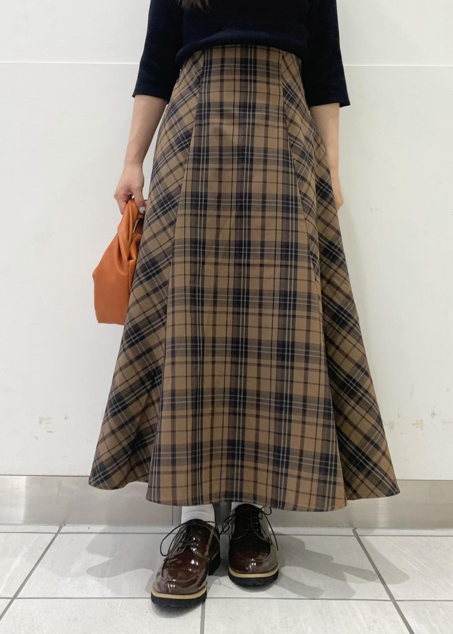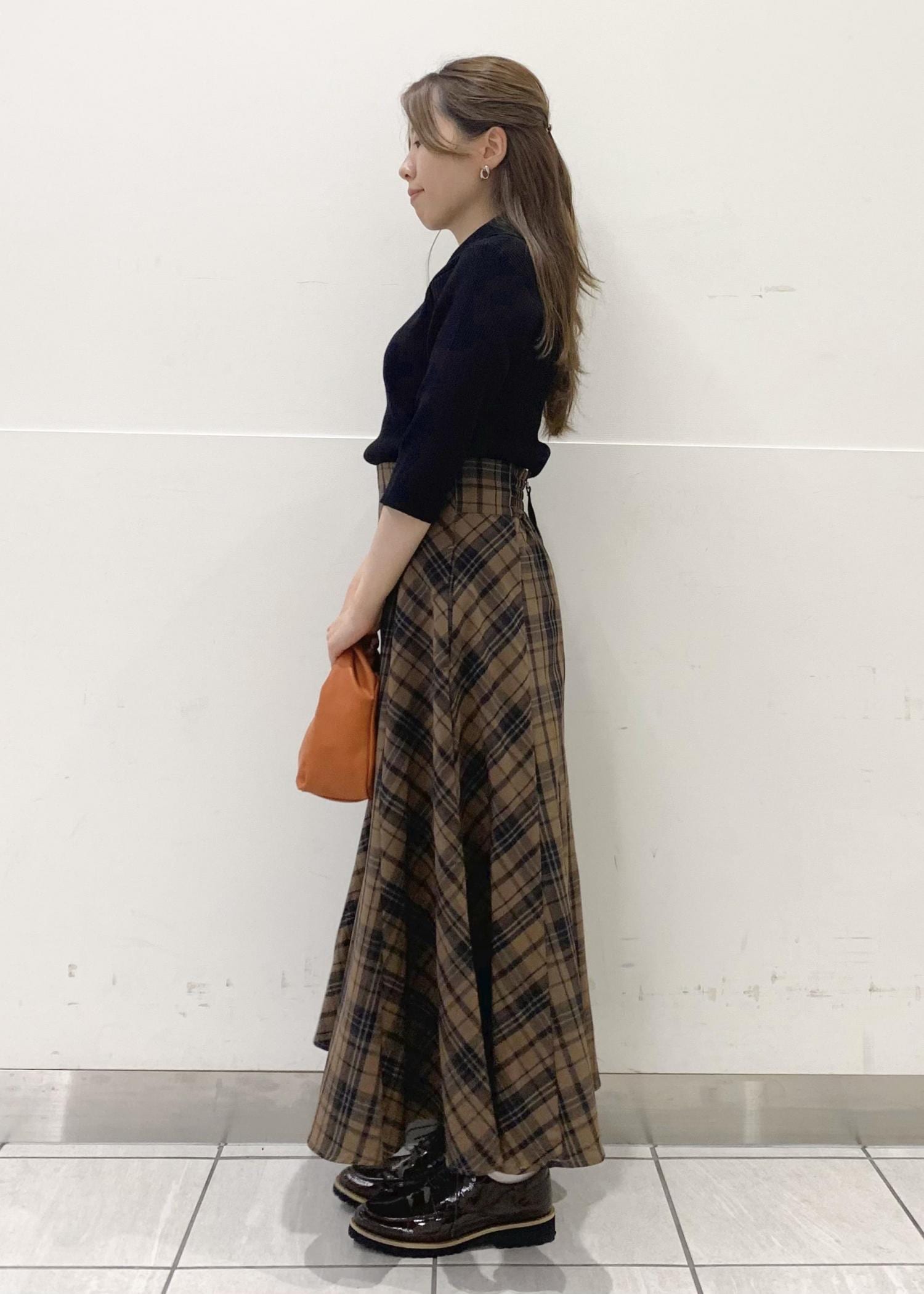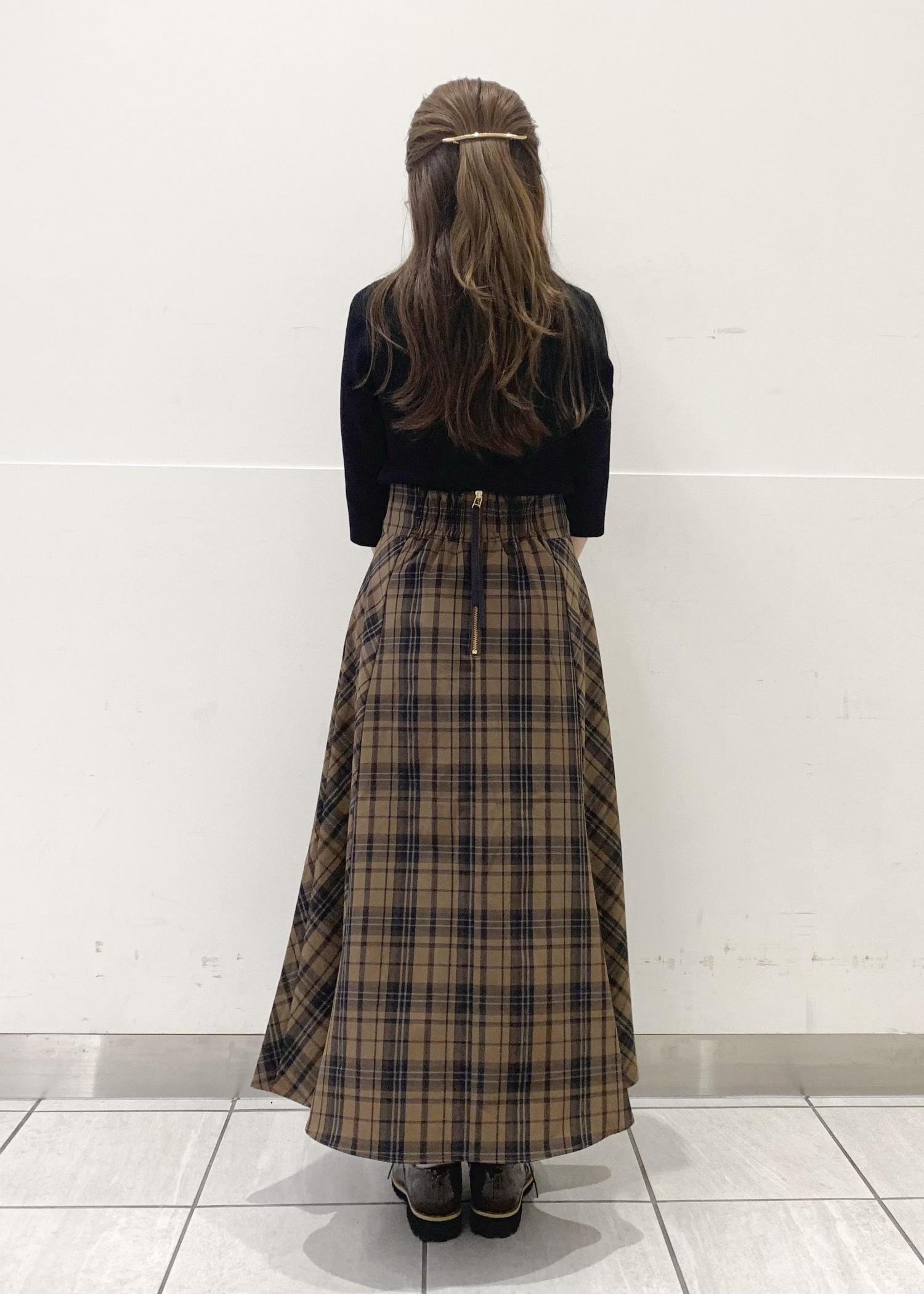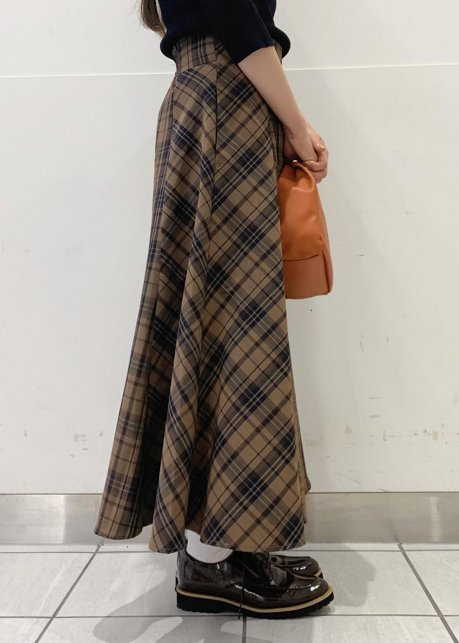 秋のチェックスカートコーデ