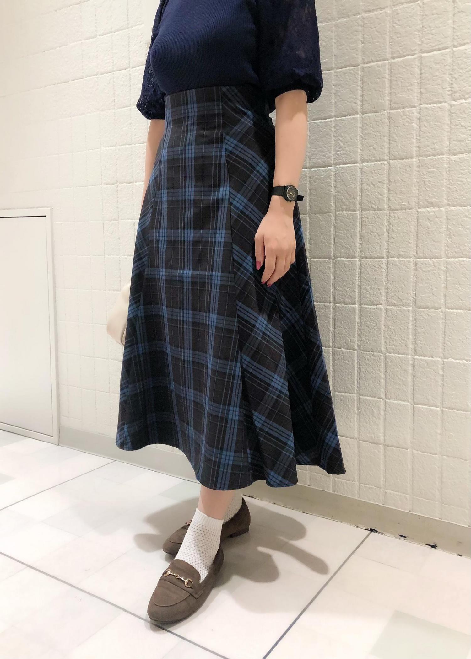 今回はWEB/店舗ともに人気なチェックセミマーメイドスカートをメインにコーディネートしました!