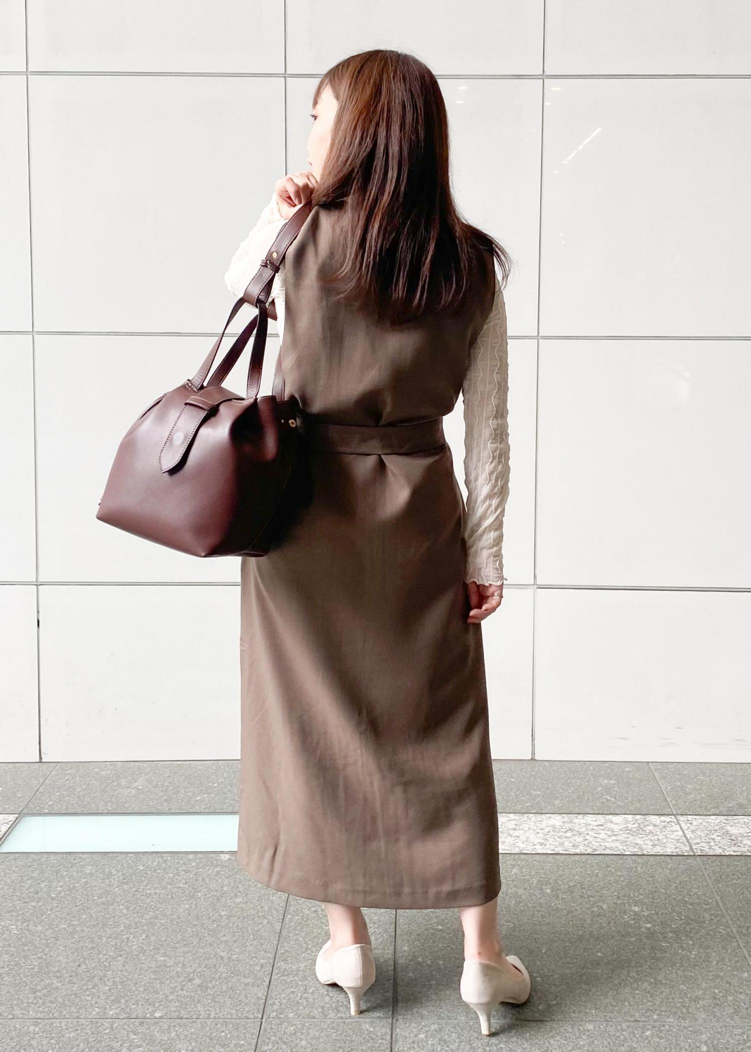 お勧めコーデ:ジレやジャケットを着用する時のインナーとしてお使い頂いたり、スウェット等のトップスを重ねて着用頂いてプラスαのコーデになり一枚あると嬉しいアイテムです。