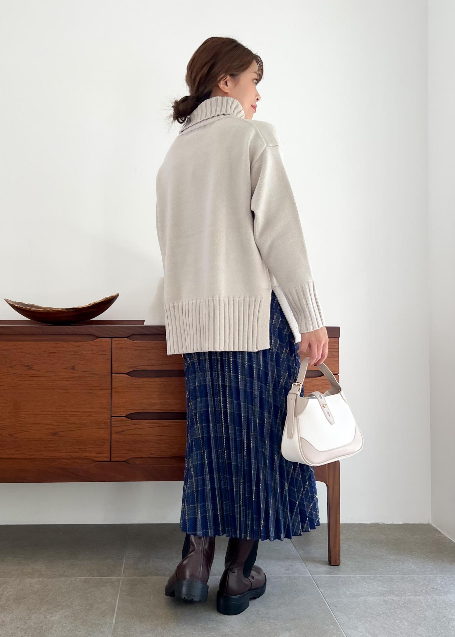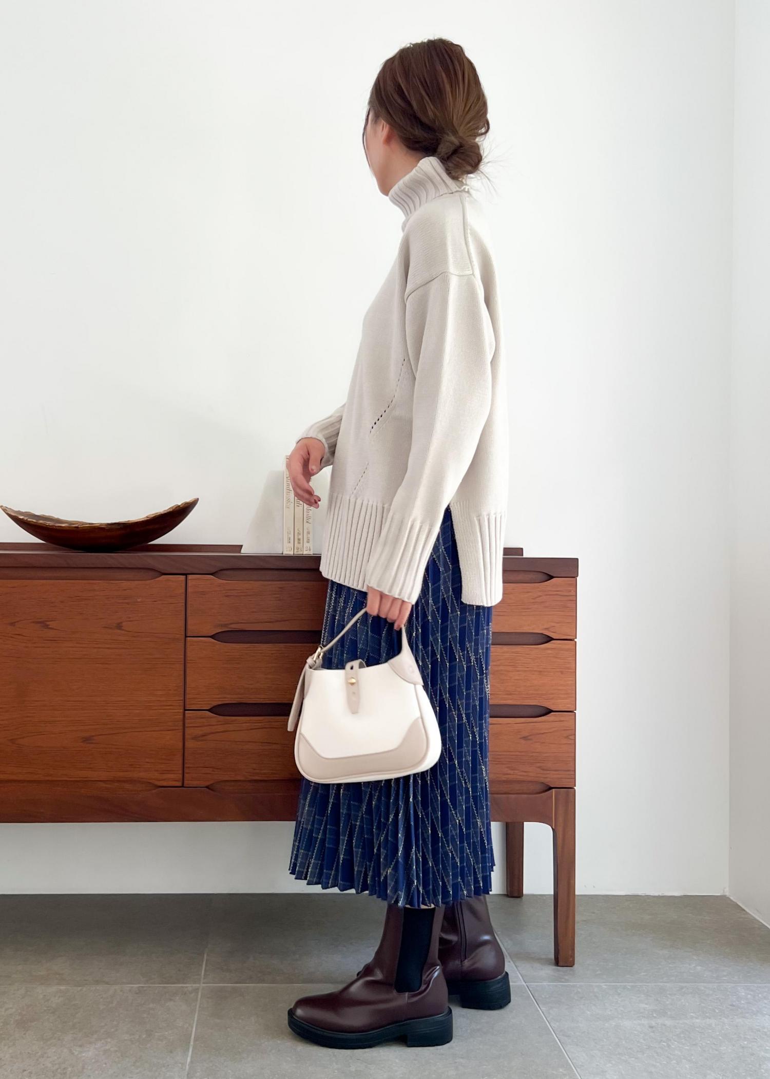 ブラウスとセットアップで着用も出来ますが、ニットと合わせて大人カジュアルな着こなしもお勧めです。