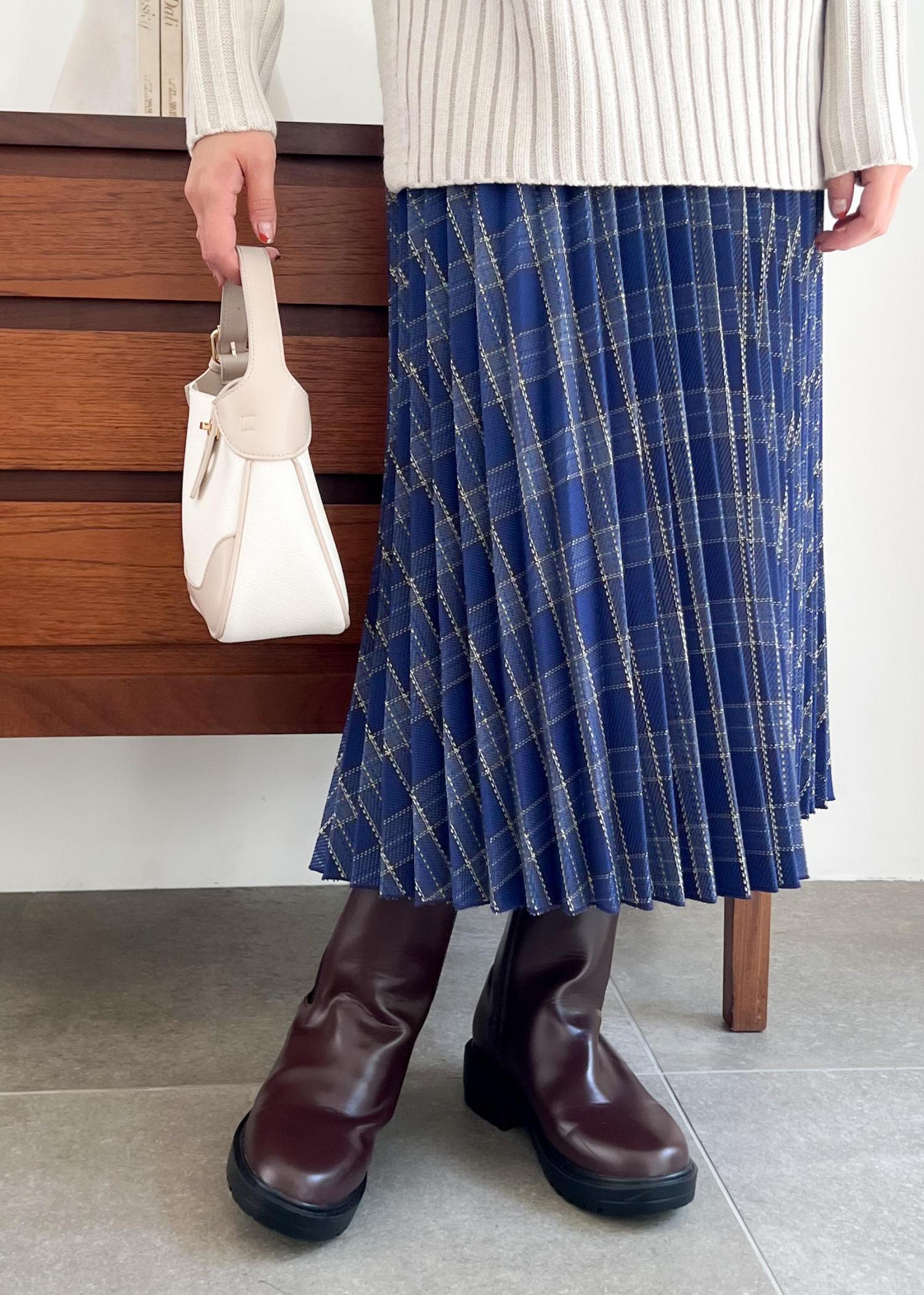 ニットに合わせた冬コーデにピッタリな、チェックスカートは午後の紅茶コラボデザイン。