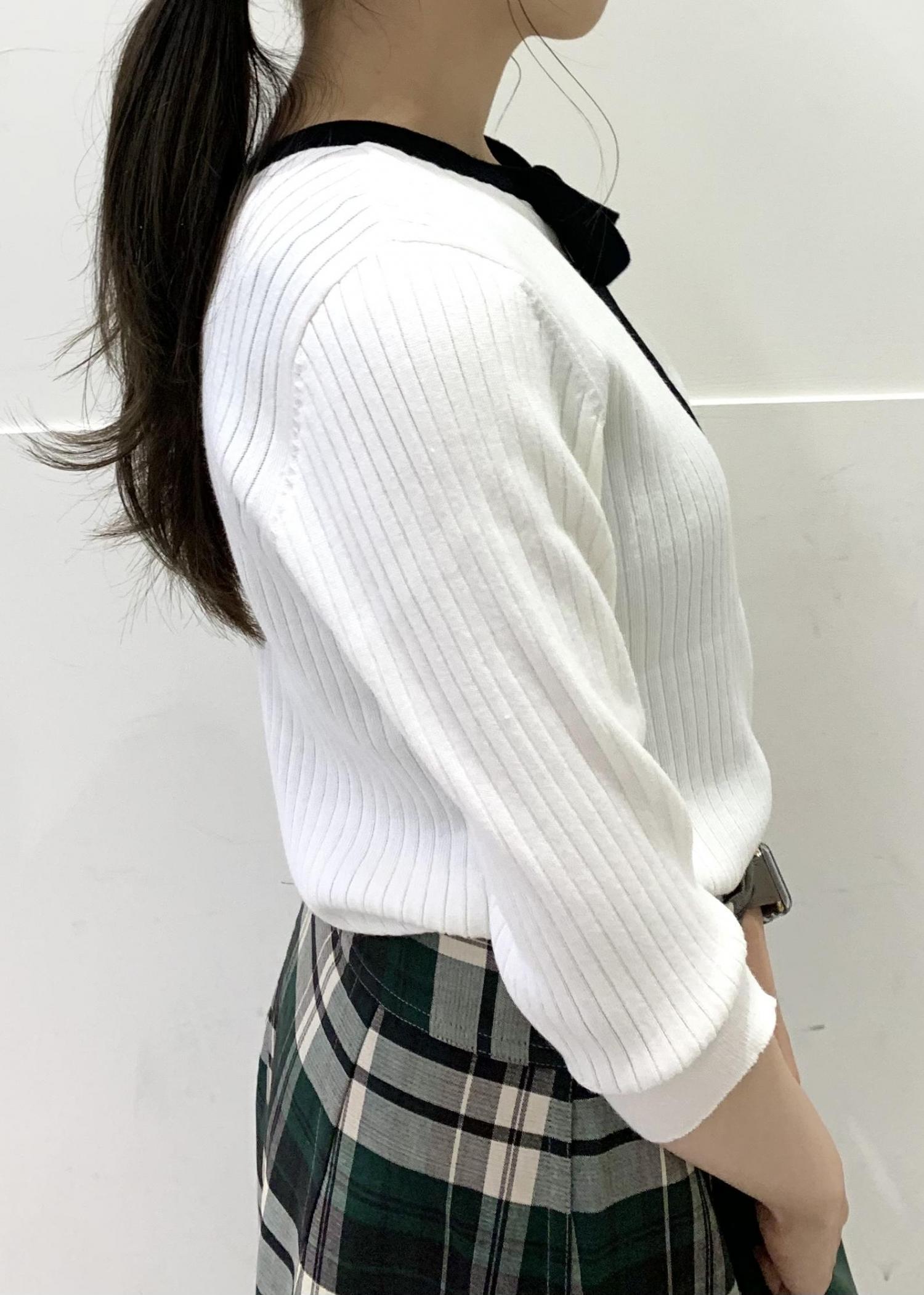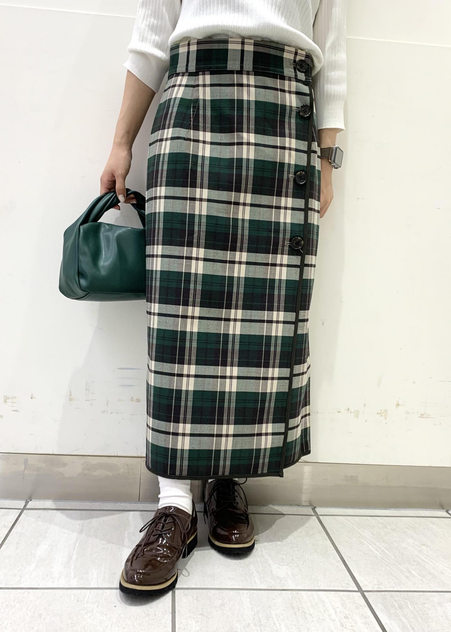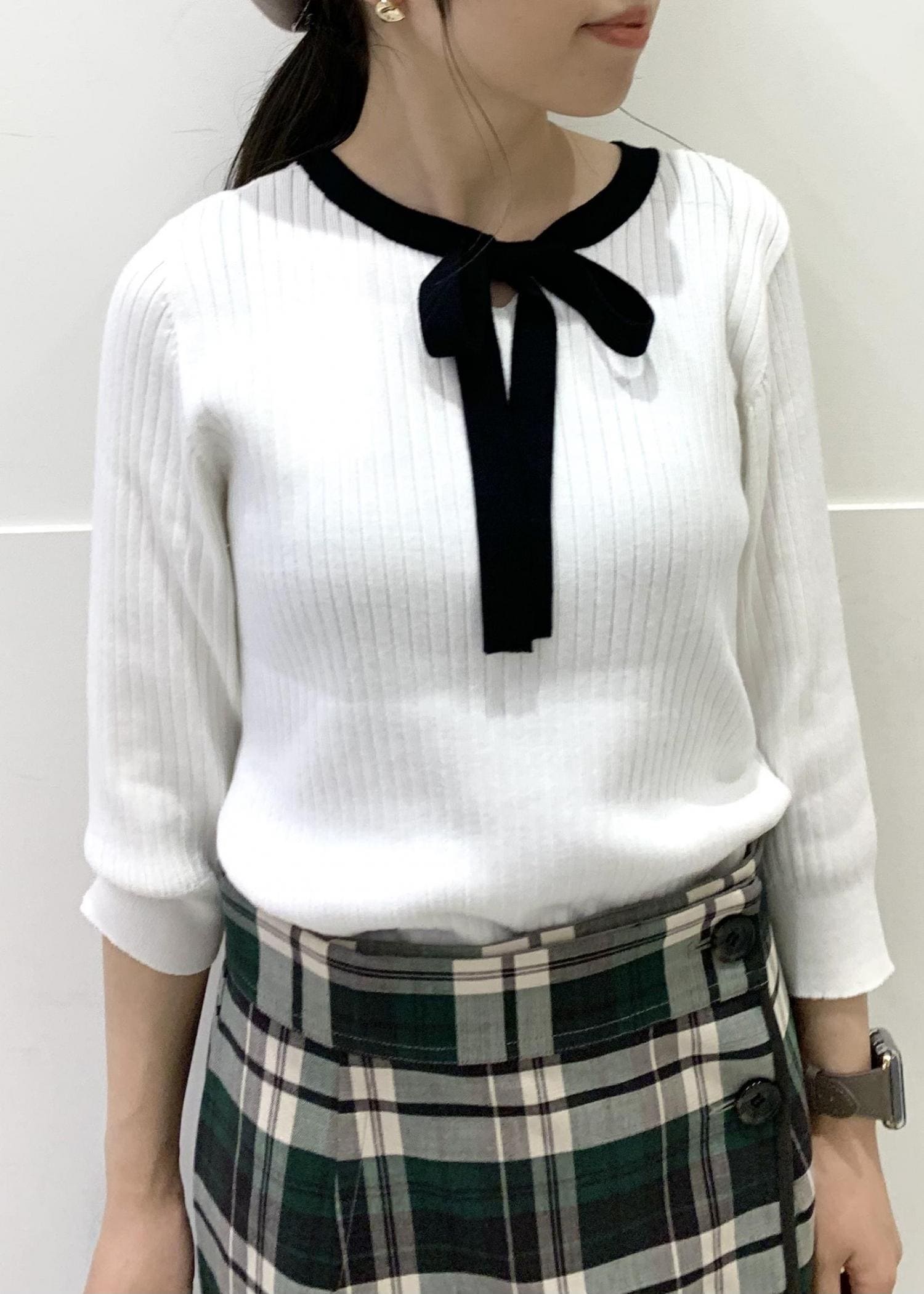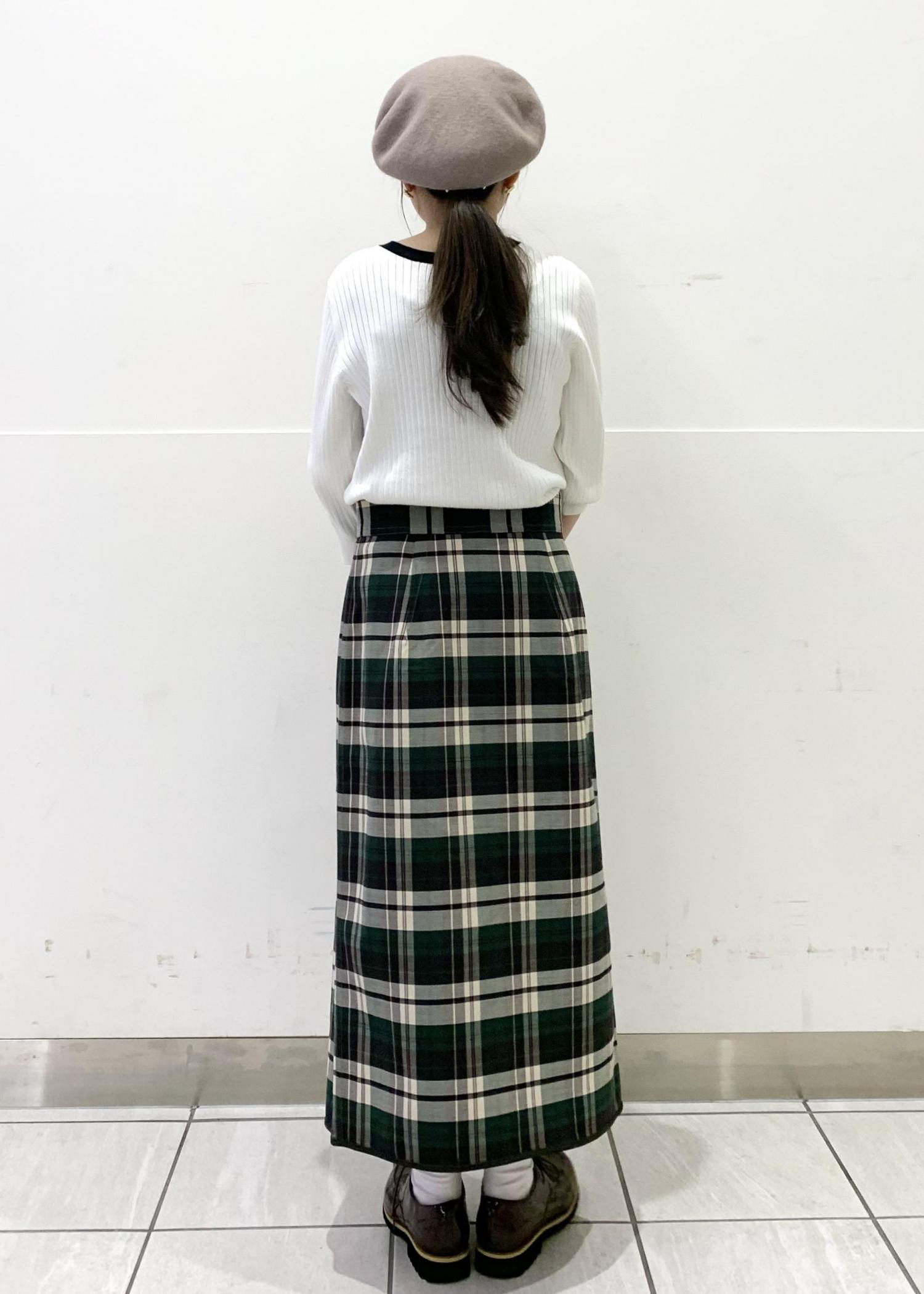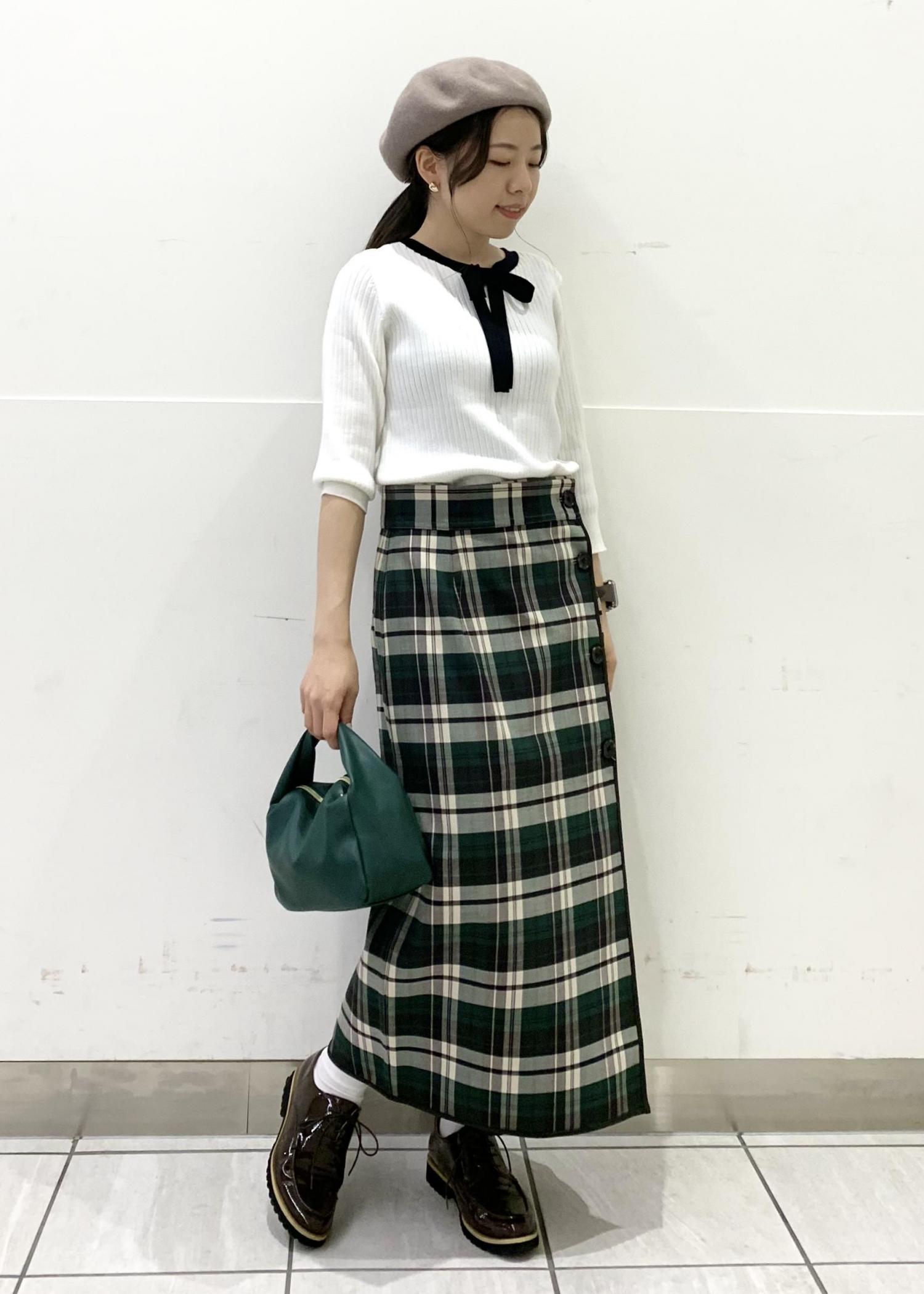 秋らしいチェックスカートにボウタイのトップスを合わせた、トラッドスタイルです!