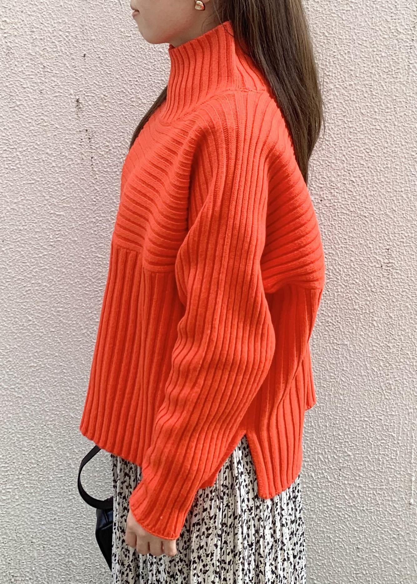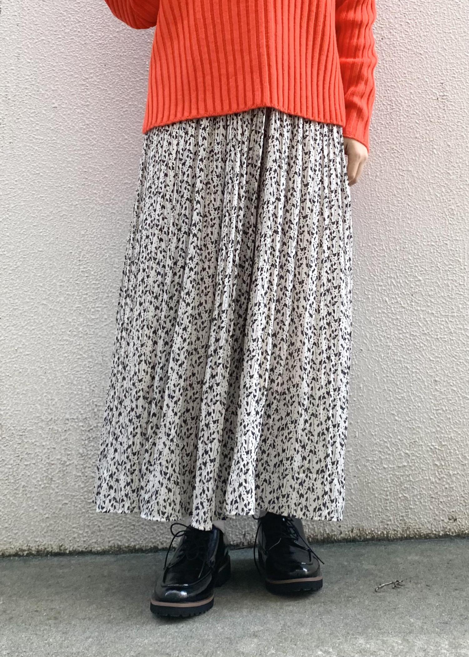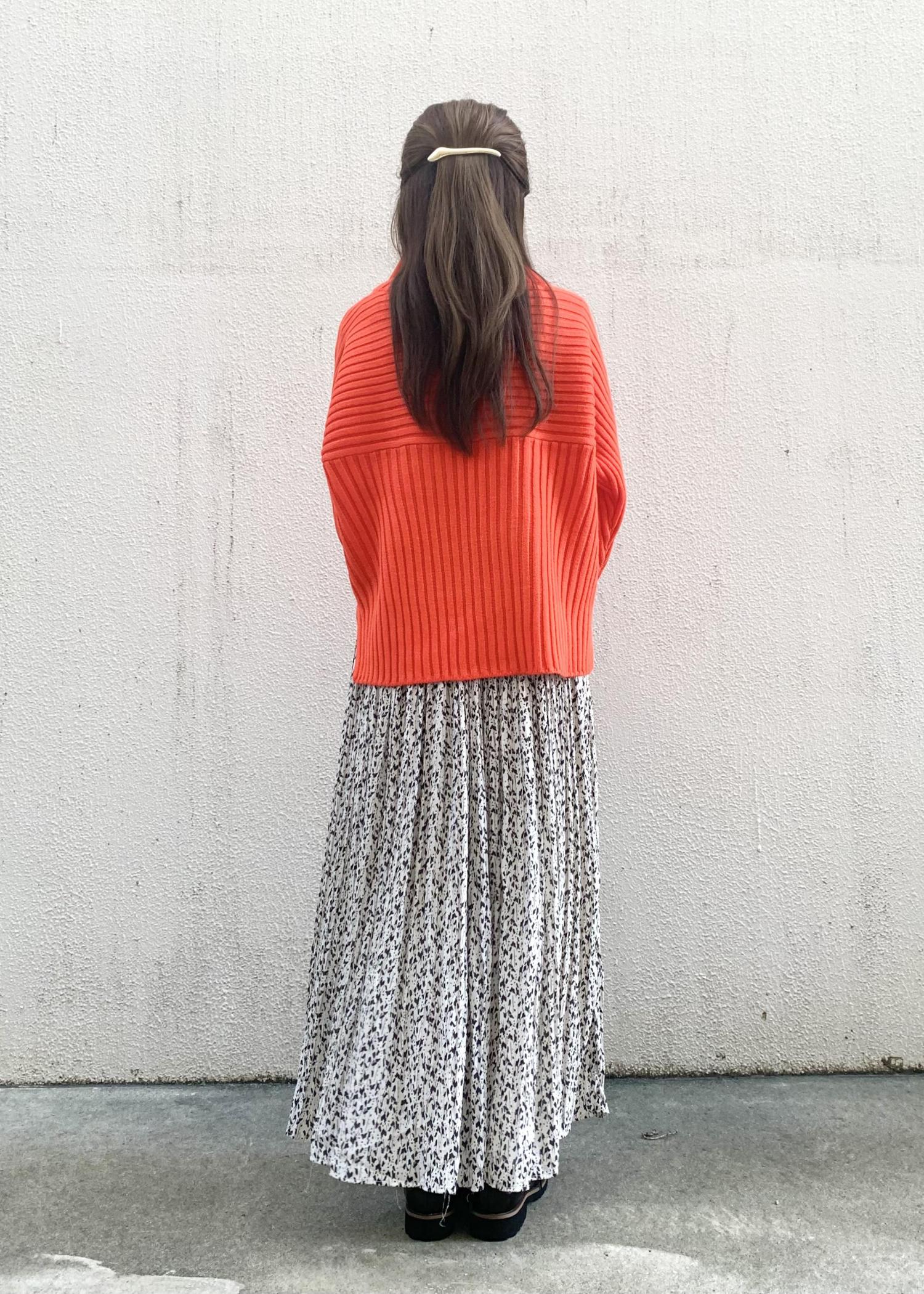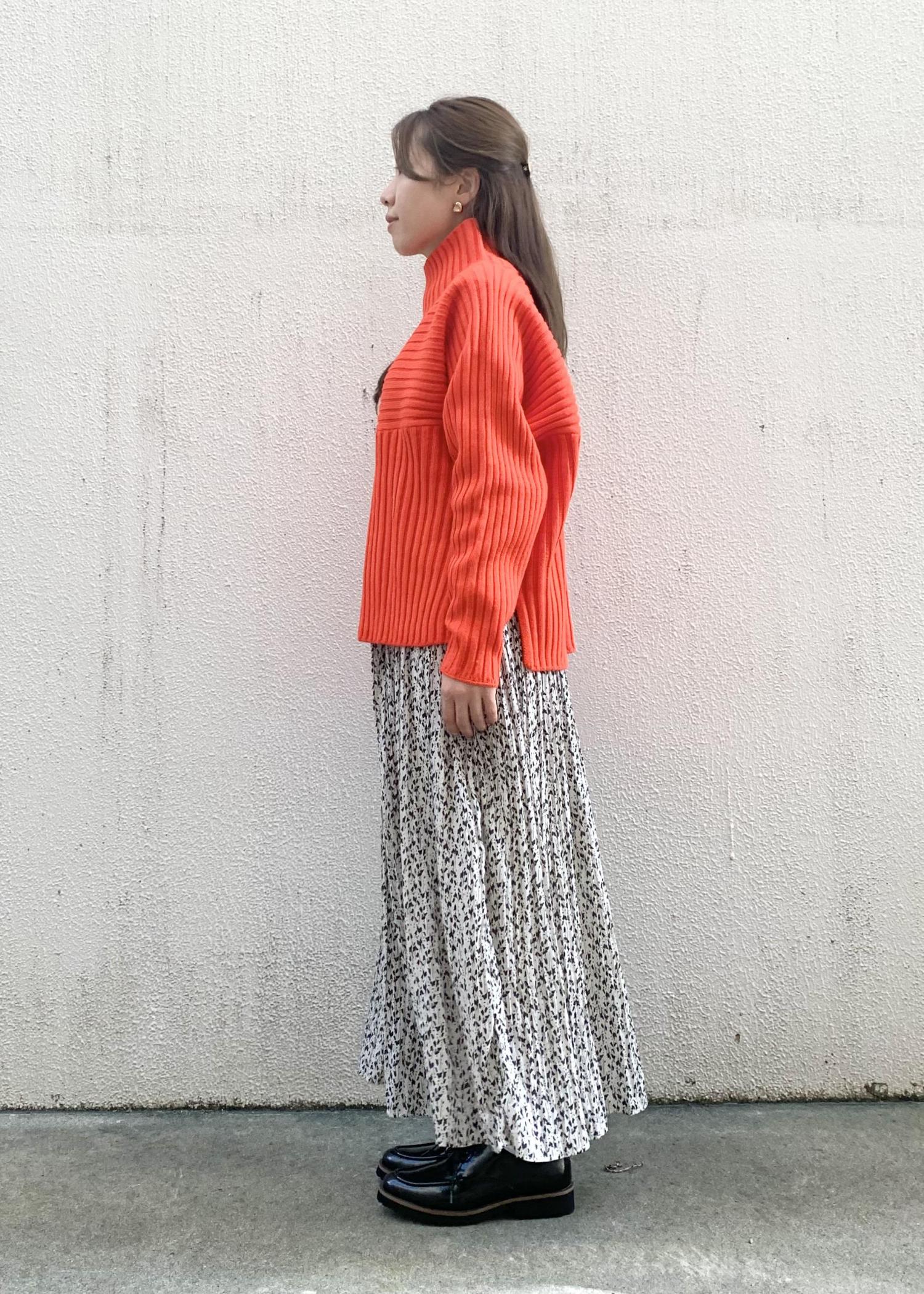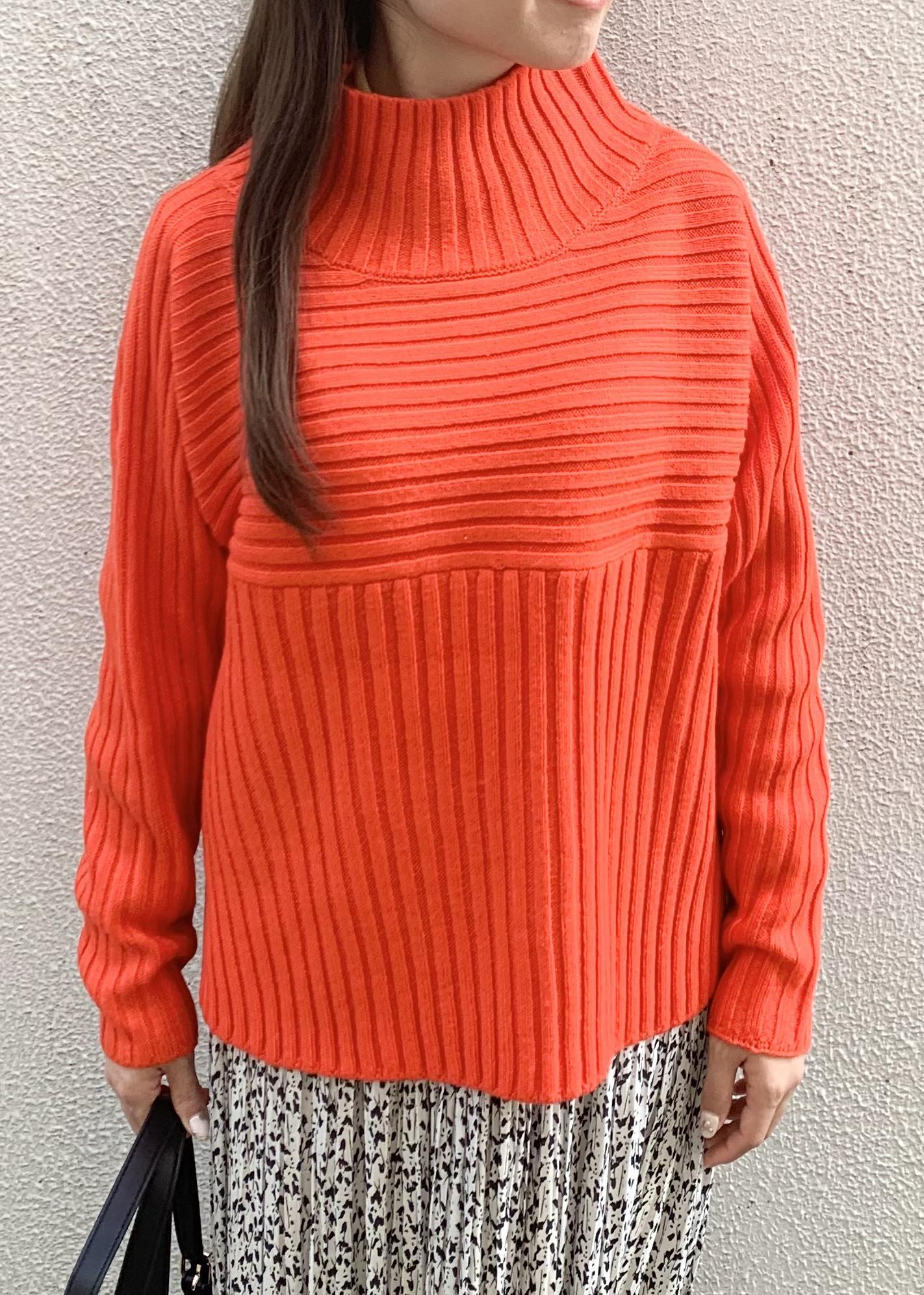 ニットはゆったりめなデザインですが、丈が短めなのでロングスカートを合わせてもバランス良くお召しいただけますよ。