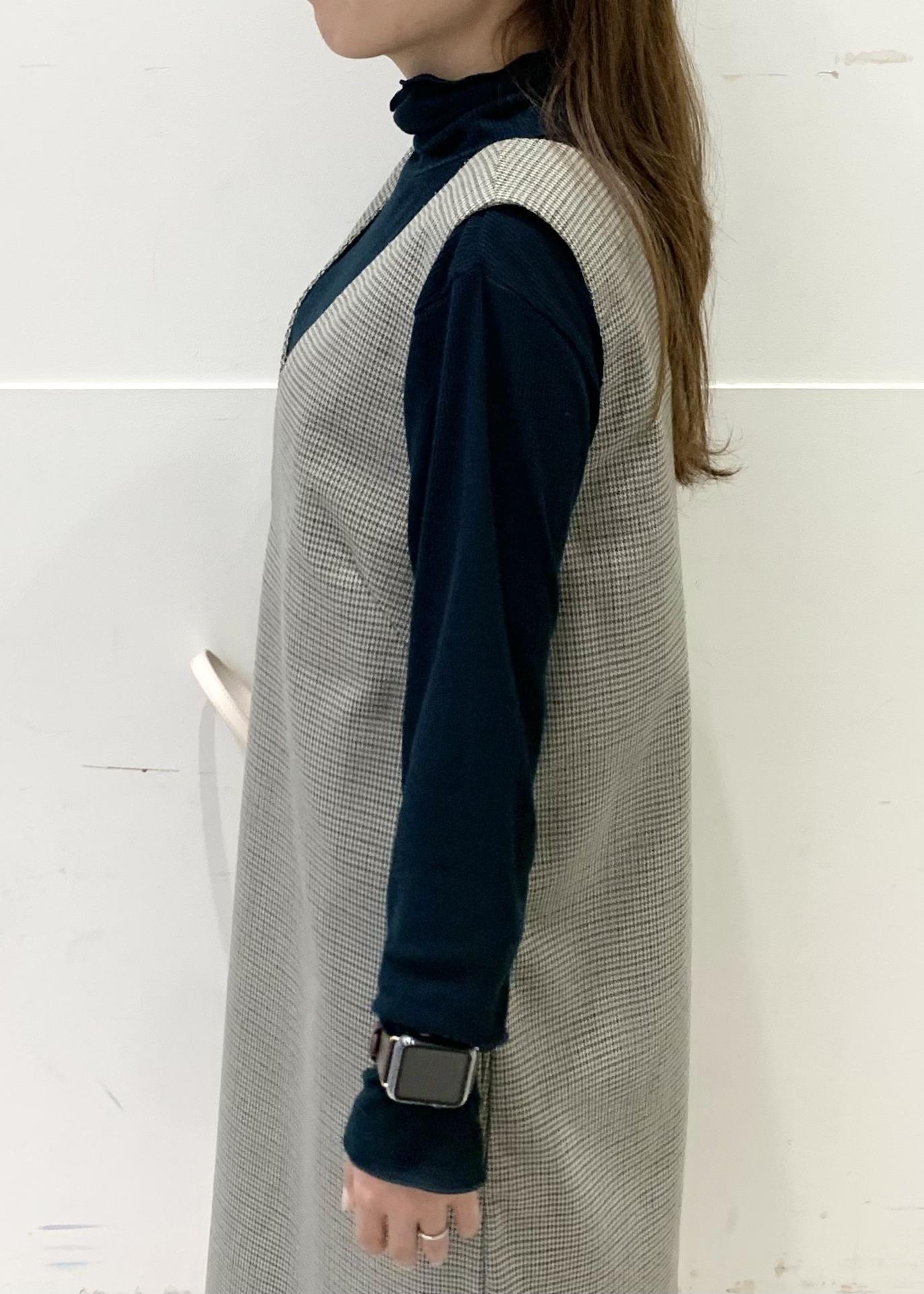 タイトなシルエットなので、ボリュームのあるカーディガンを羽織ってもバランス良くお召しいただけます。