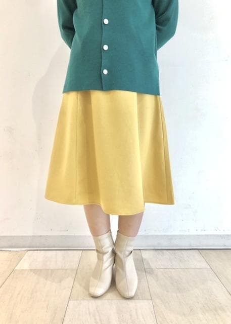 カラー×カラーの気分の上がるコーディネートです◎色が明るいものを合わせているので、アイテムはきちんと感のでるカーディガンやフレアスカートを合わせてみました。