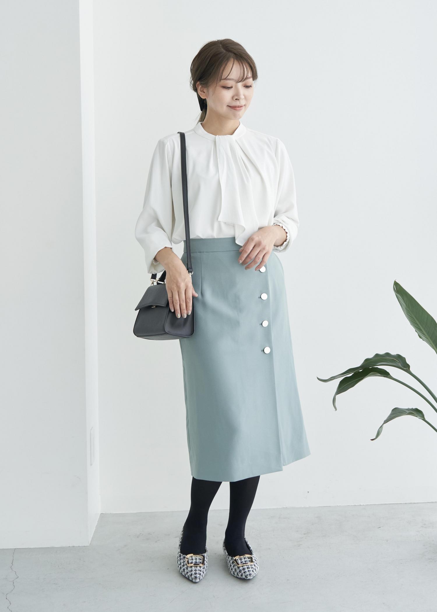 きれいめコーデに合わせやすいブラウスとスカートの組み合わせです。