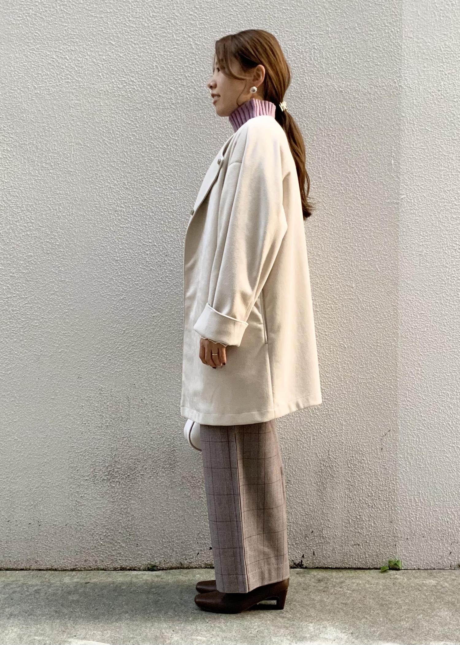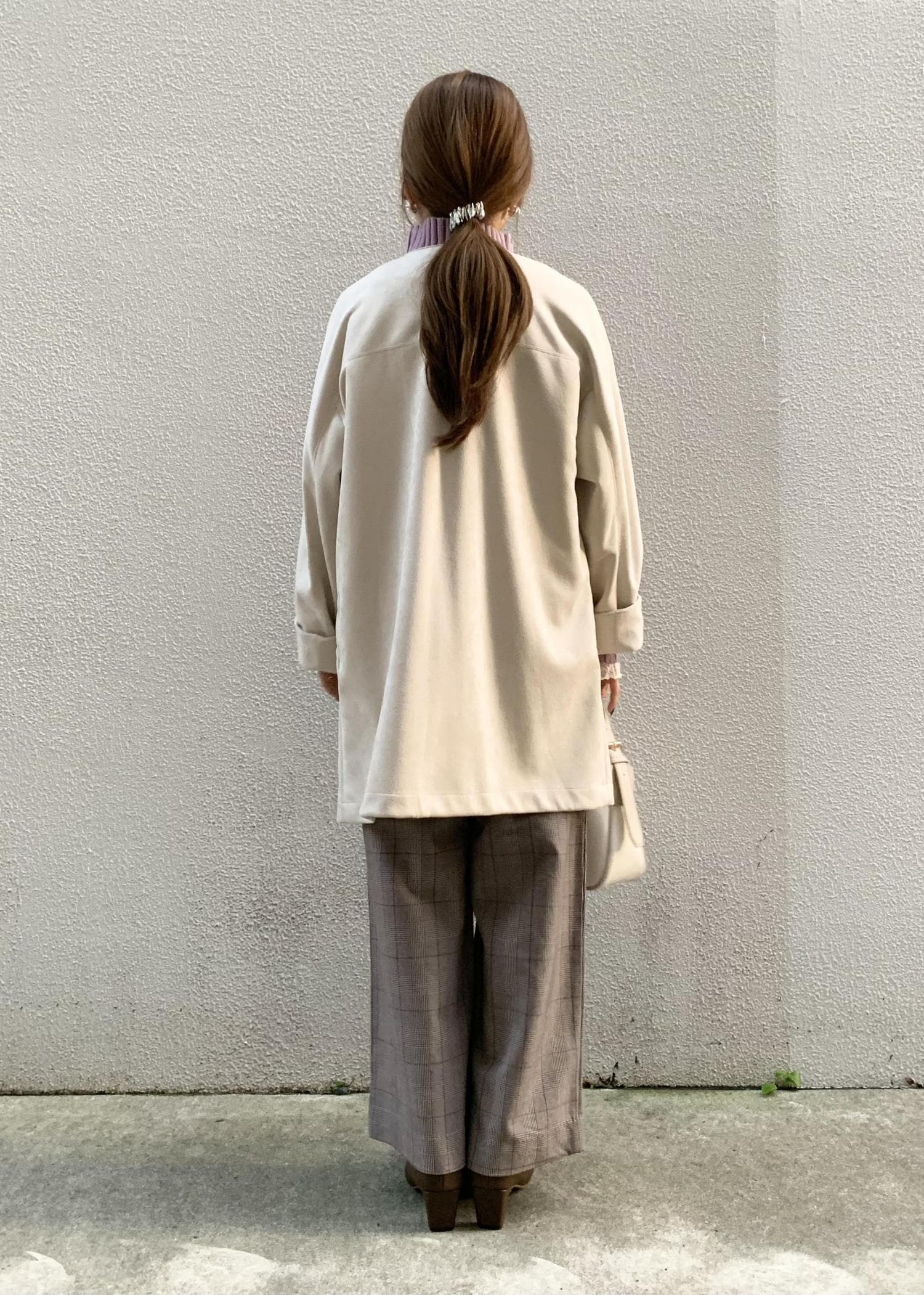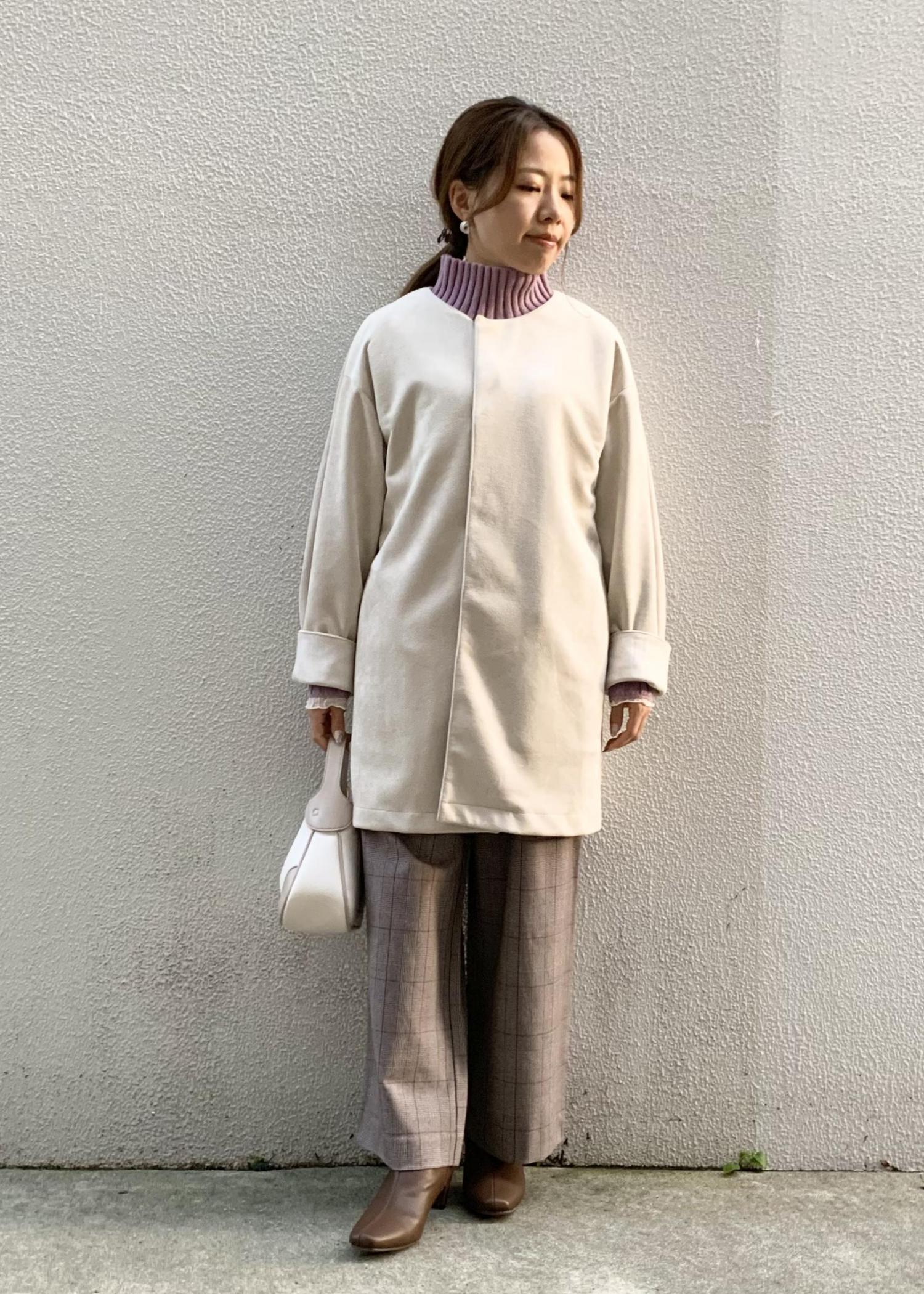 落ち感のあるコートなのでボトムにワイドパンツを合わせてもスッキリ見えますよ。