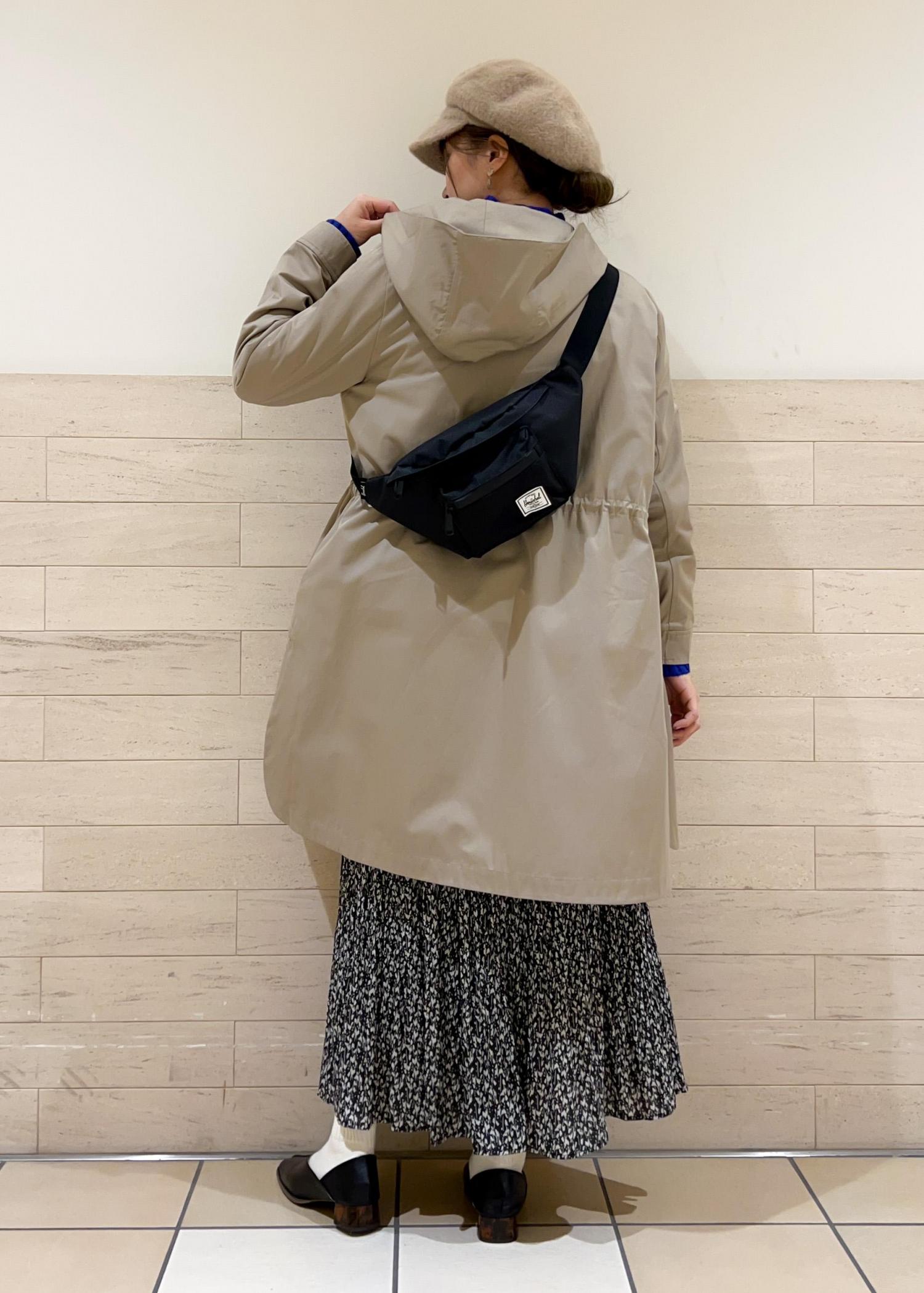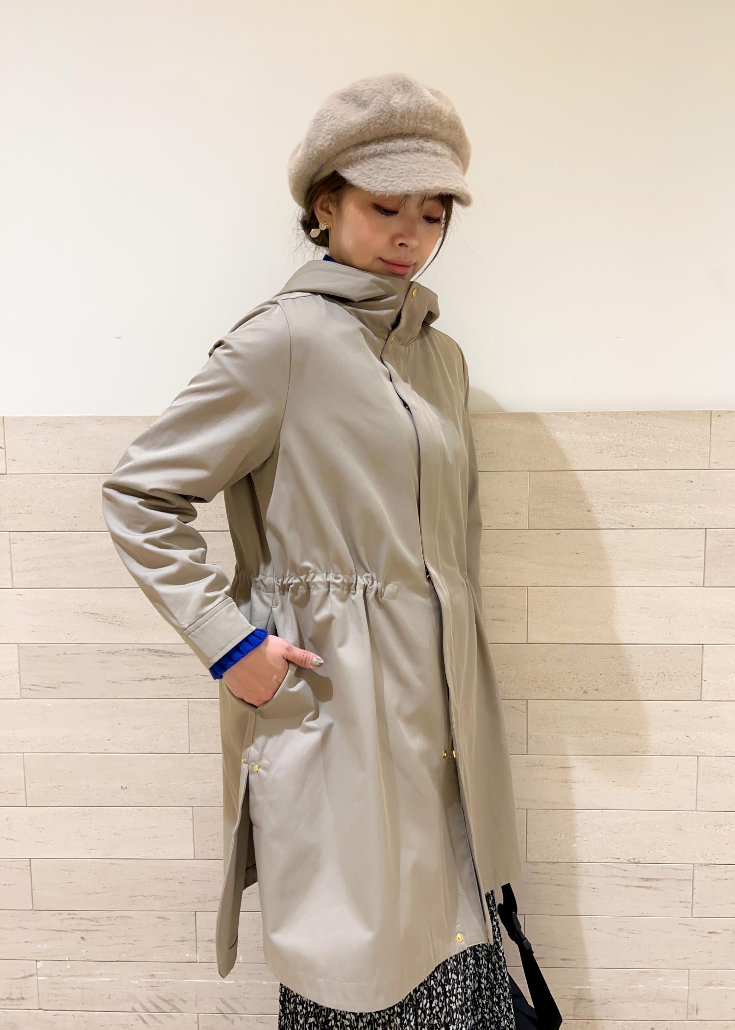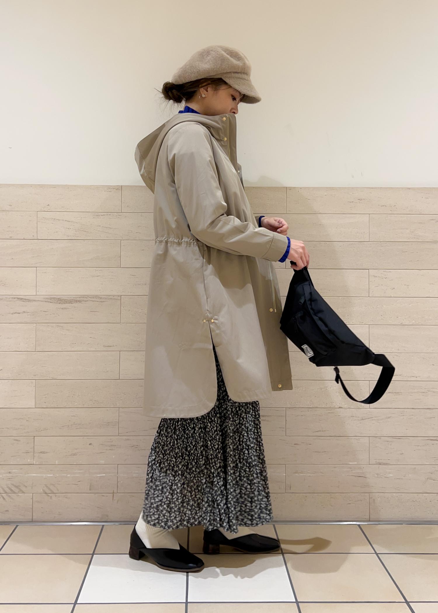 撥水機能のモッズコートを合わせて、カジュアルなコーデにしました。