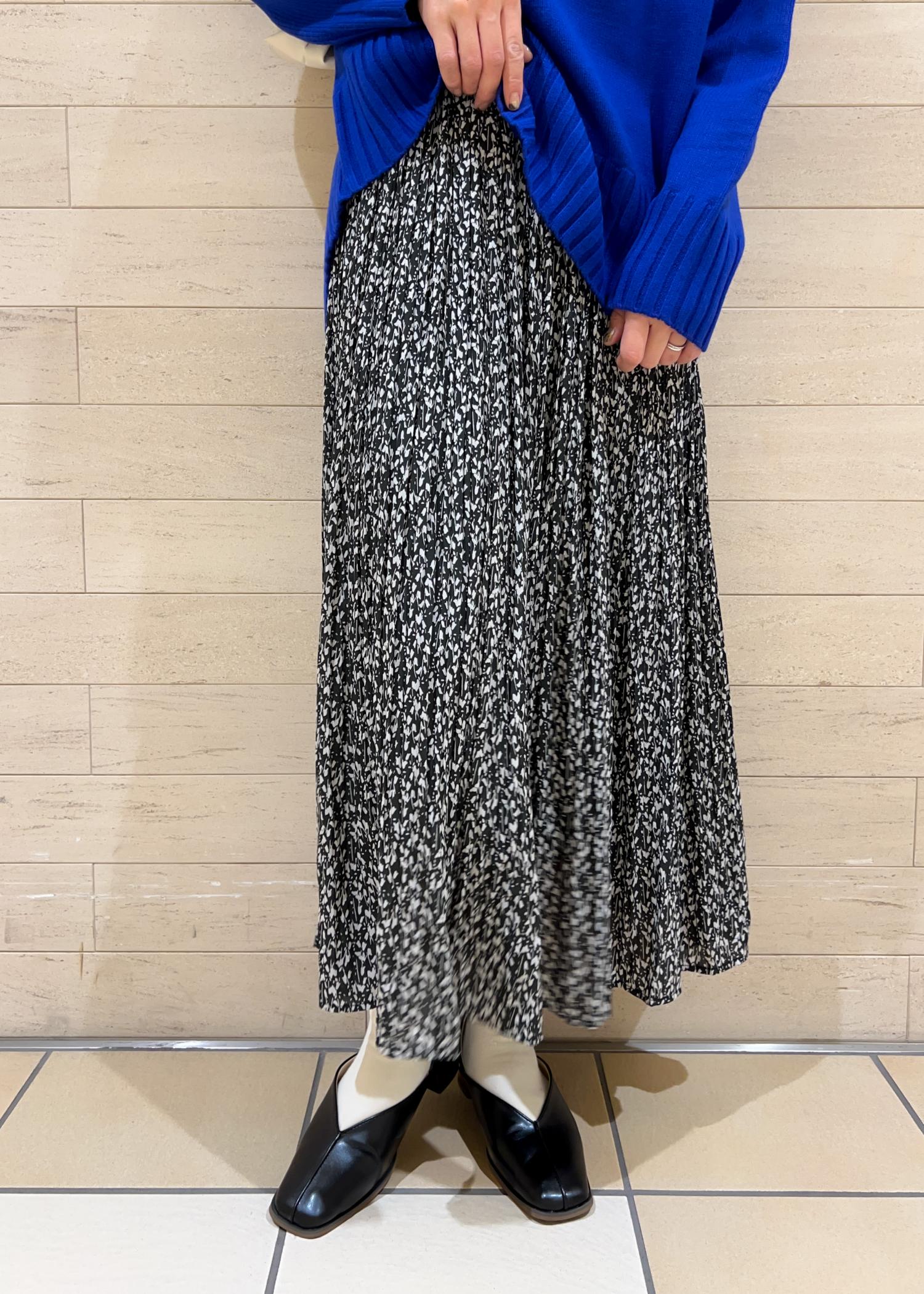 長めの丈感ですが落ち感のあるシルエットでスカートとも相性◎