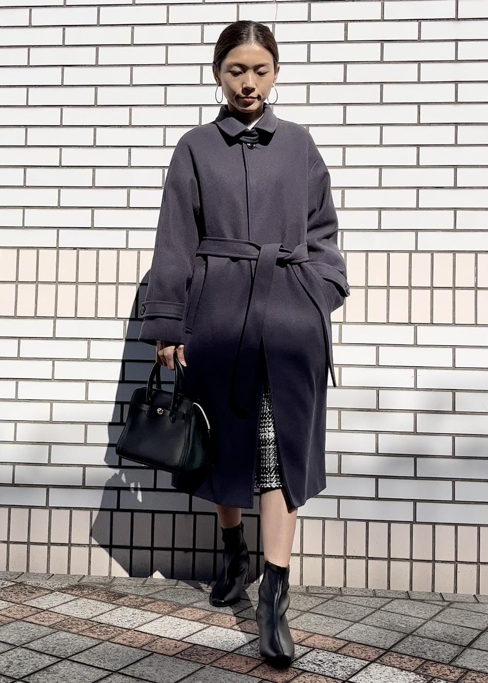 女性らしさのあるスカートとスタイリッシュなステンカラーコートのバランス感がお気に入りのコーデです♪