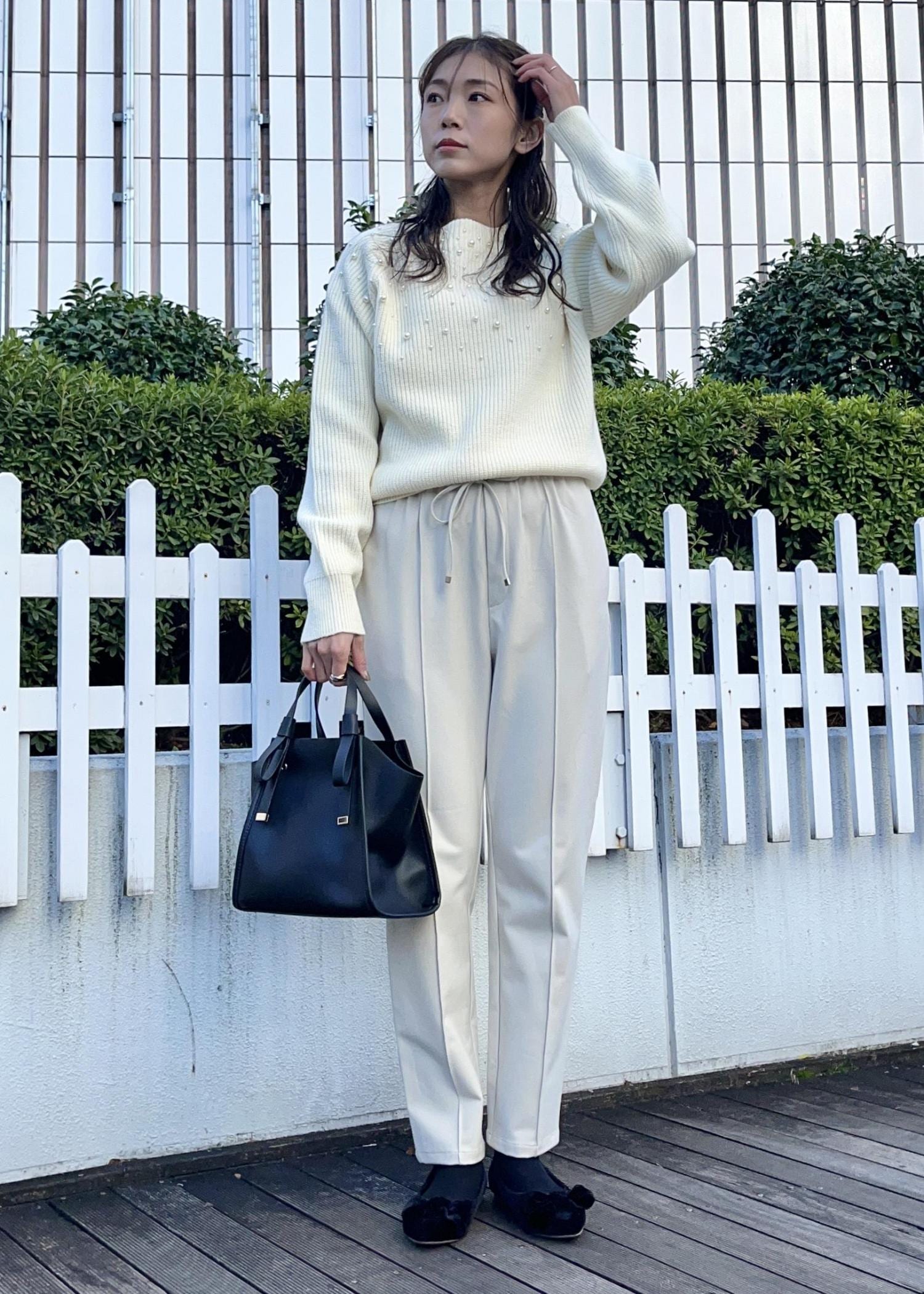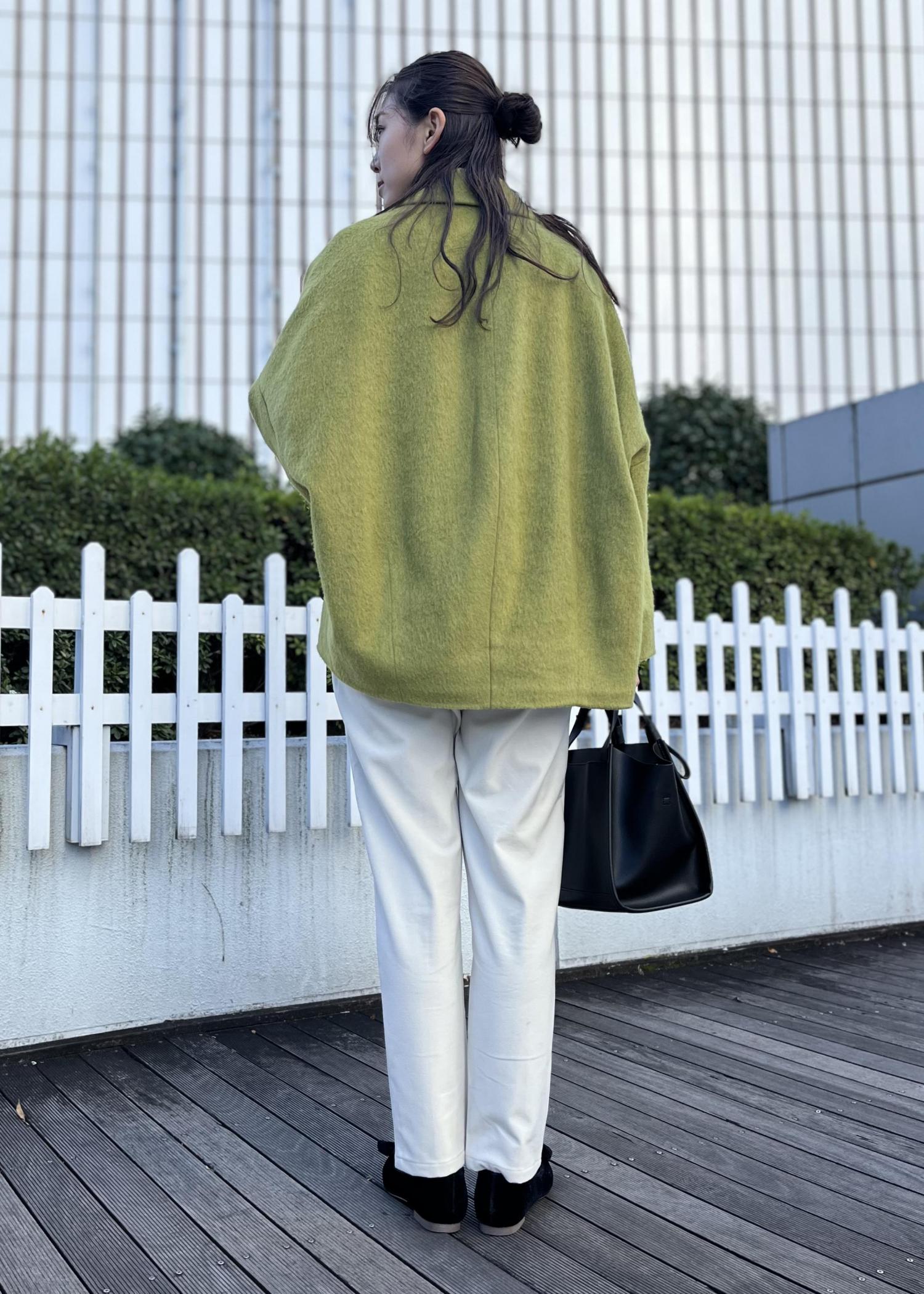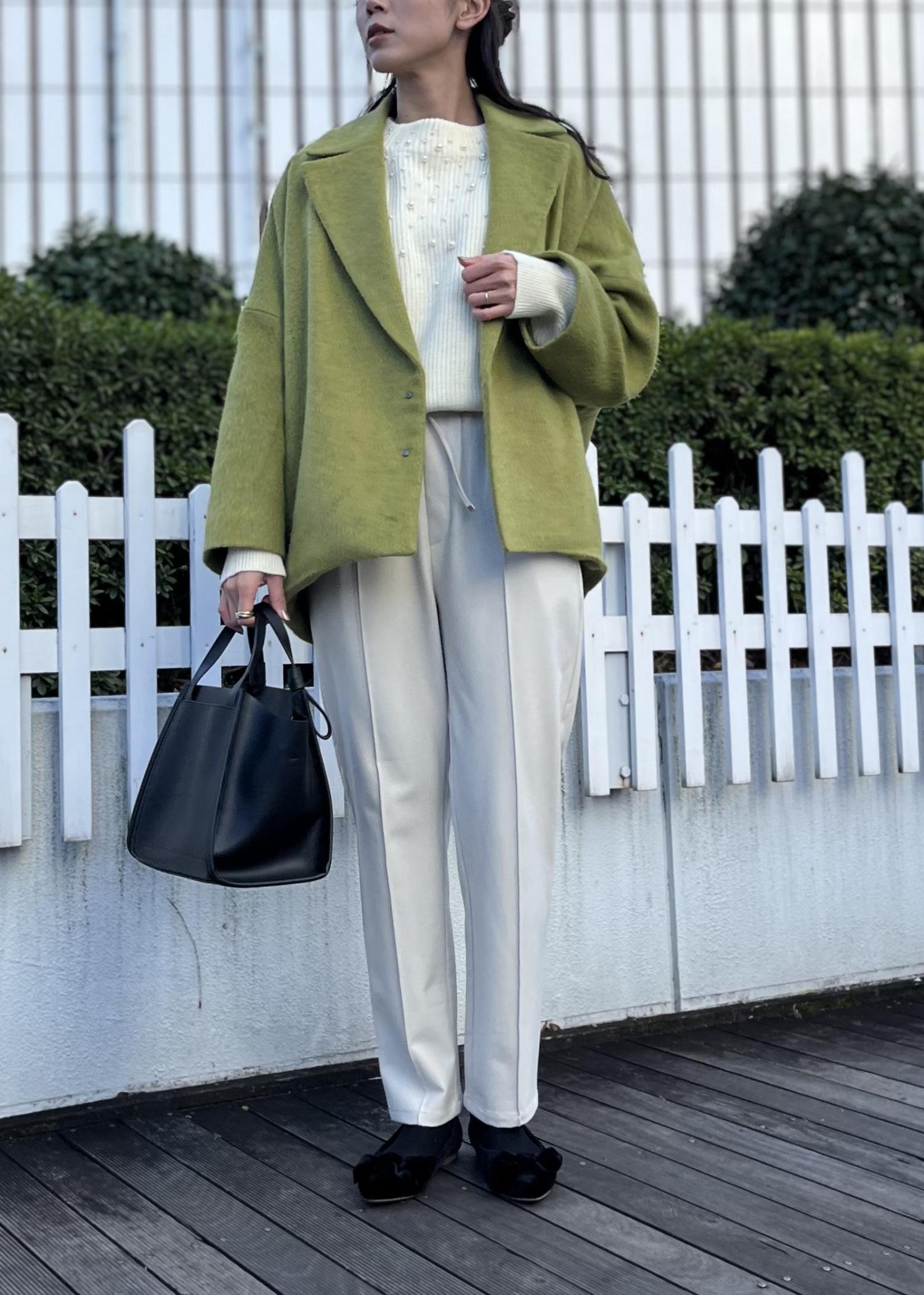 コートインは白で統一し、アウターのイエローが映えるコーデにしました。