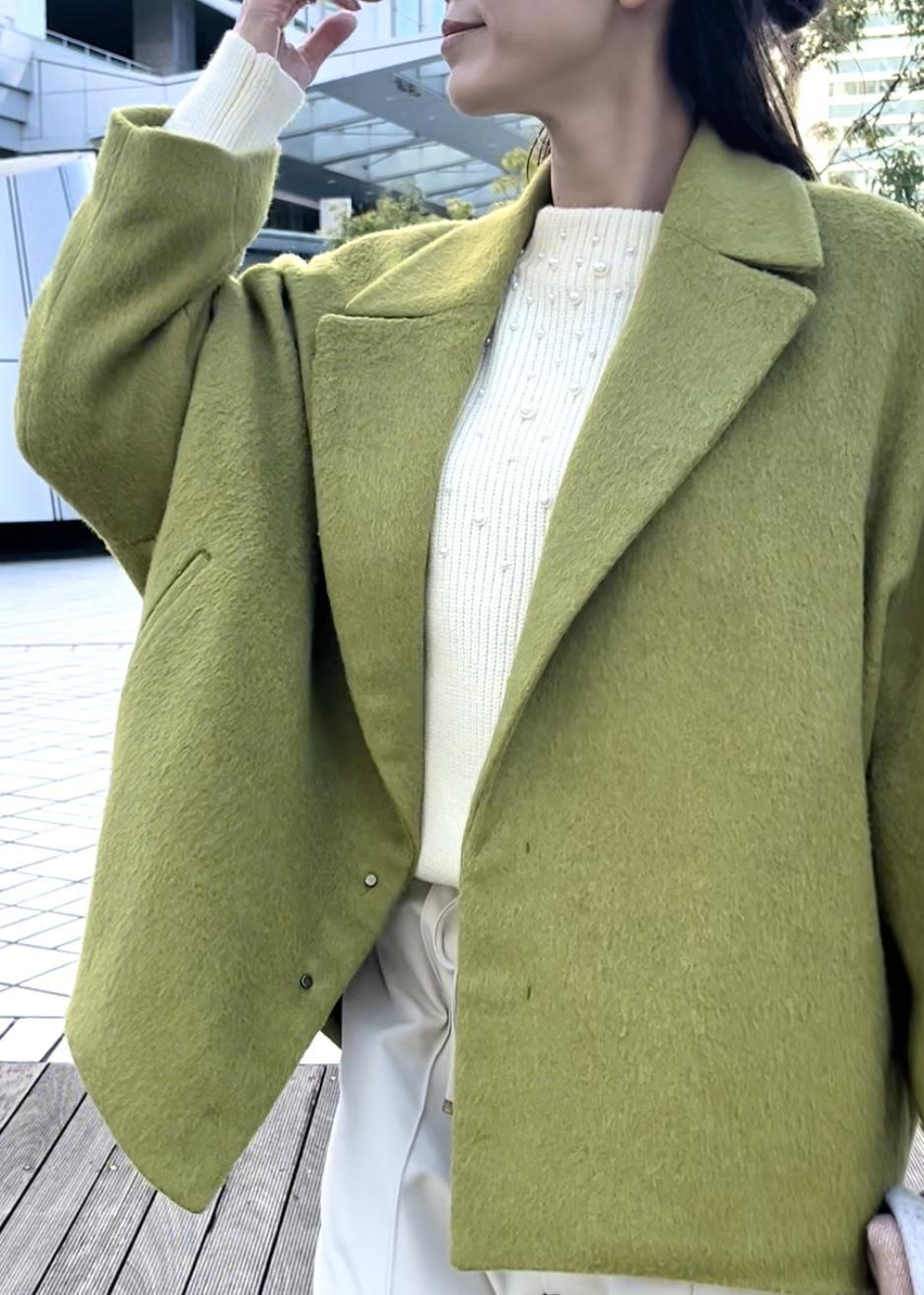オーバーサイズのコートですが、着丈の前後差があるため身長が高い方はだと意外とすっきりと、小柄な方だと丸みのあるシルエットを活かした可愛いコーデを楽しんでいただけます♪