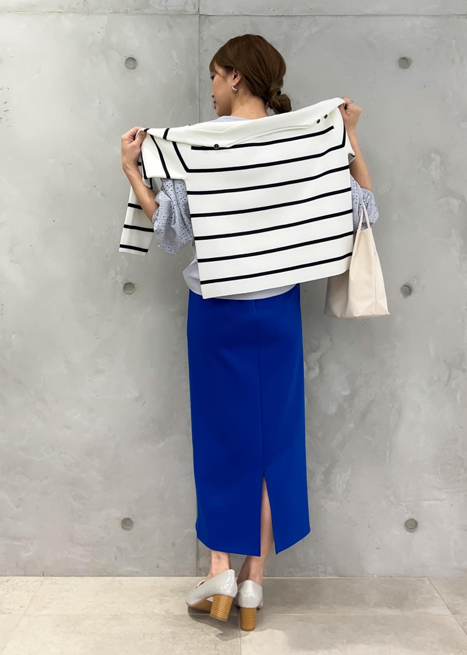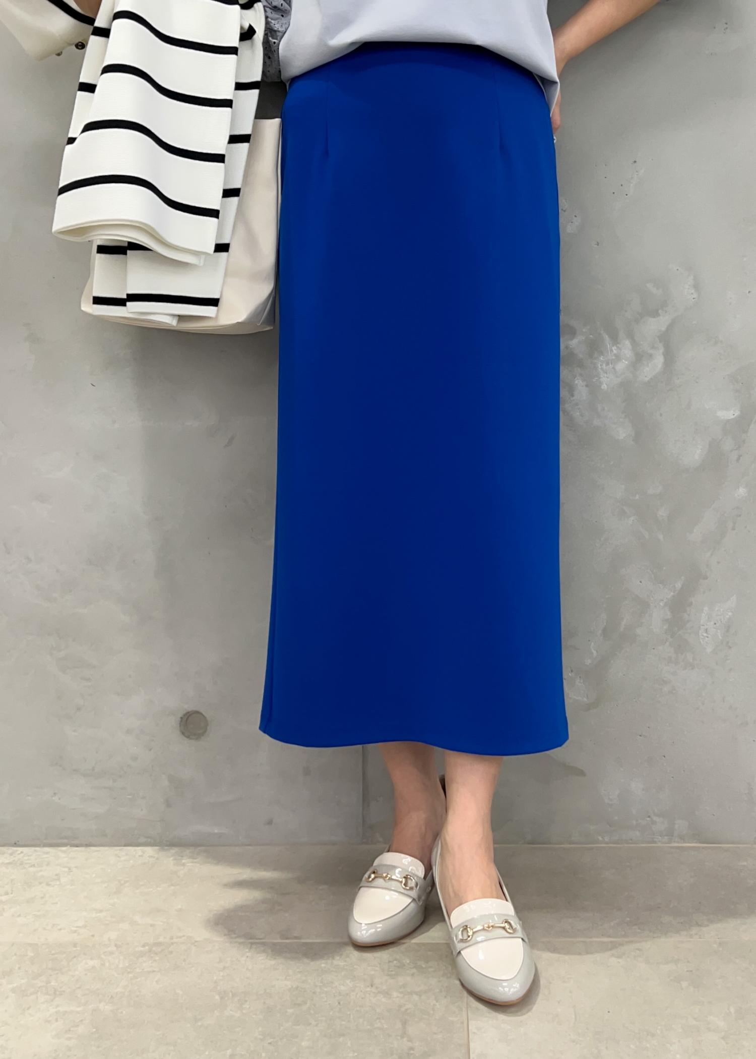 着丈が選べるスカートは、鮮やかなブルーが華やぎポイントに。