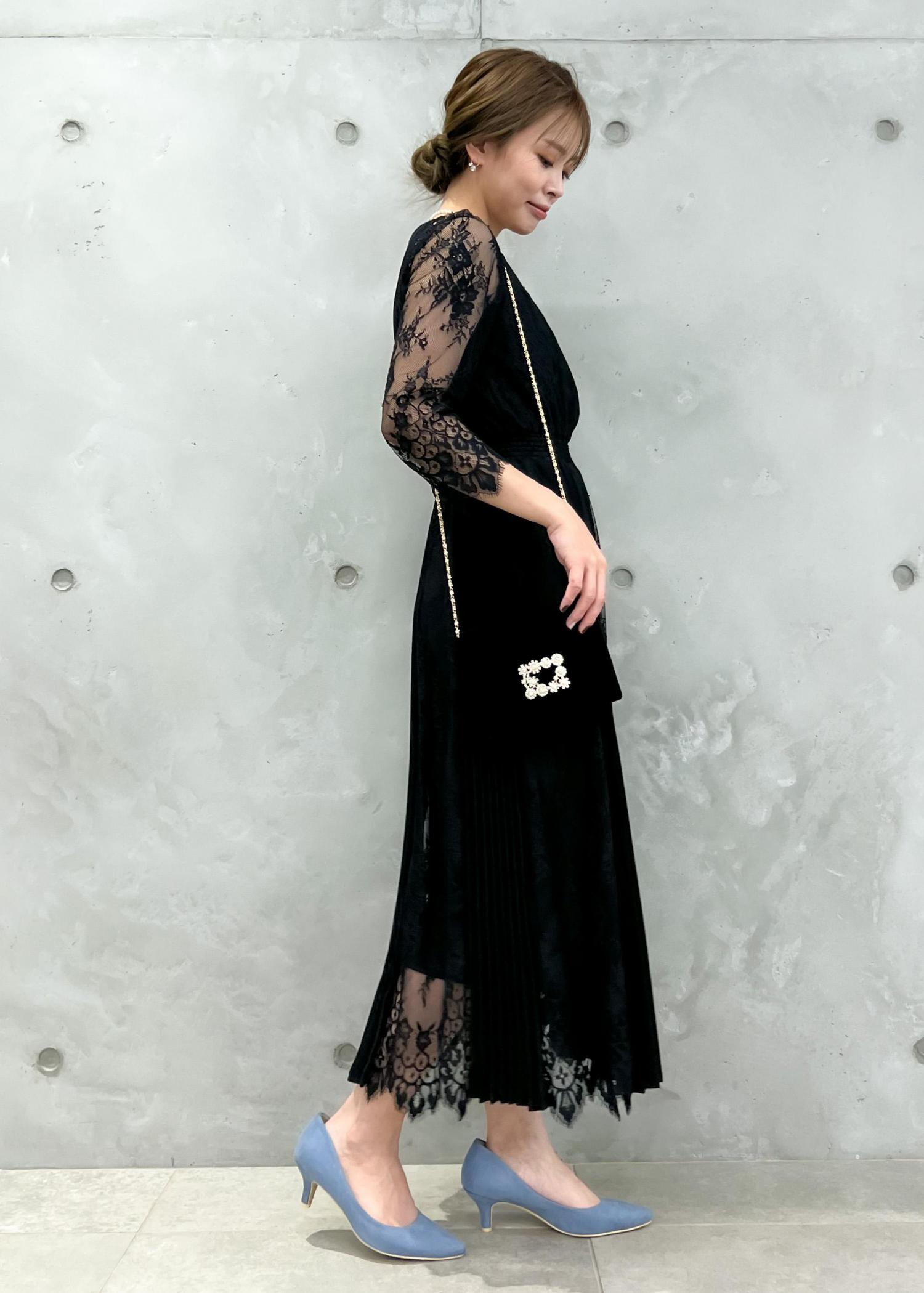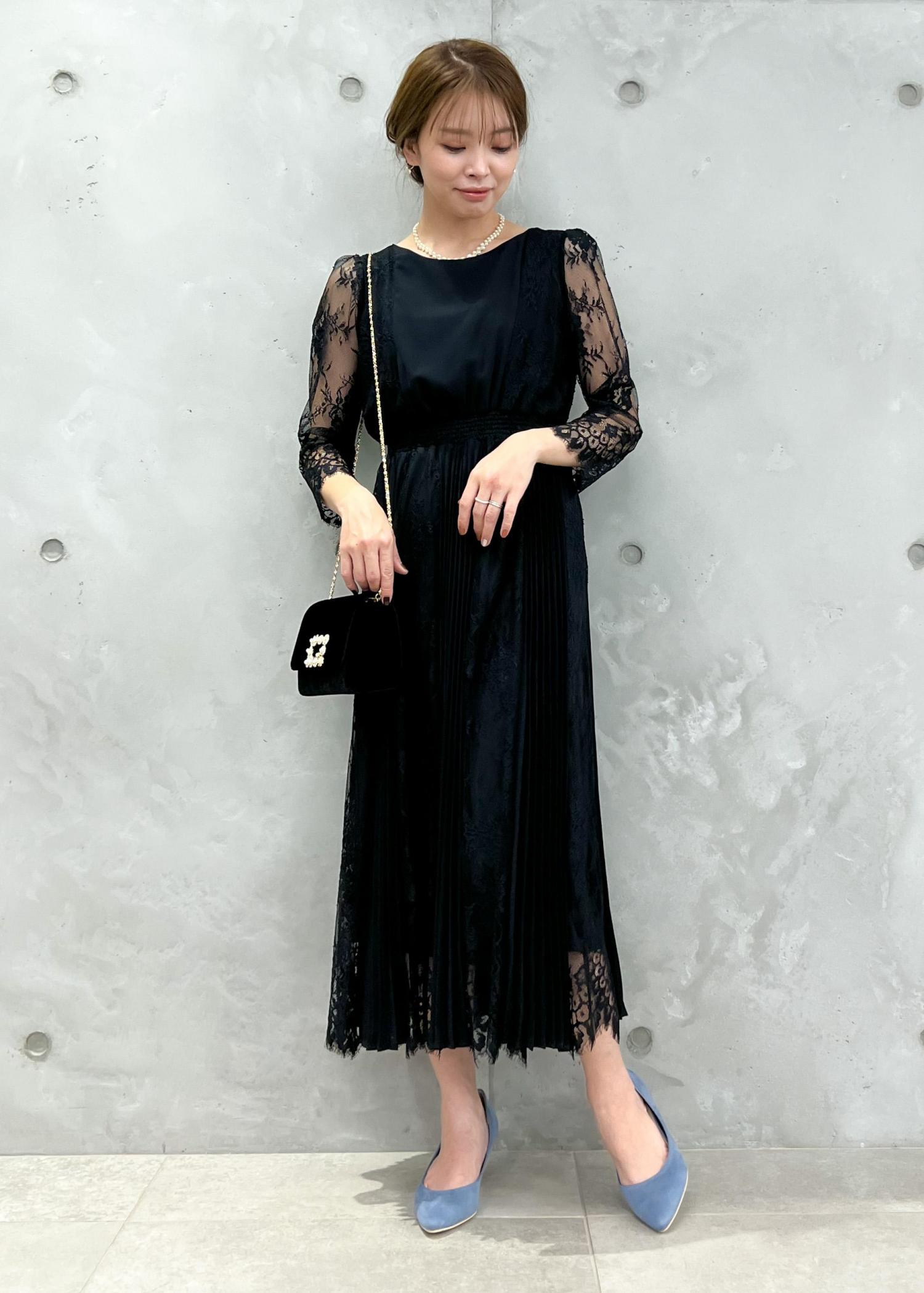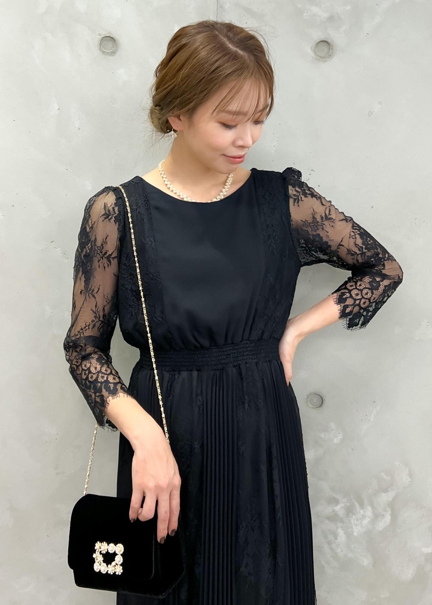 モンエトワールの新作ドレスは、レースとプリーツの切替が綺麗なデザイン。