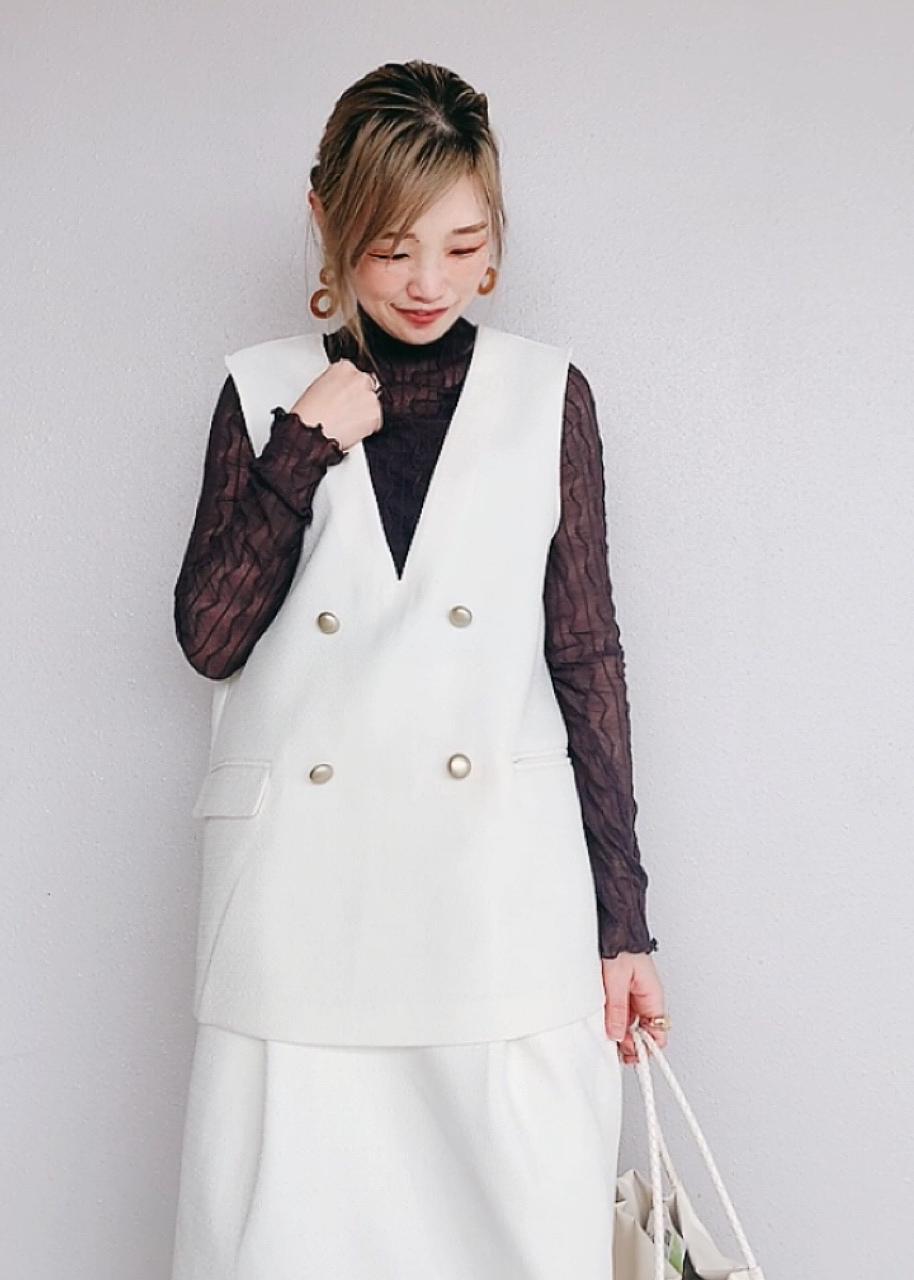 Vネックのベストのインナーにはシアーのタートルを合わせています。