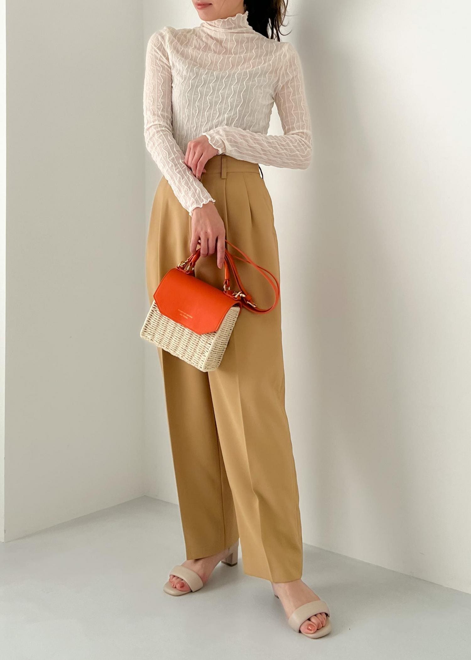 ワイドめシルエットのパンツ合わせできれいめカジュアルコーデにしました。