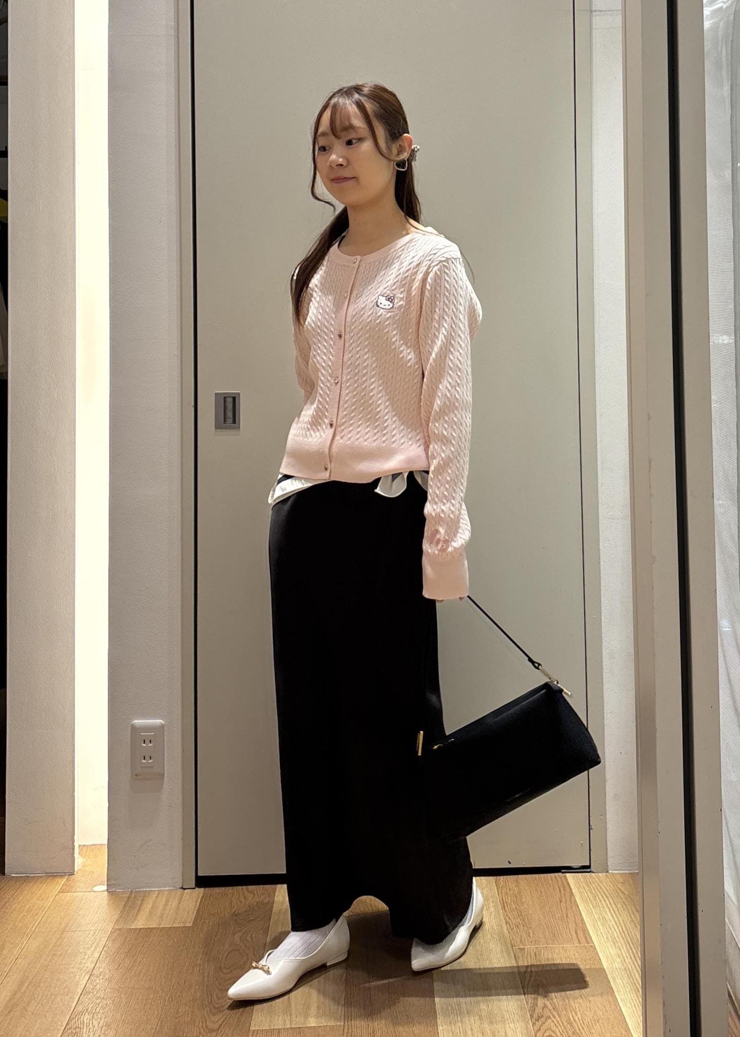 ブラウスのパールやマーメイドシルエットが女性らしさを演出してくれます。