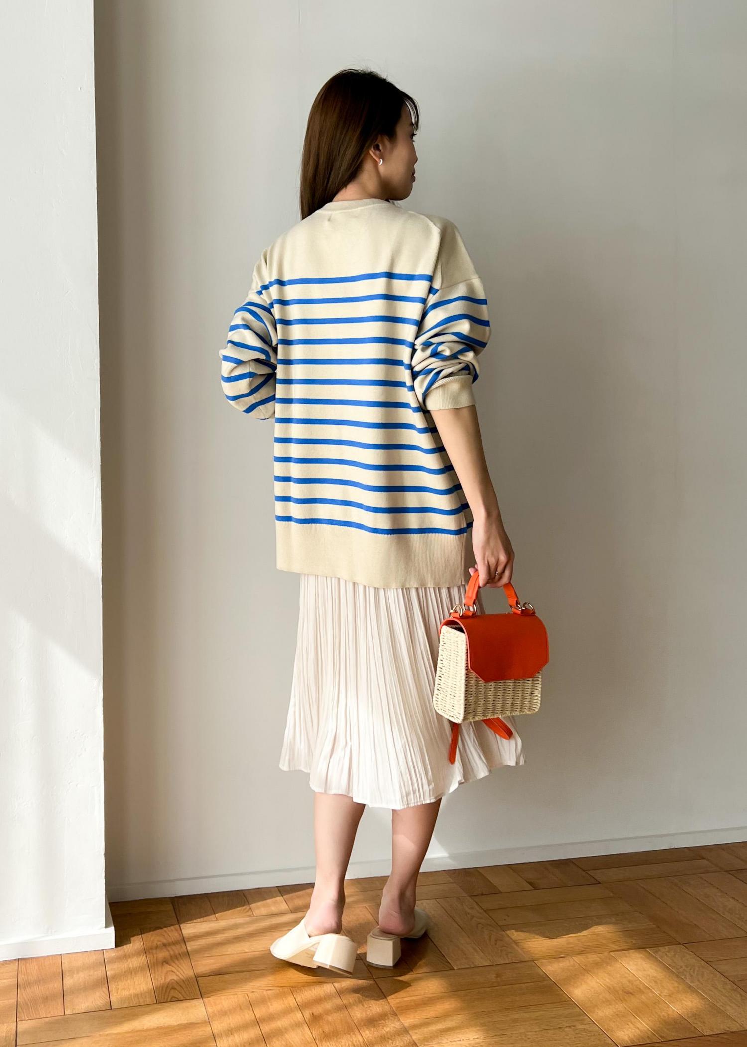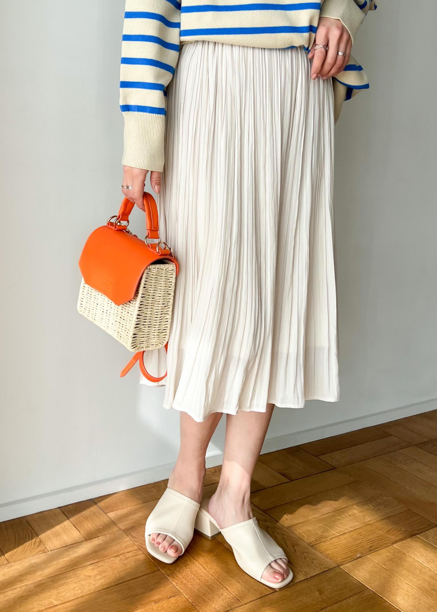 ミモレ丈のスカートを合わせて軽やかな春コーデにしました。