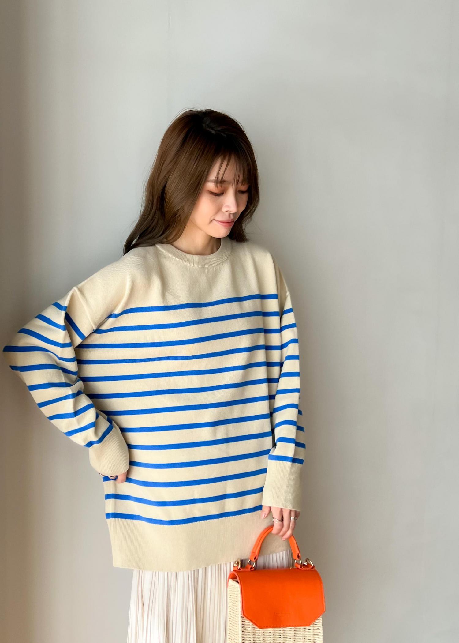 ベージュ×ブルーの組み合わせがこなれ感のあるニットはweb限定アイテム。