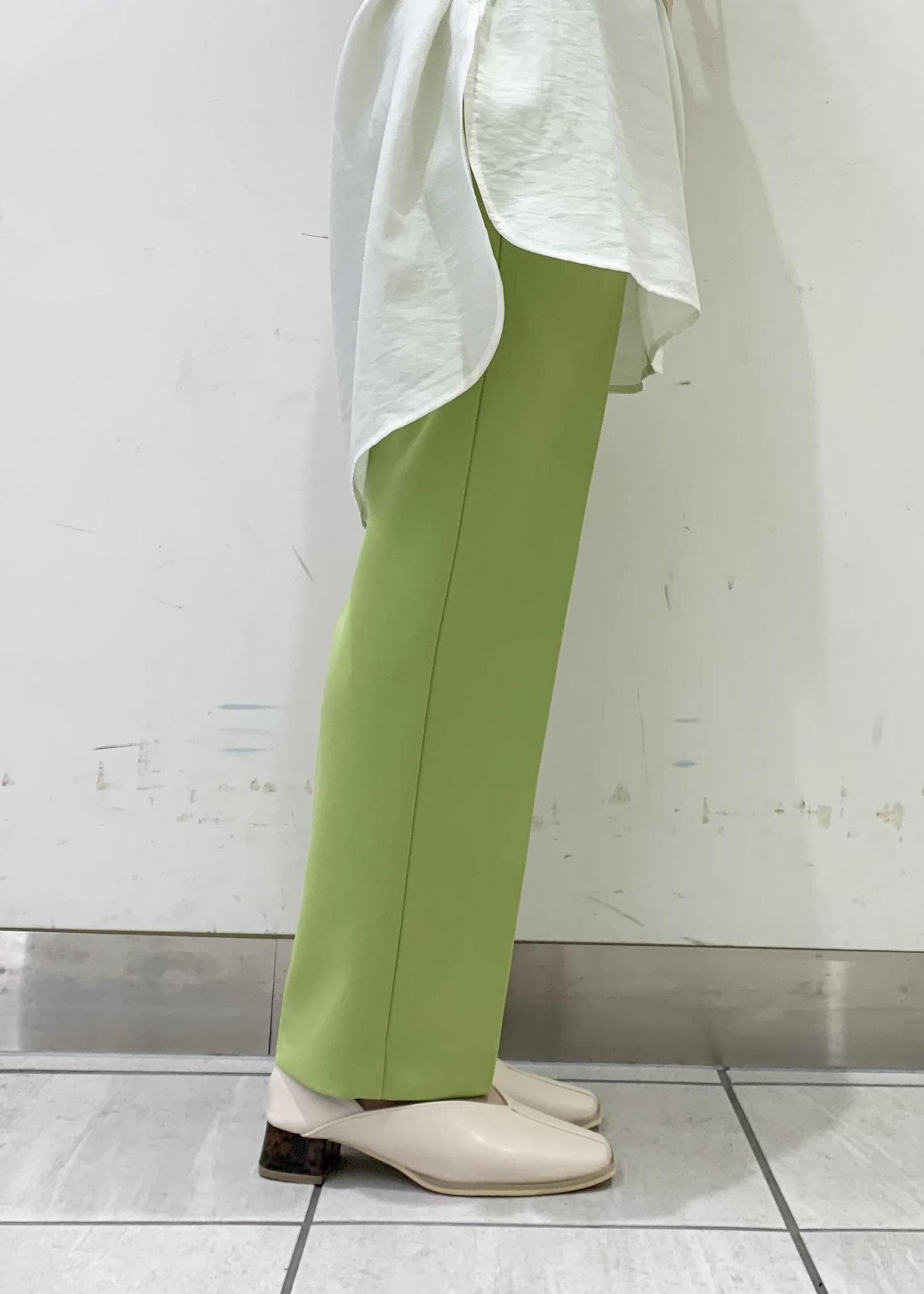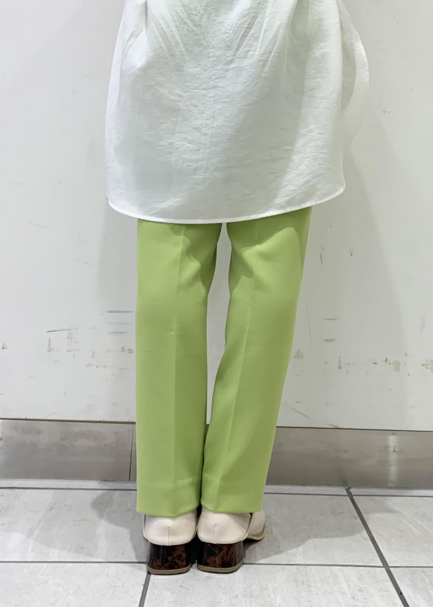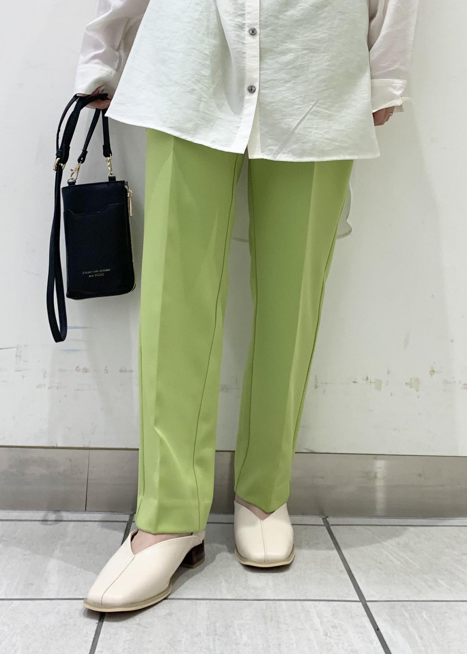 ライトグリーンのパンツを合わせて、爽やかな印象に。