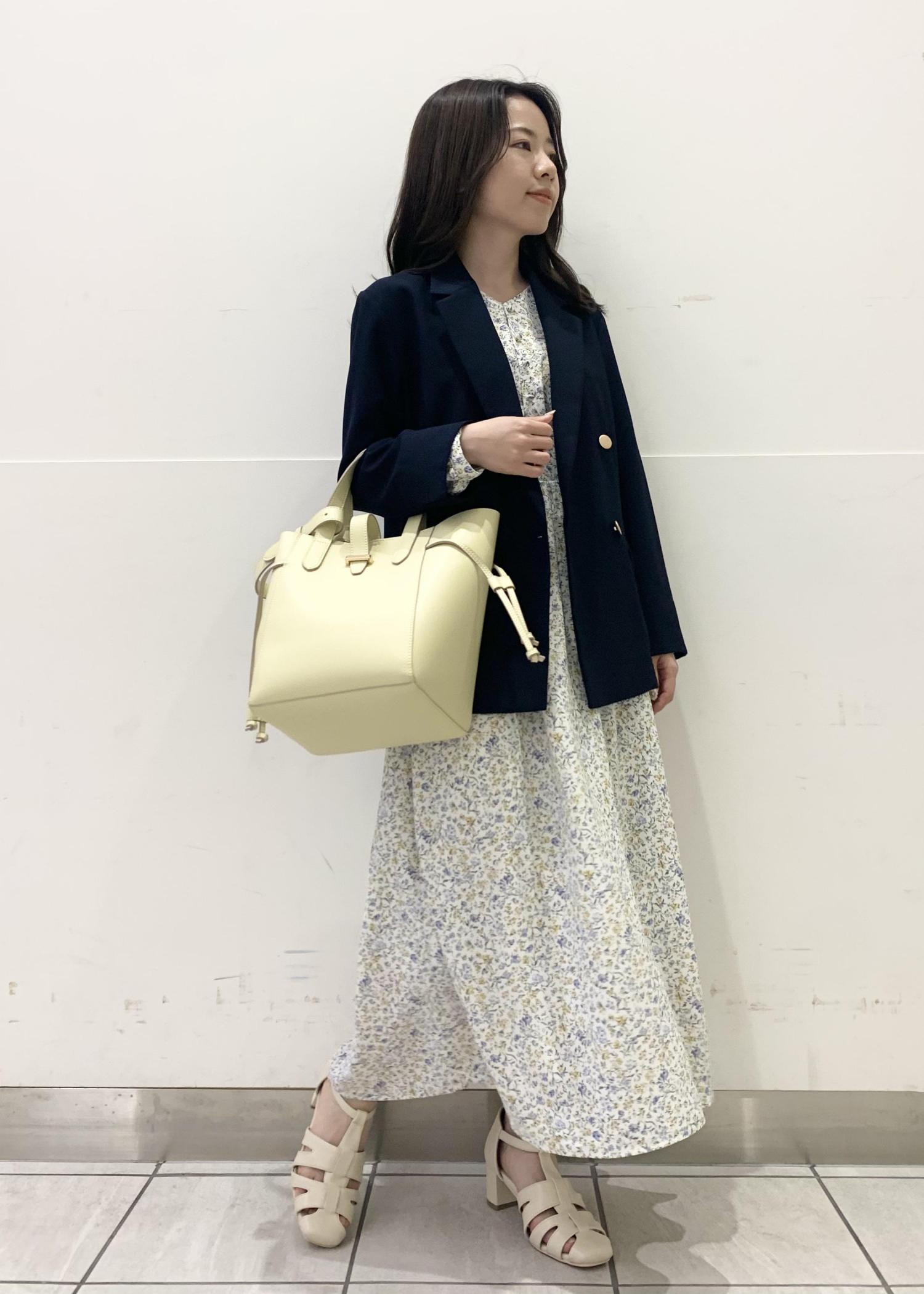オススメコーデ:ジャケットを羽織っていただくとワンピースの甘さを抑えられるのでオススメです。