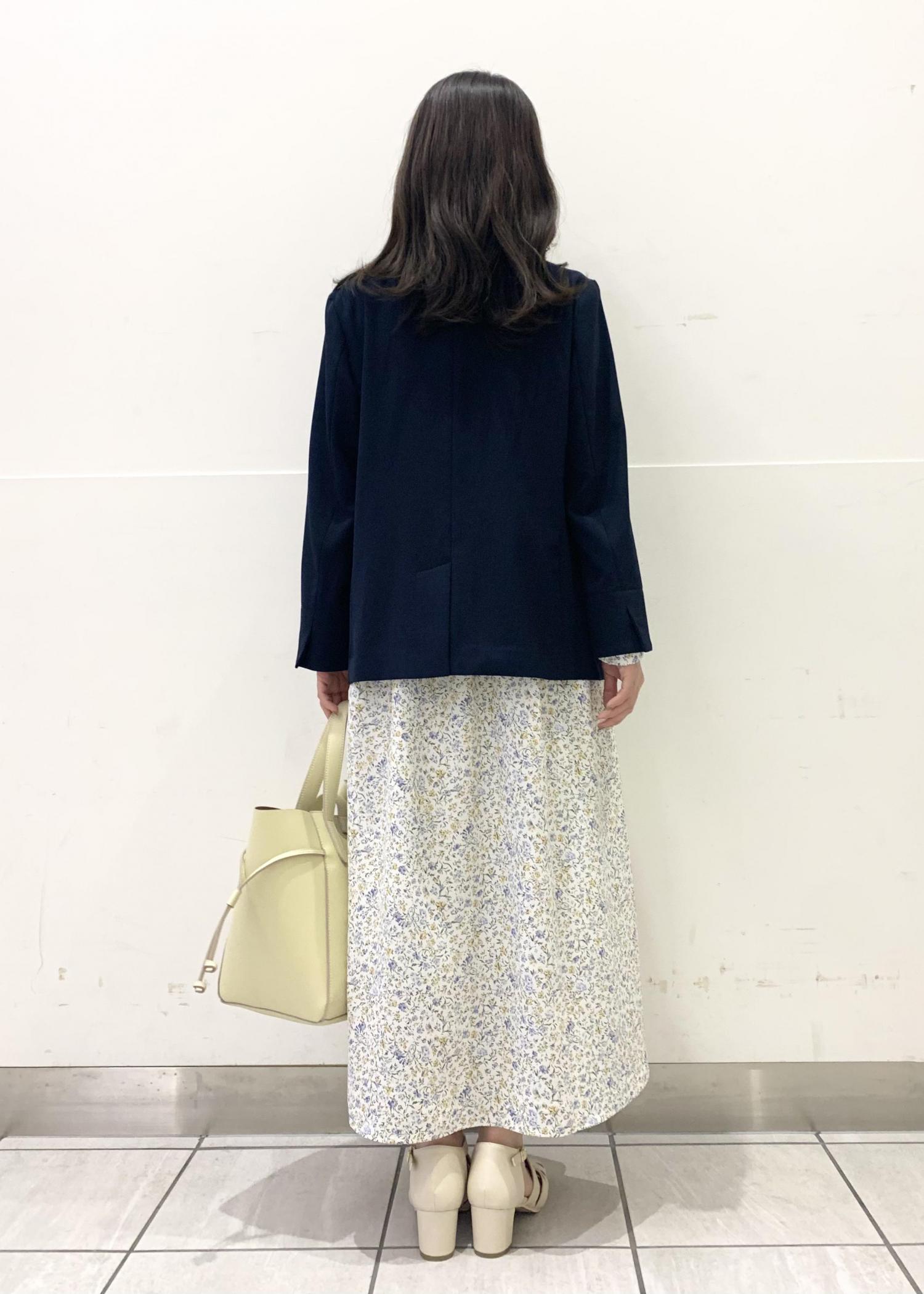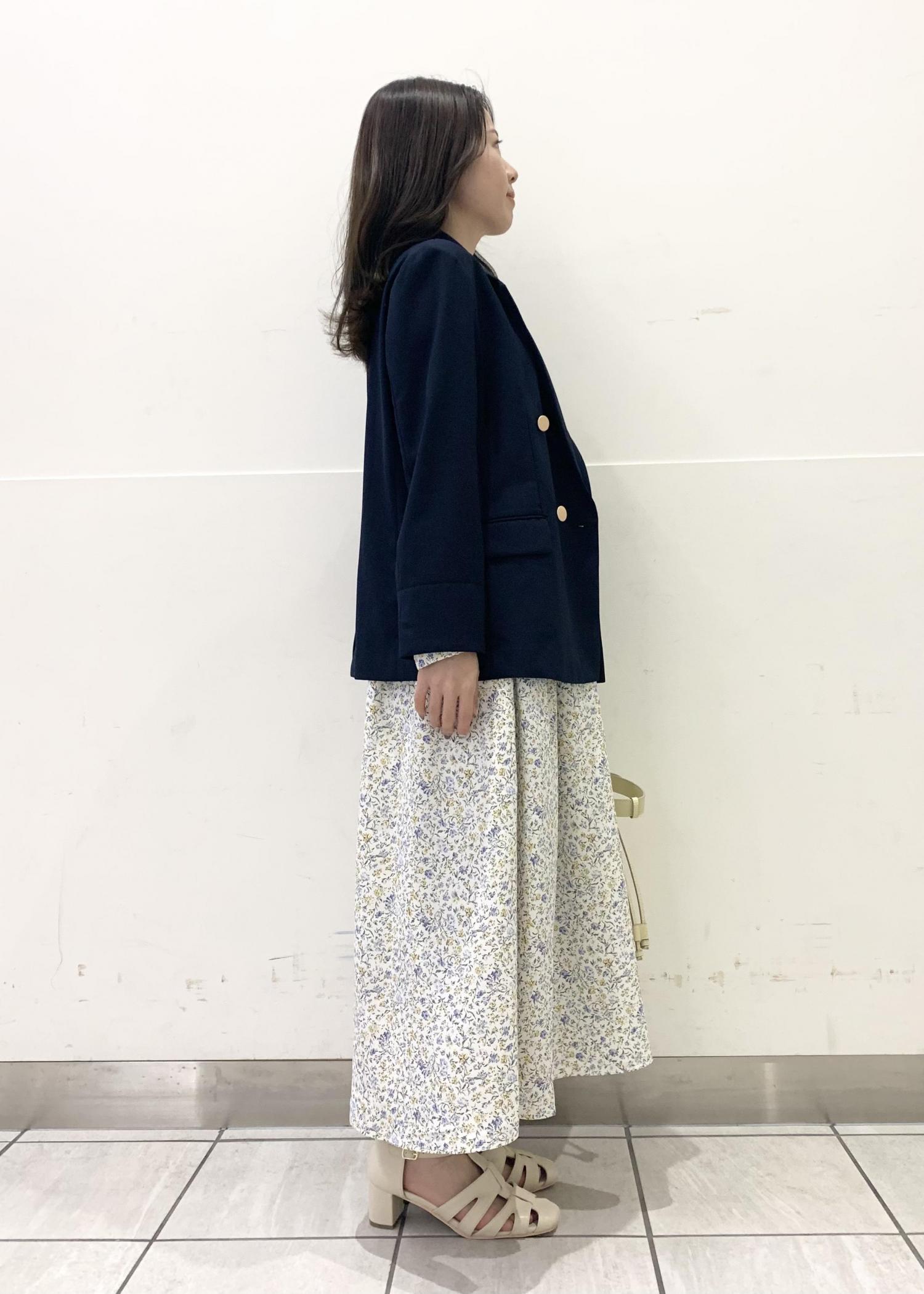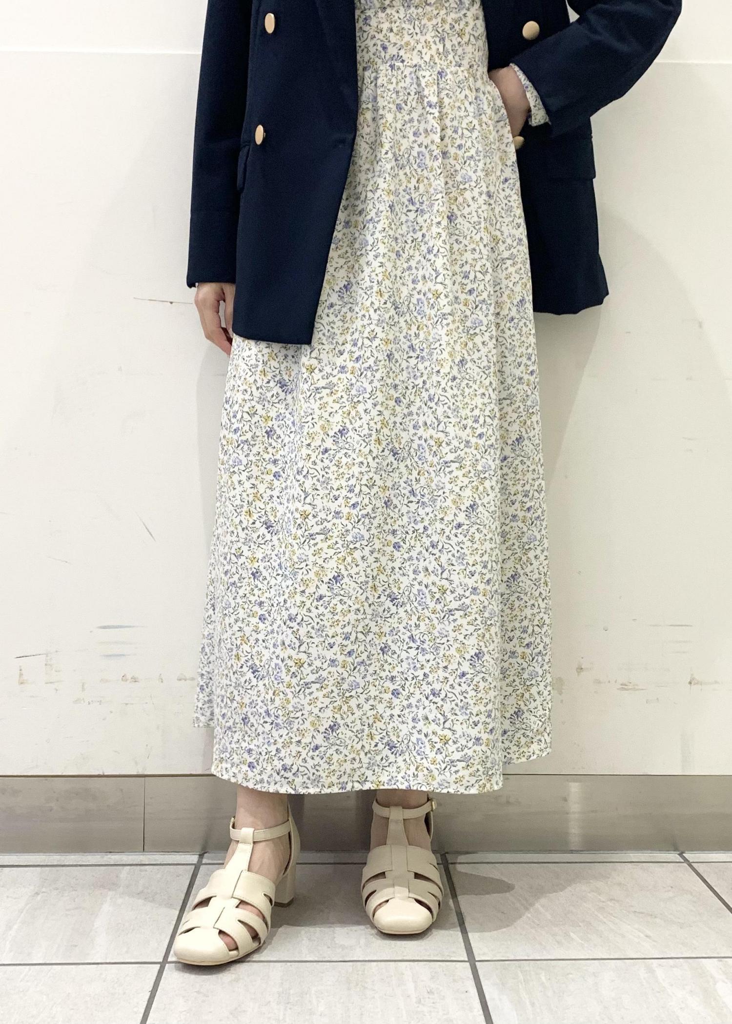 小花柄のワンピースにジャケットを合わせて、甘さを抑えました!