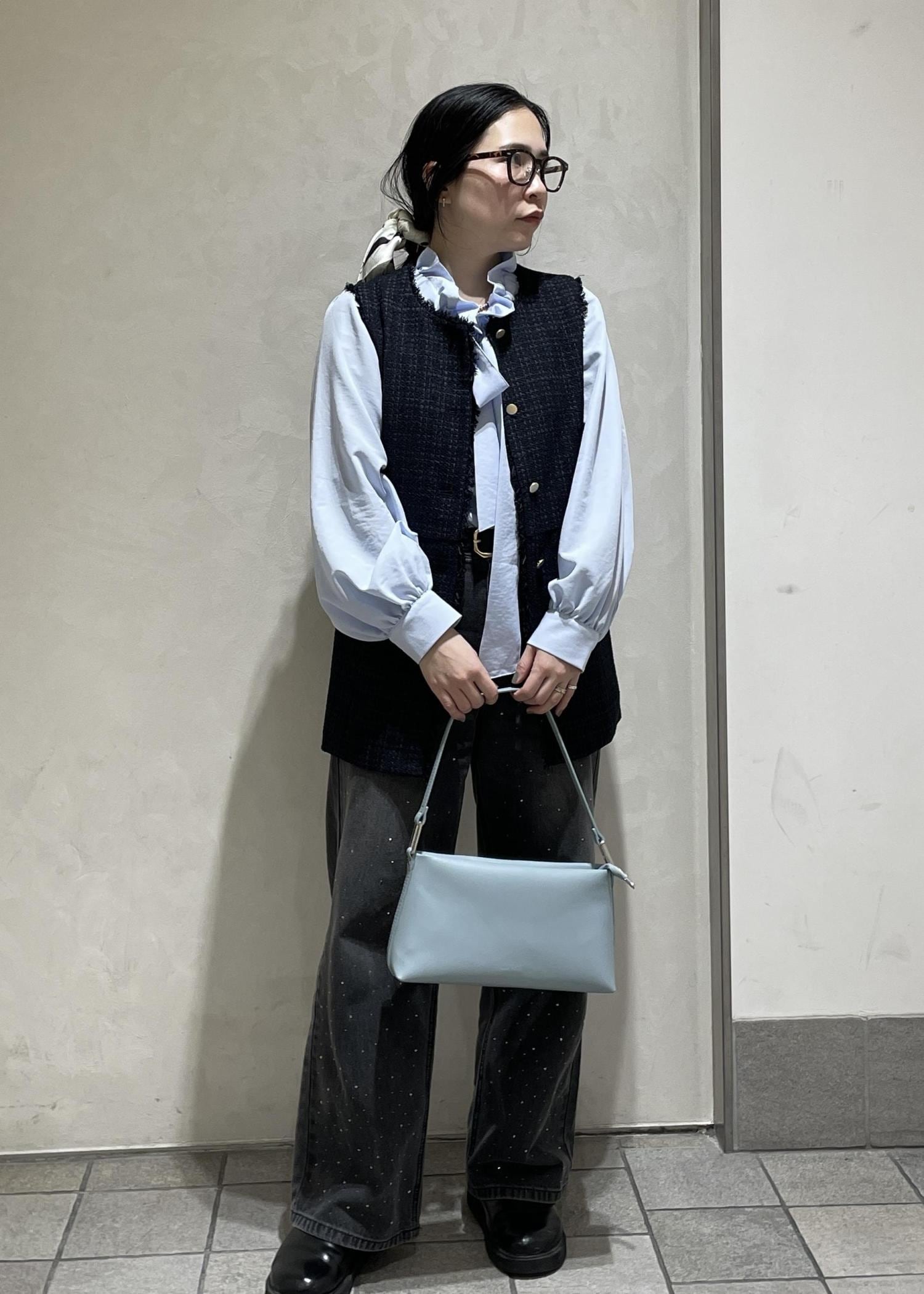 初夏には、薄手のシアーカーディガンで軽やかな印象に◎
