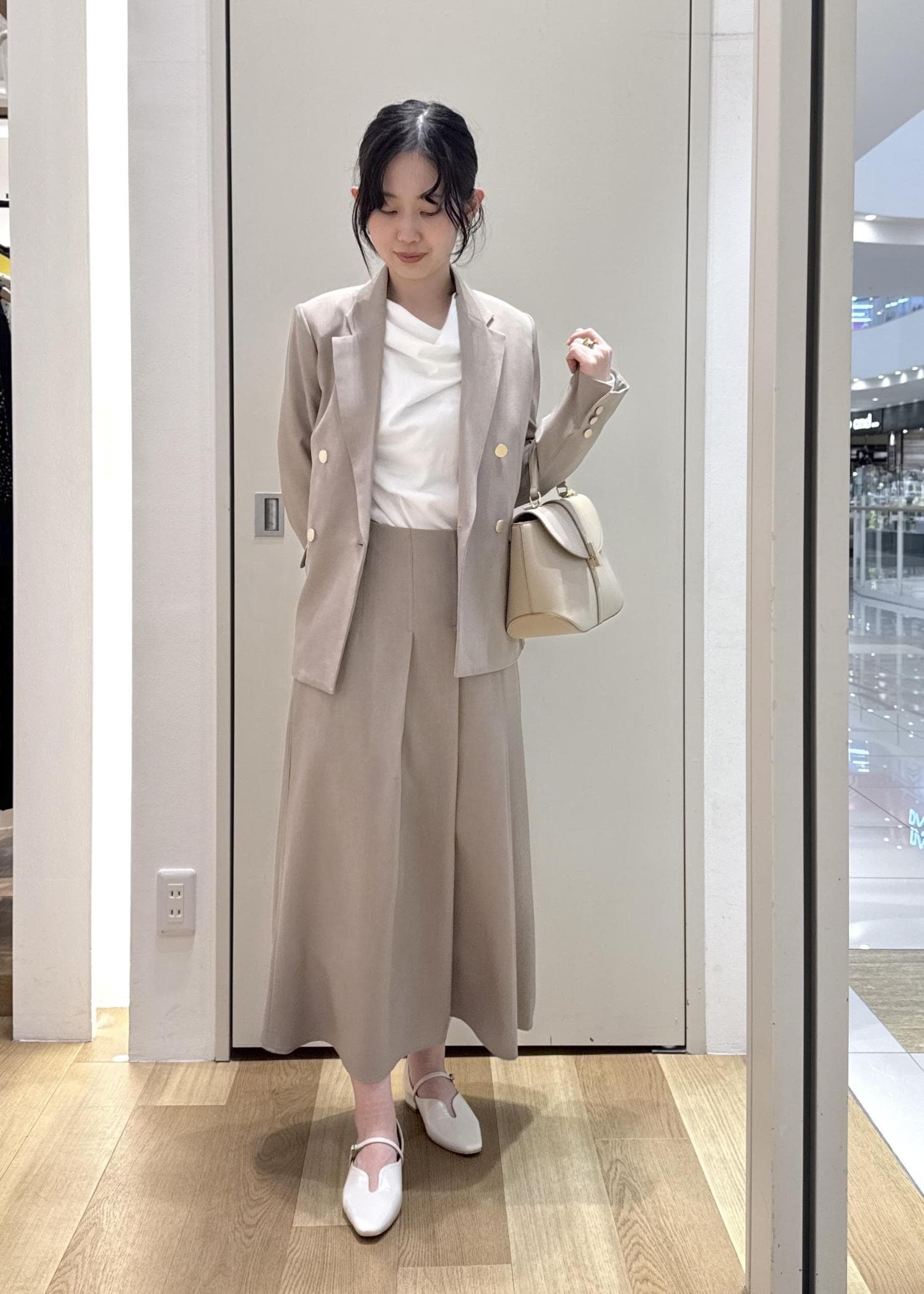 シャツのボタンとワイドパンツの黒が統一してて色のバランスもすごく好みでした◎