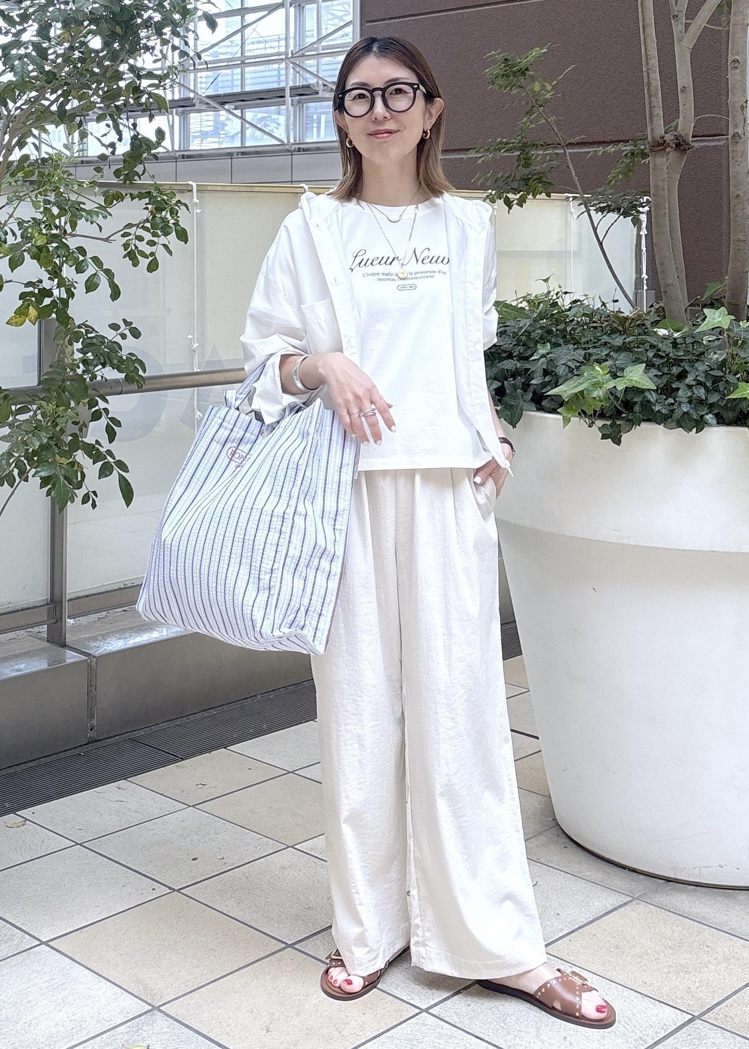 おすすめコーデ:Tシャツと合わせてカジュアルに。ブラウスを合わせて綺麗めに、幅広く着回せます。