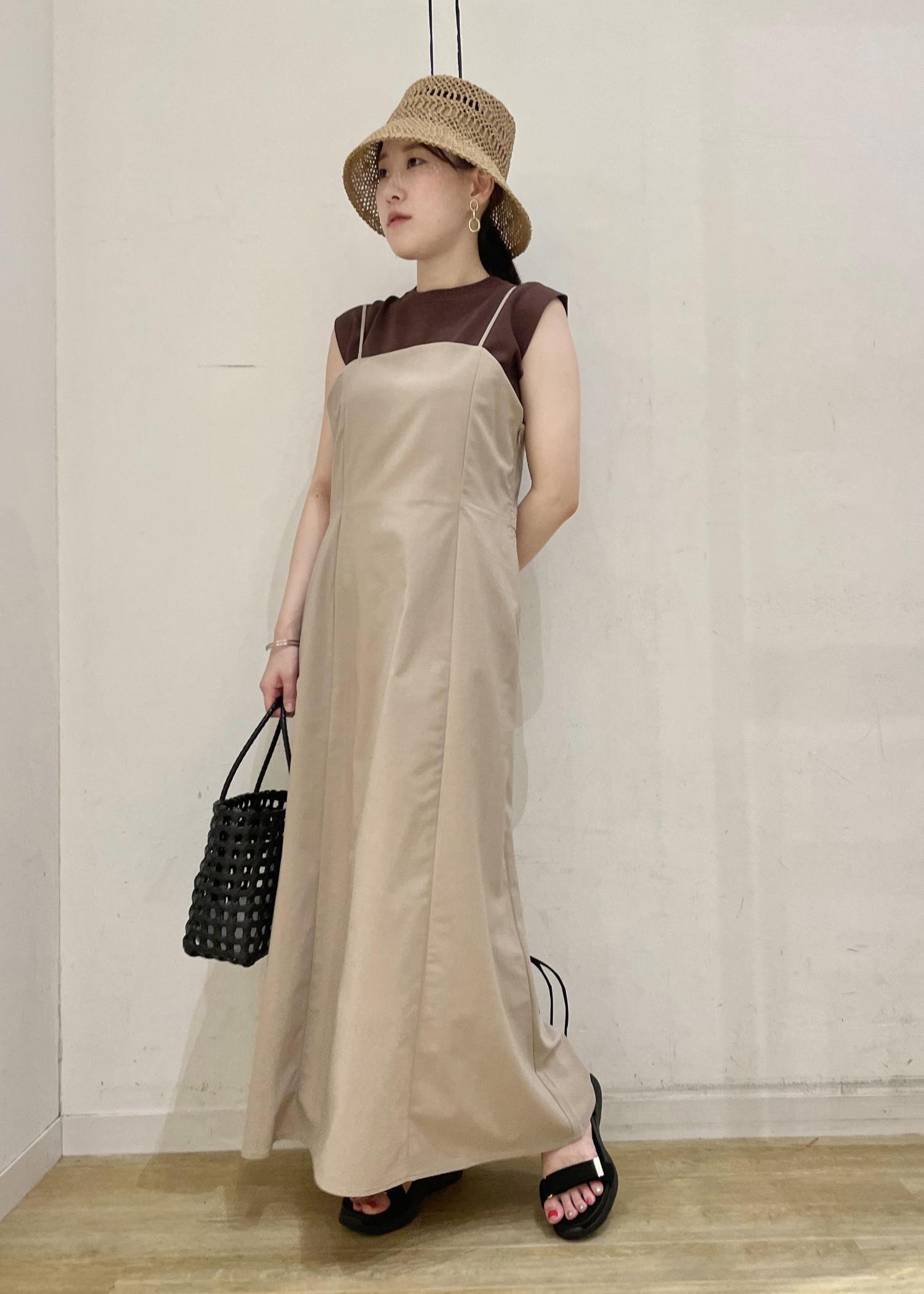 大人気のゼロスリーブニットの着回しコーデです。 コンパクトなニットでキャミワンピのインナーにもマッチします。