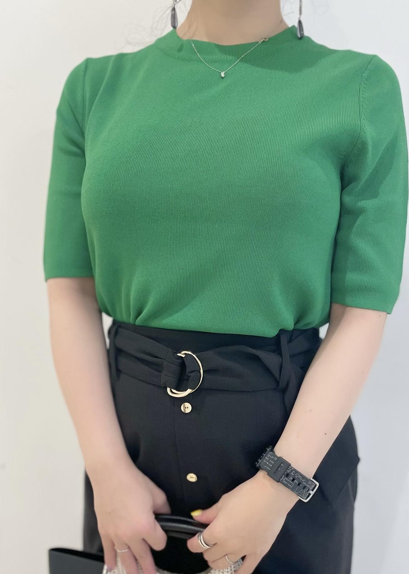 オフィスでも活躍するベーシックデザインのトップスはカラーを選んでも主張し過ぎず◎