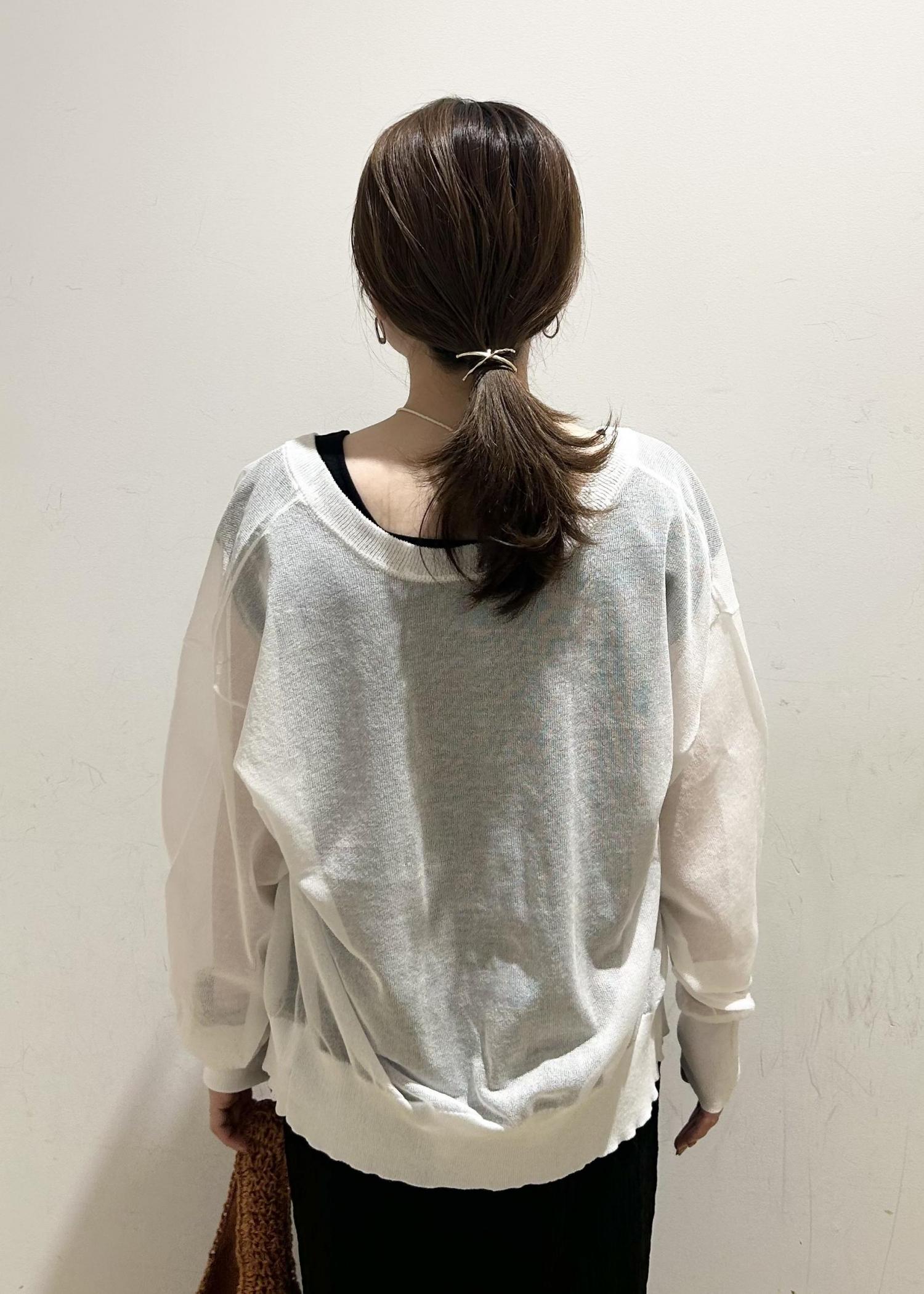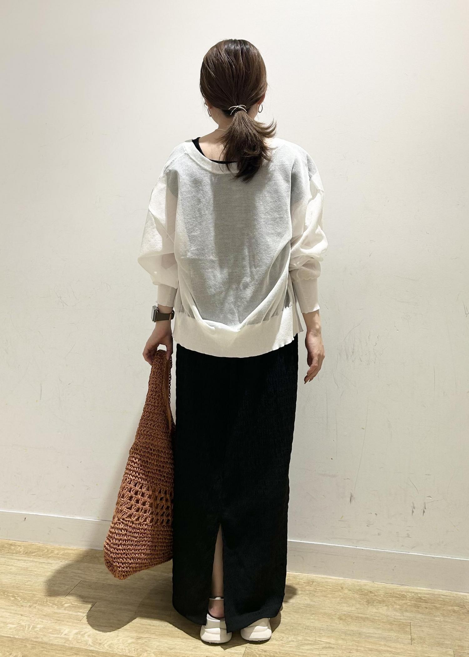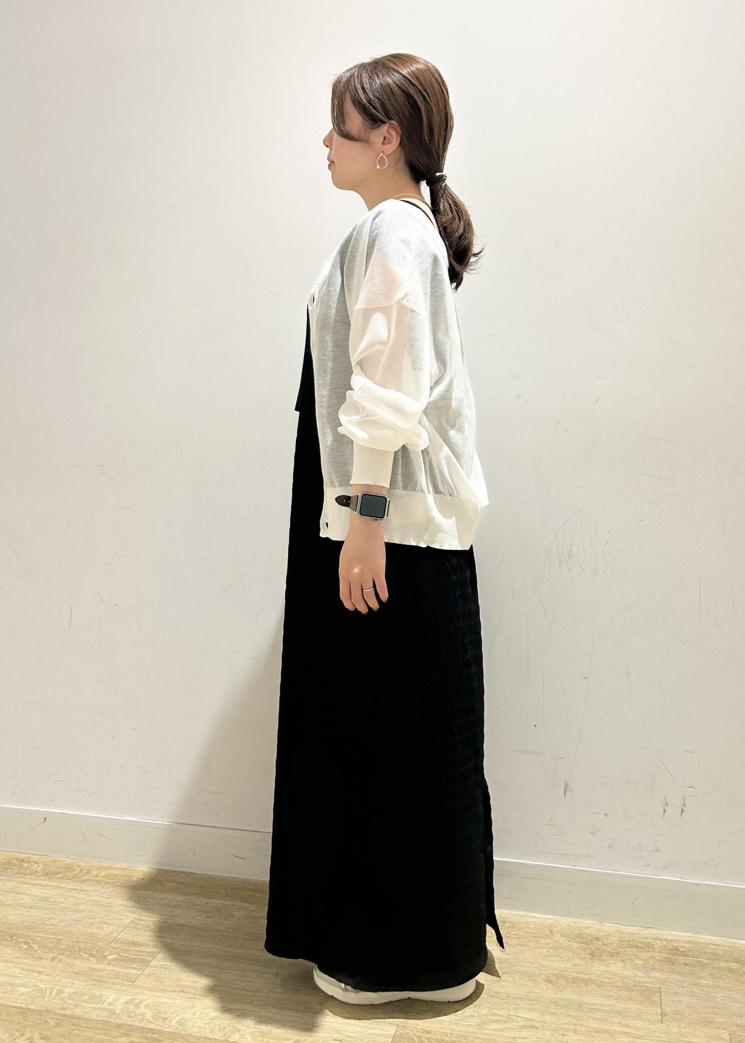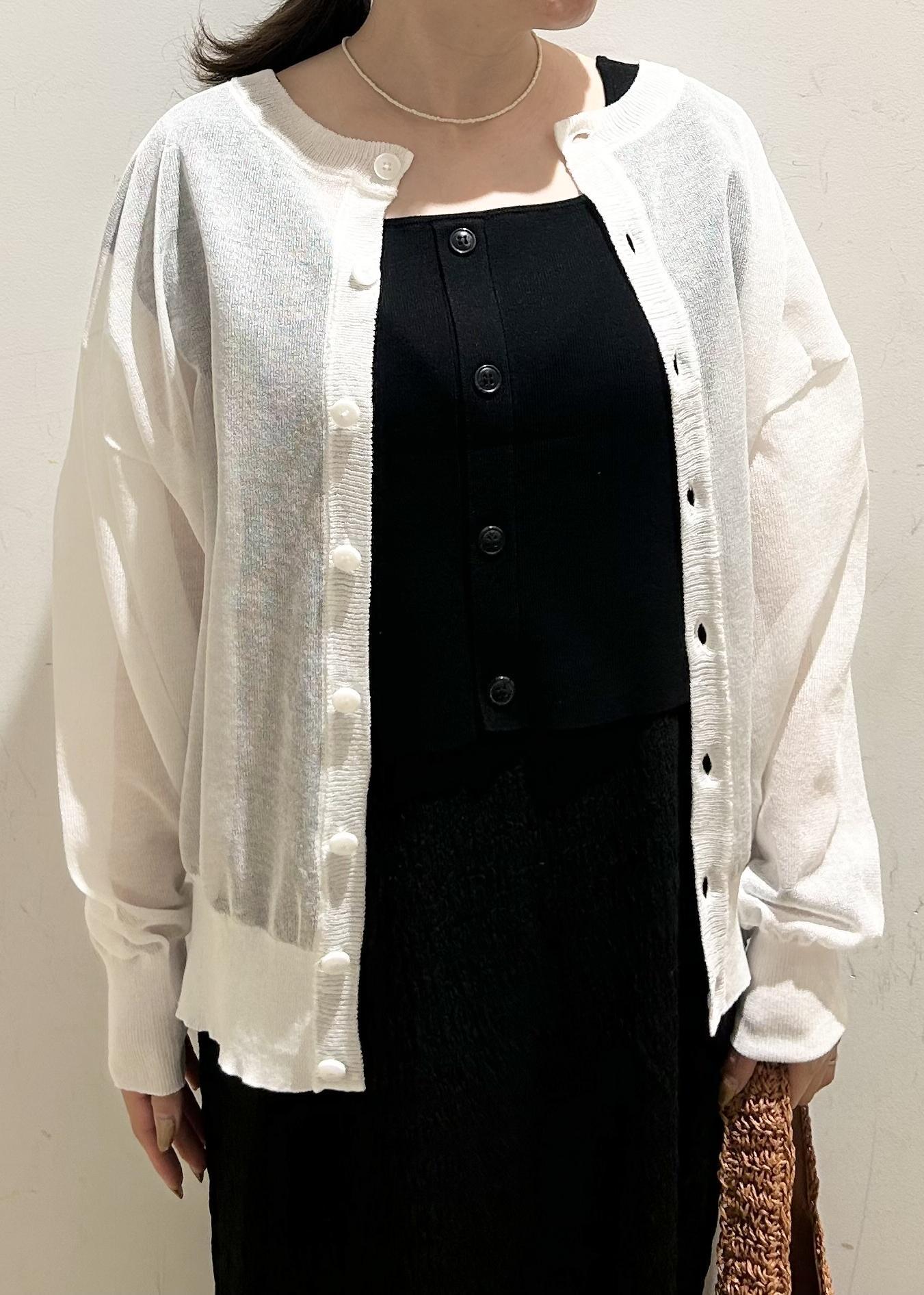 ブラックコーデにシアーカーディガンを合わせて、爽やかな印象に!