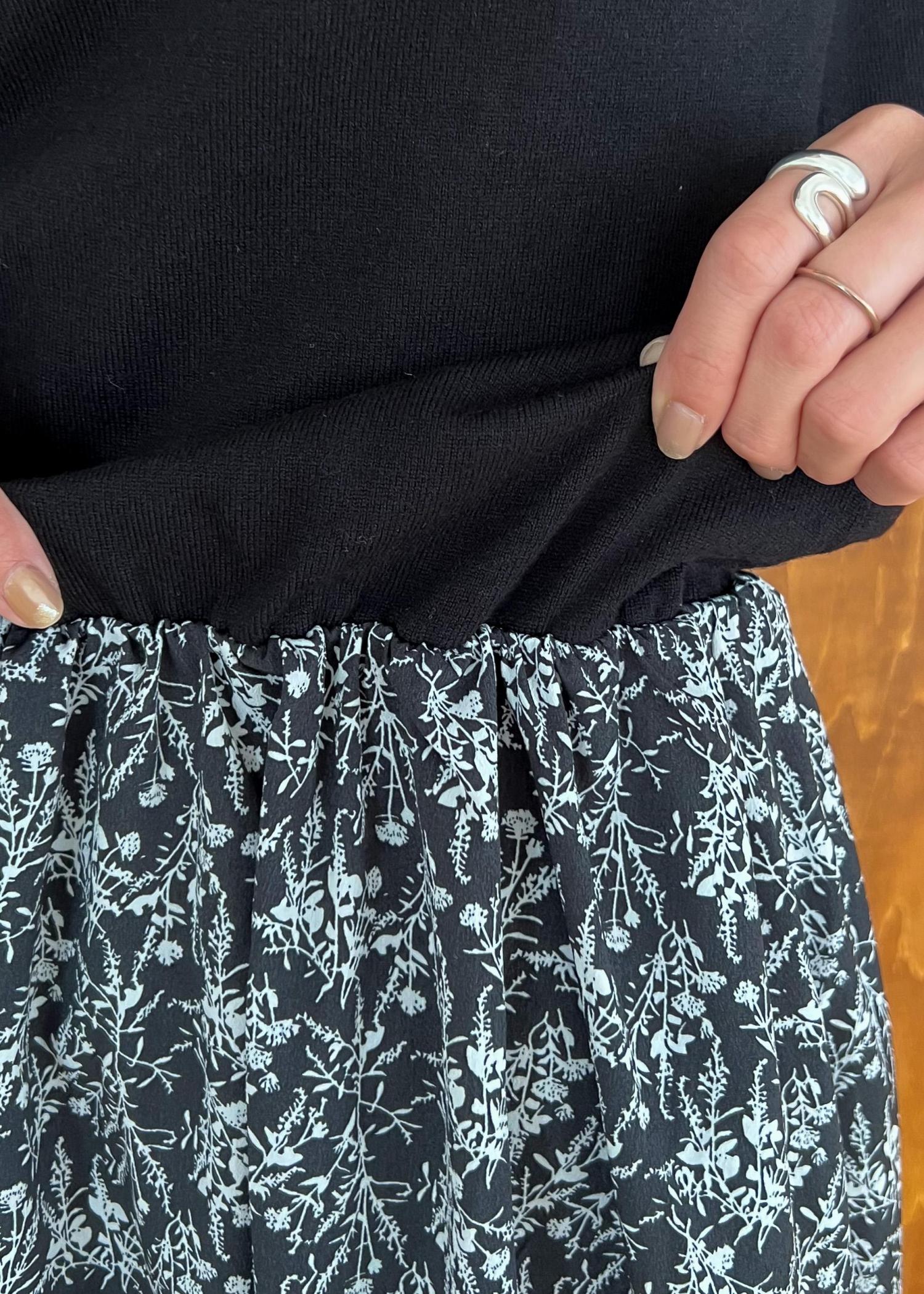 ニットとスカートがドッキングしたデザインワンピは、1枚でコーデが完結できる楽ちんアイテム。