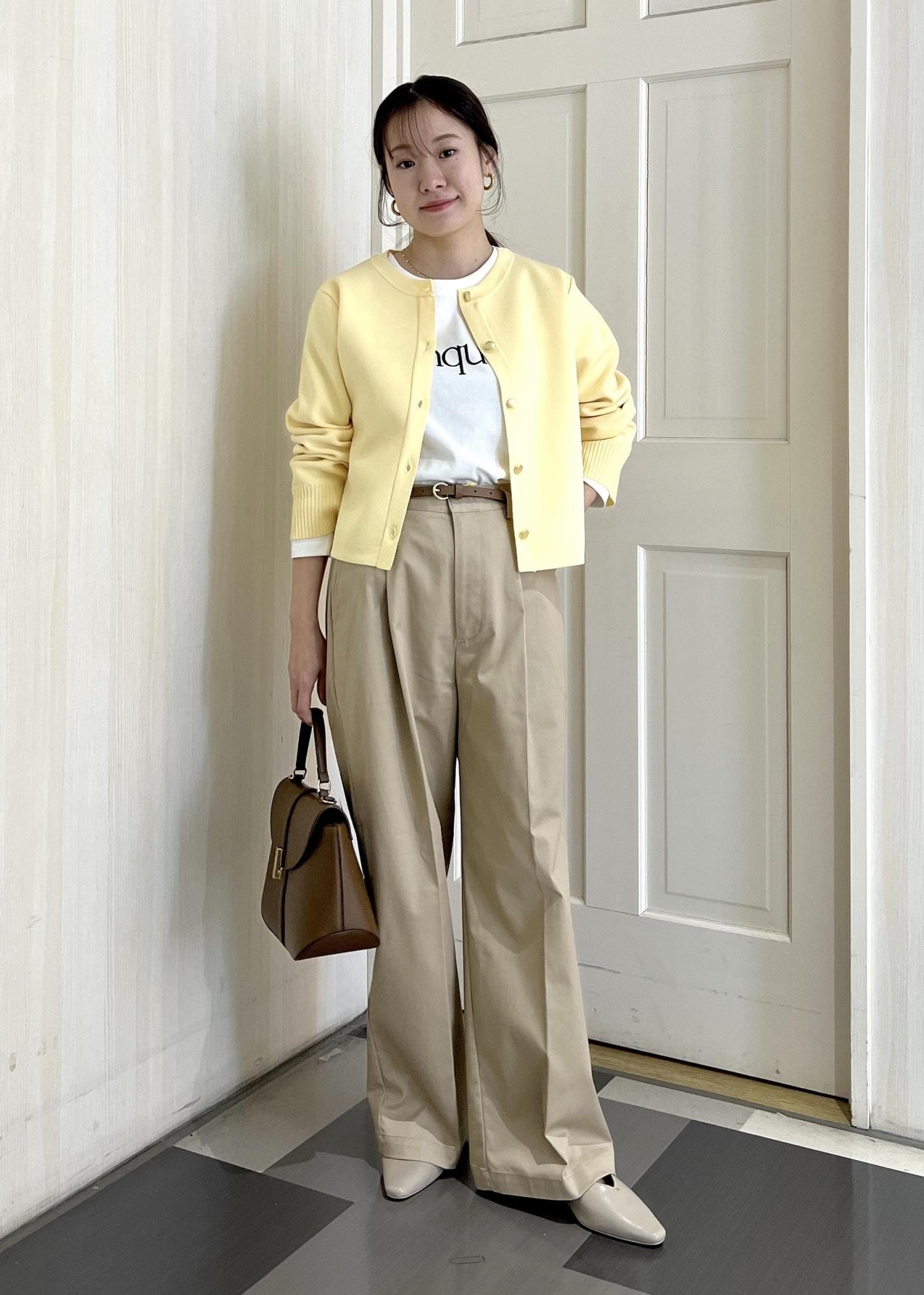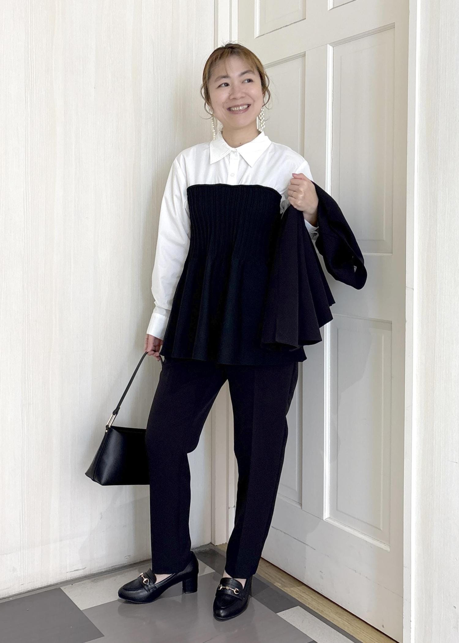 着丈が選べるワンピースの38Tを着てみました! フラットシューズでも着られる丈で、大人な印象になります。