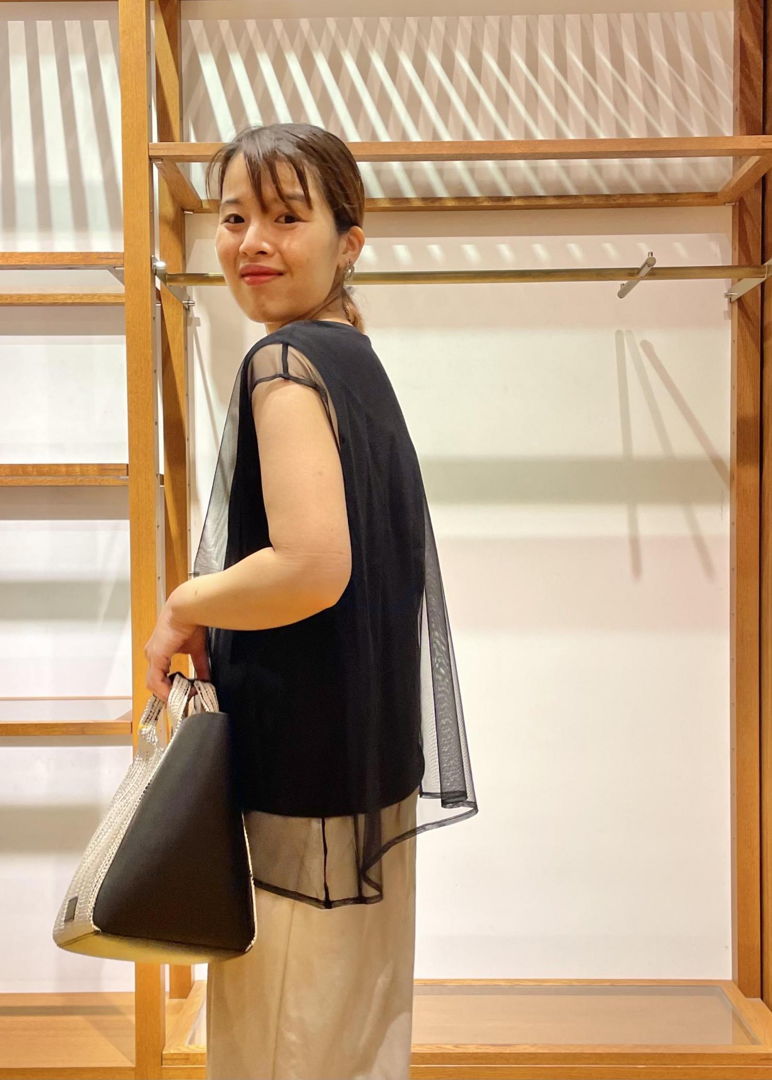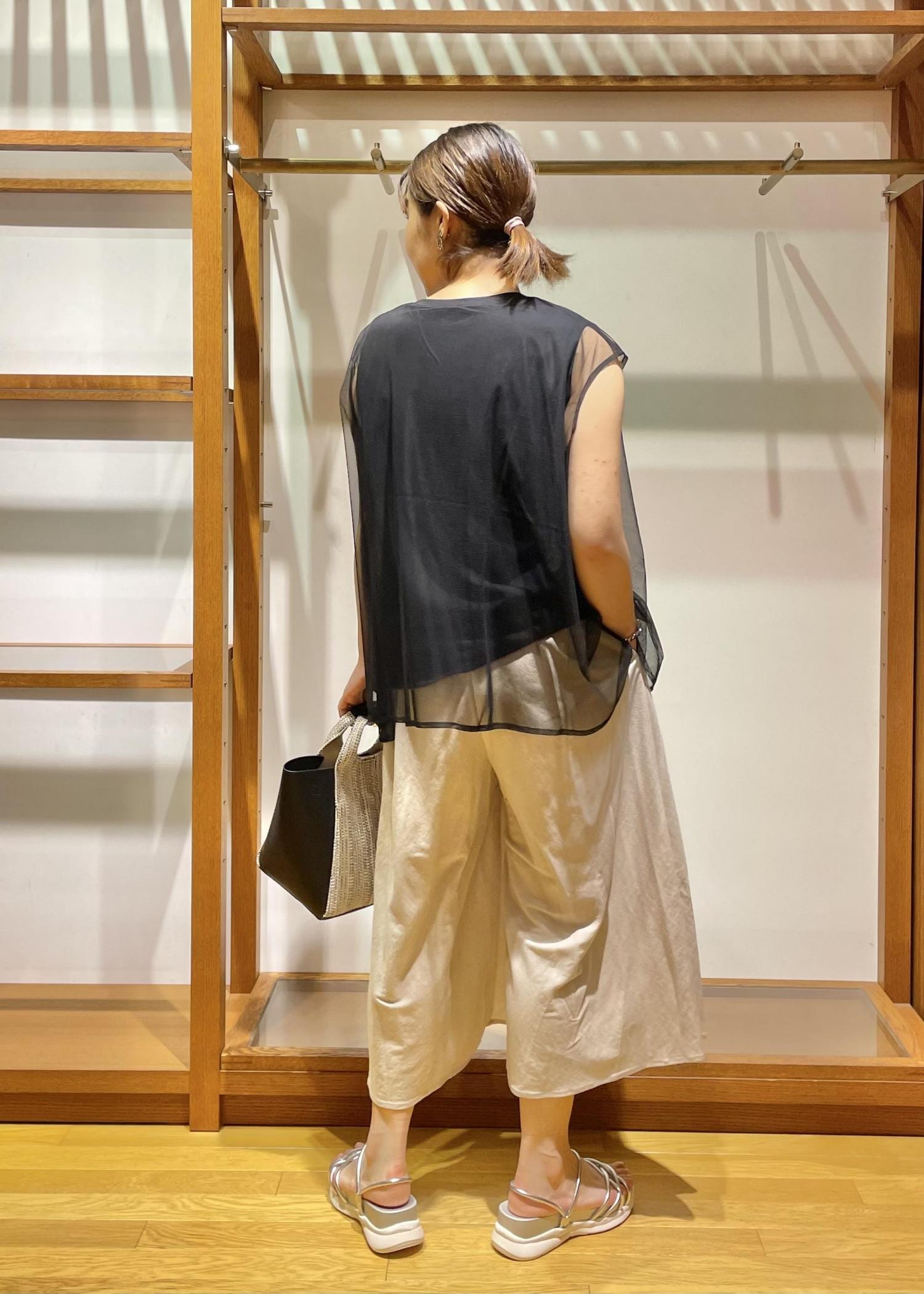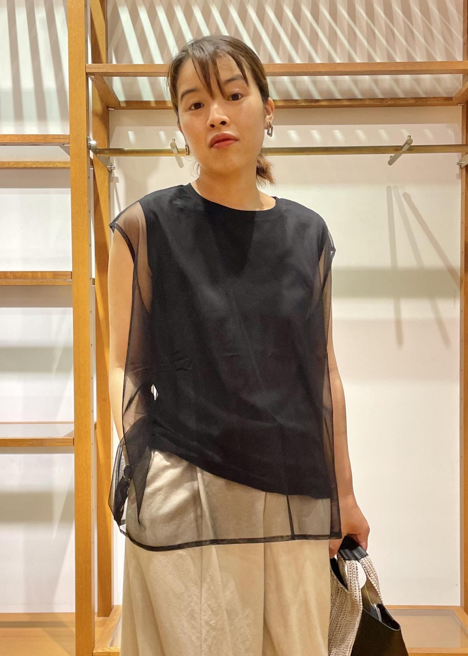 チュール重ねデザインが今年っぽいカットソーにスカンツを合わせたリラックススタイルです!