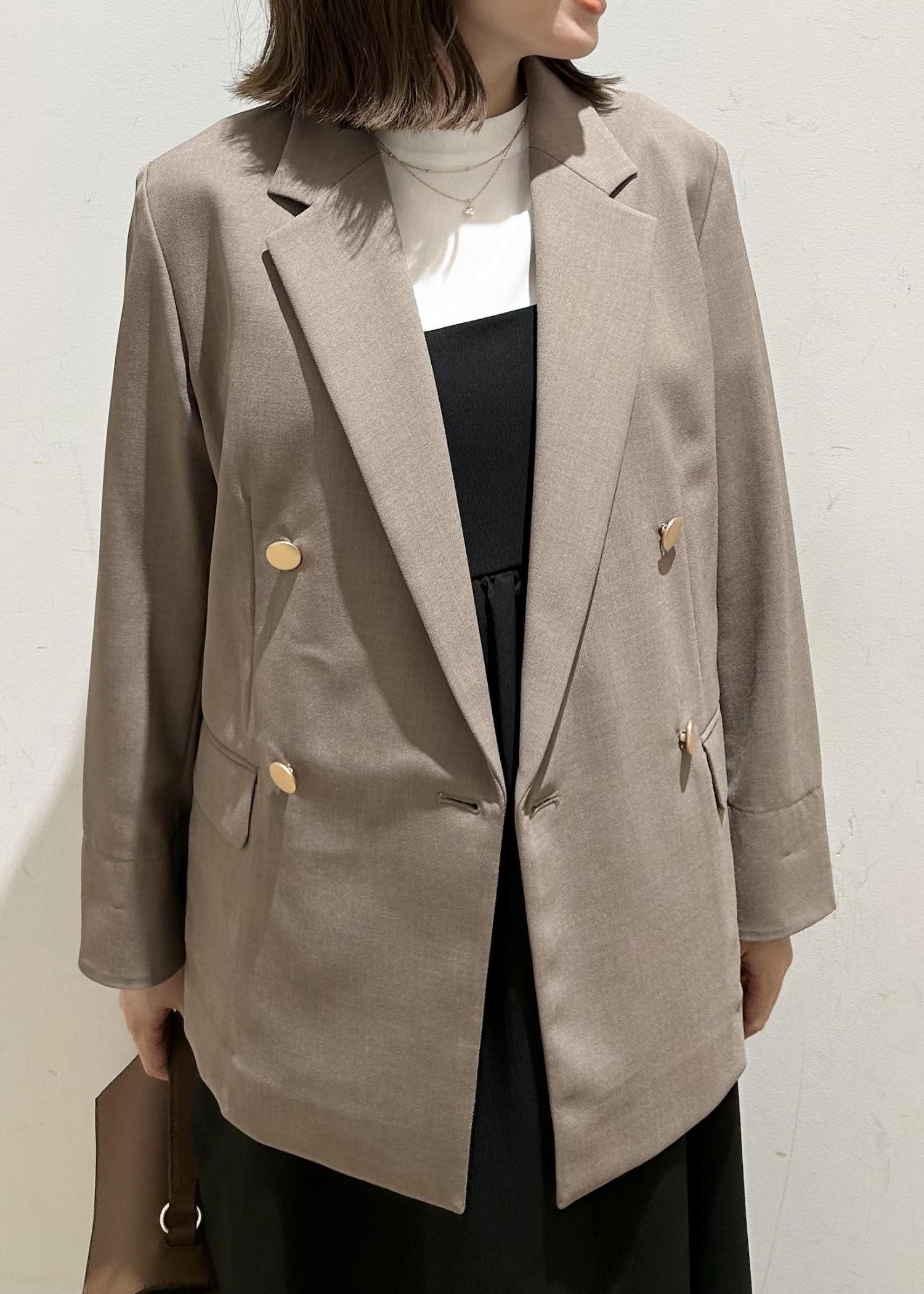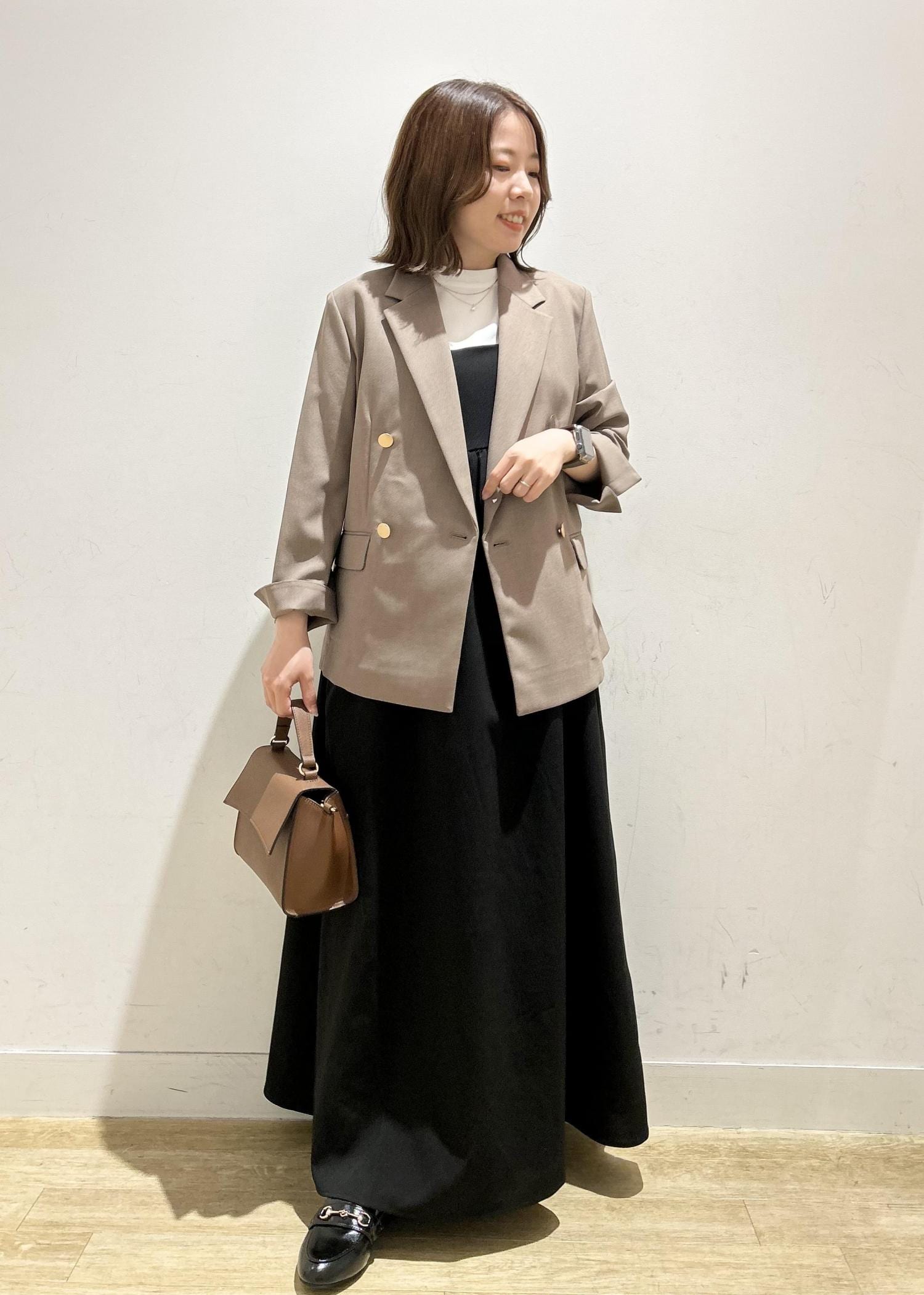 ジャケットにキャミワンピースを合わせた秋のお出かけコーデです!